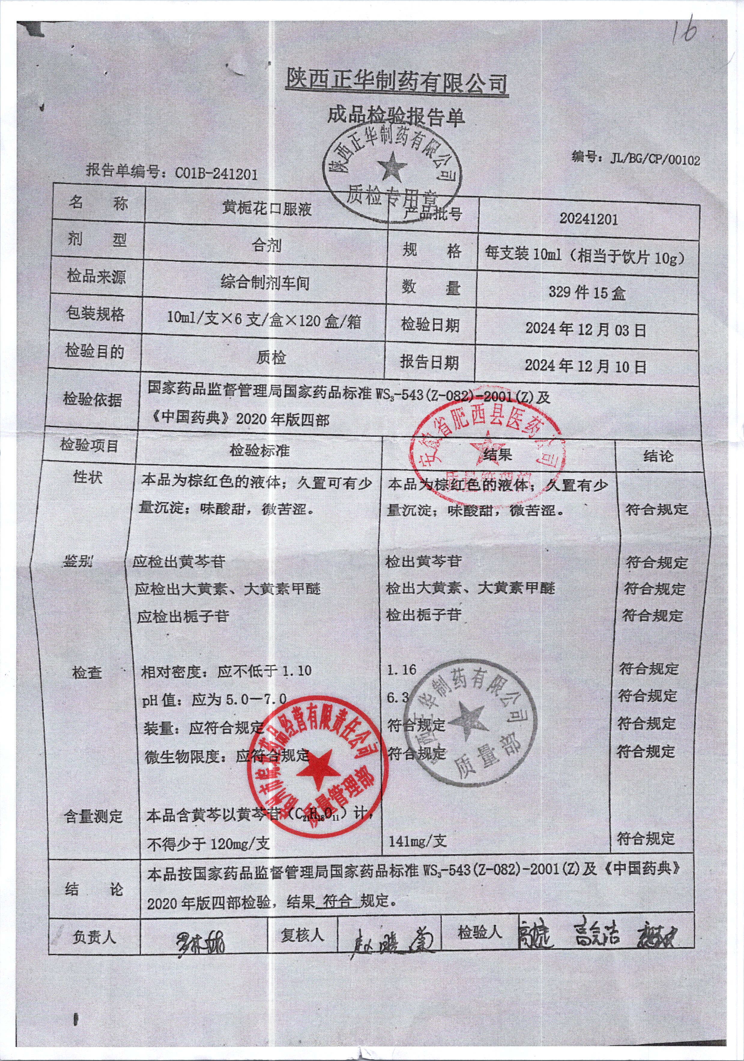 | 黃梔花口服液 | 10ml | 20241201 | 查看詳情 |