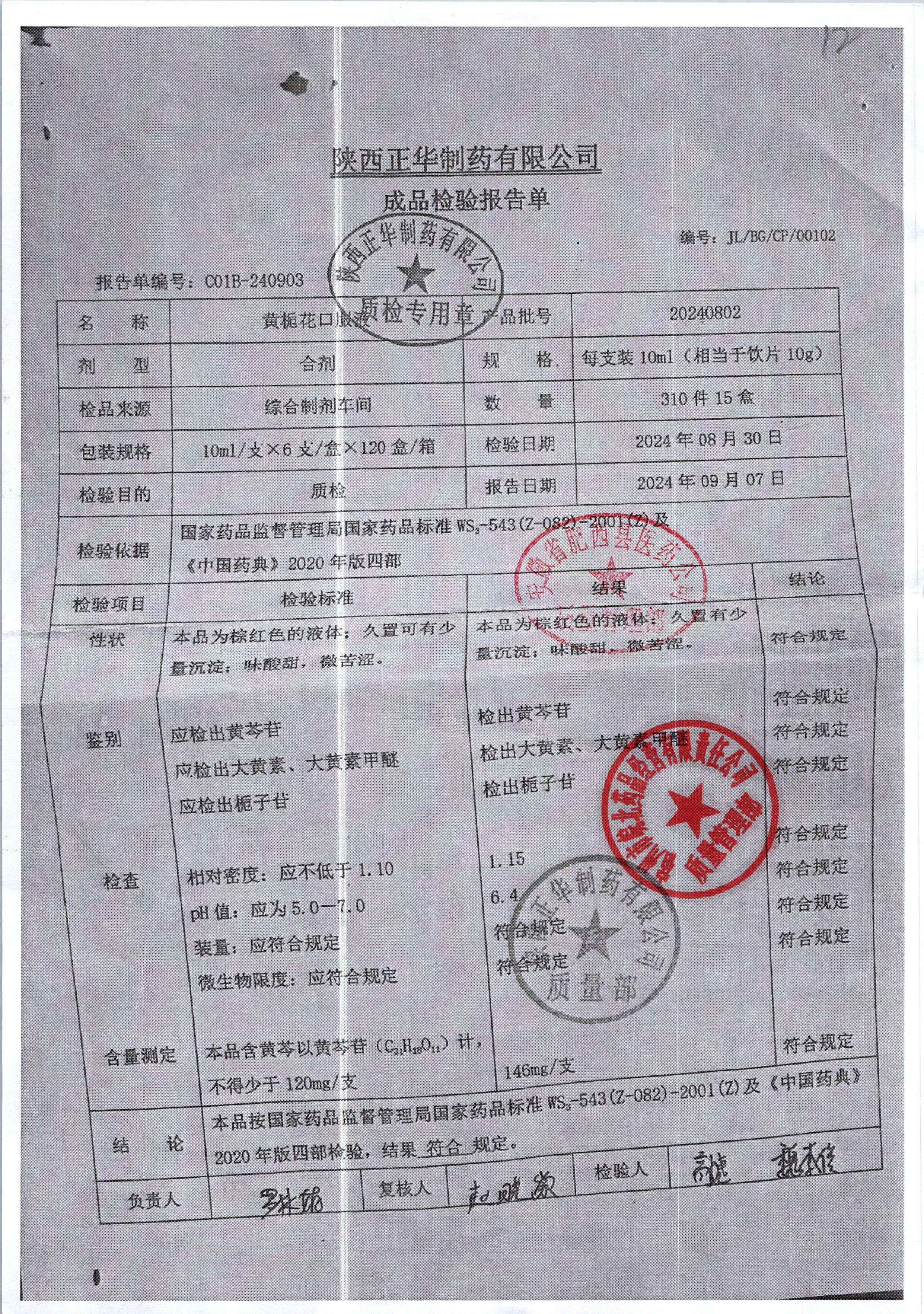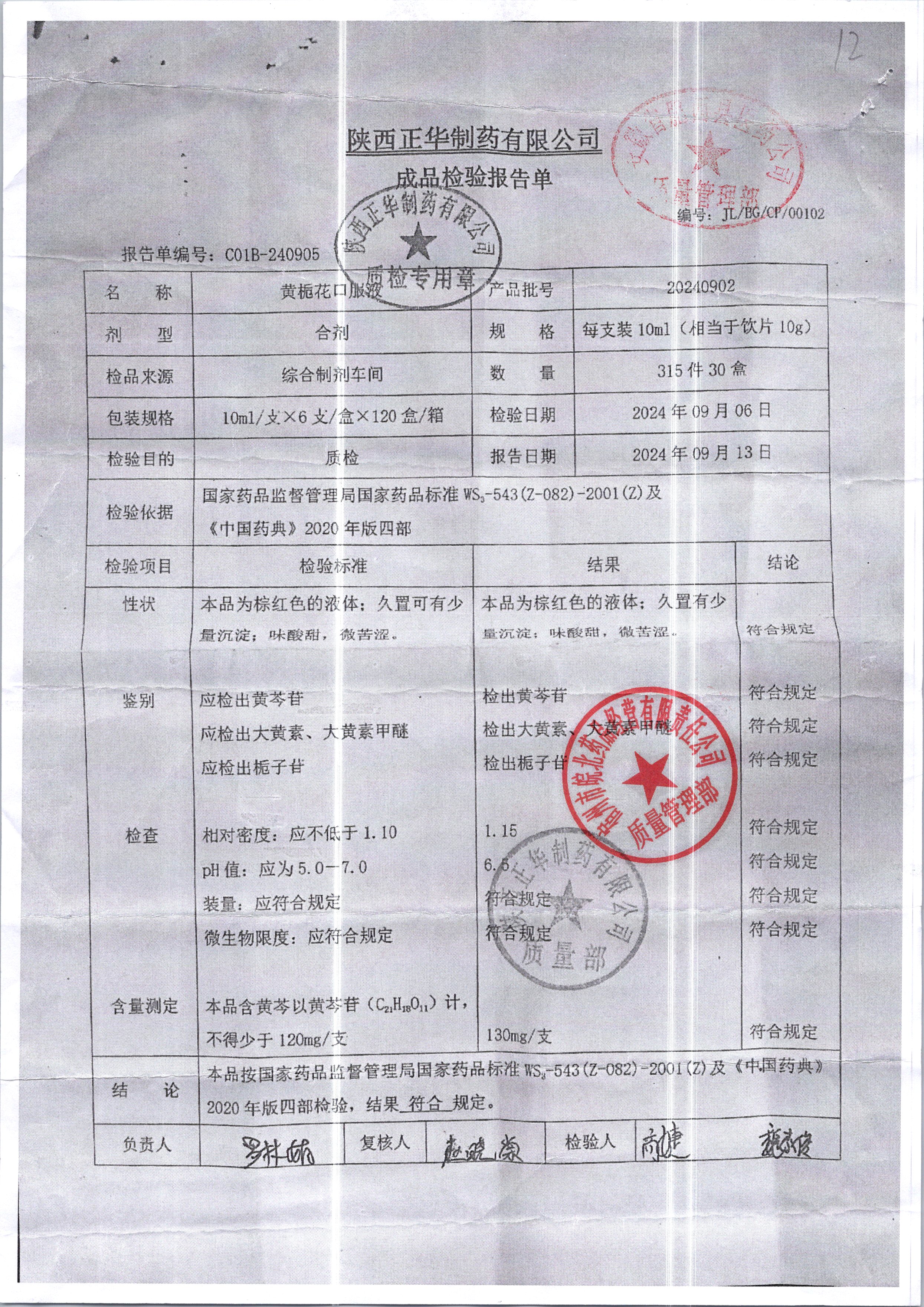 | 黃梔花口服液 | 10ml | 20240902 | 查看詳情 |