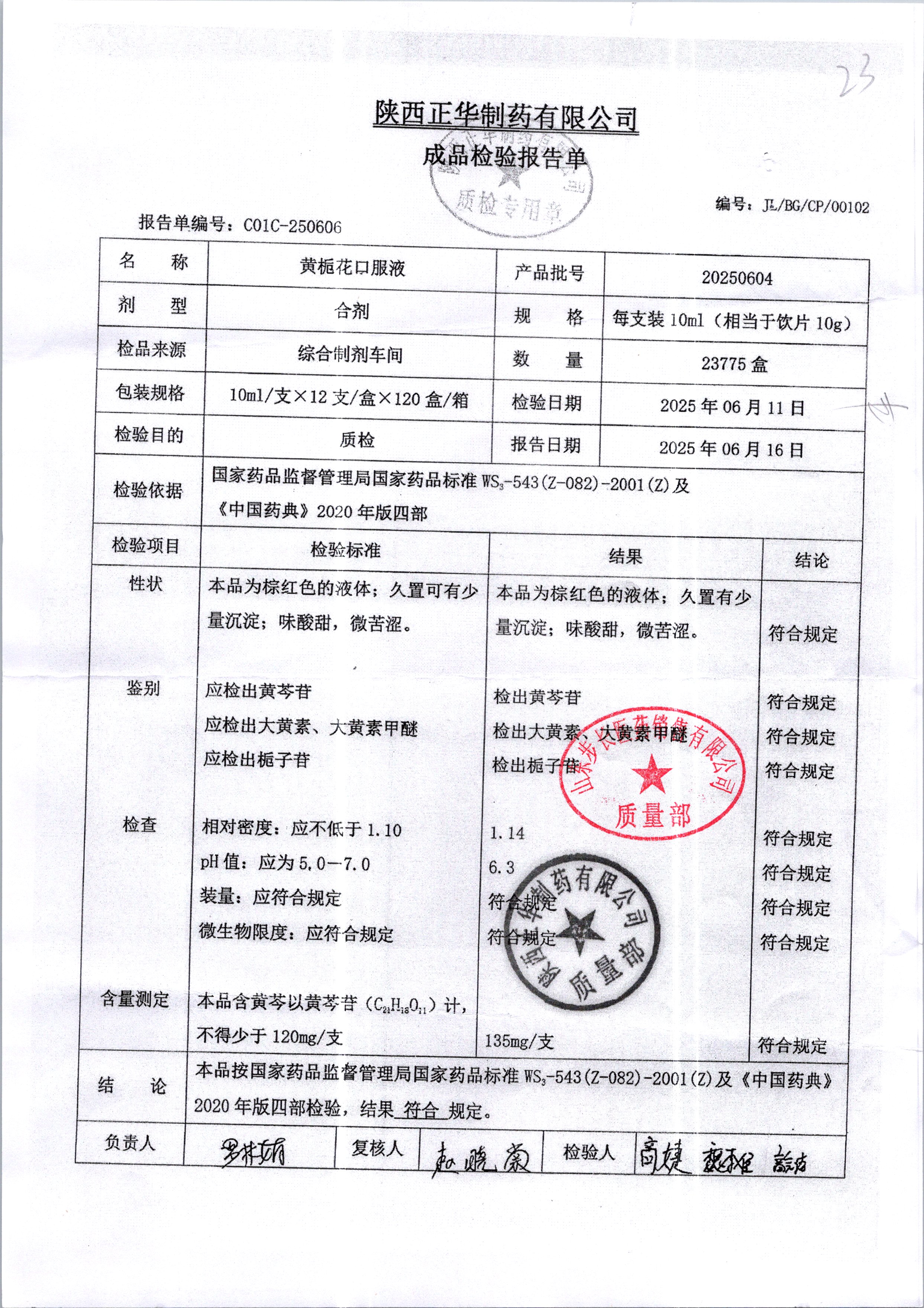 | 黃梔花口服液 | 10ml | 20250604 | 查看詳情 |