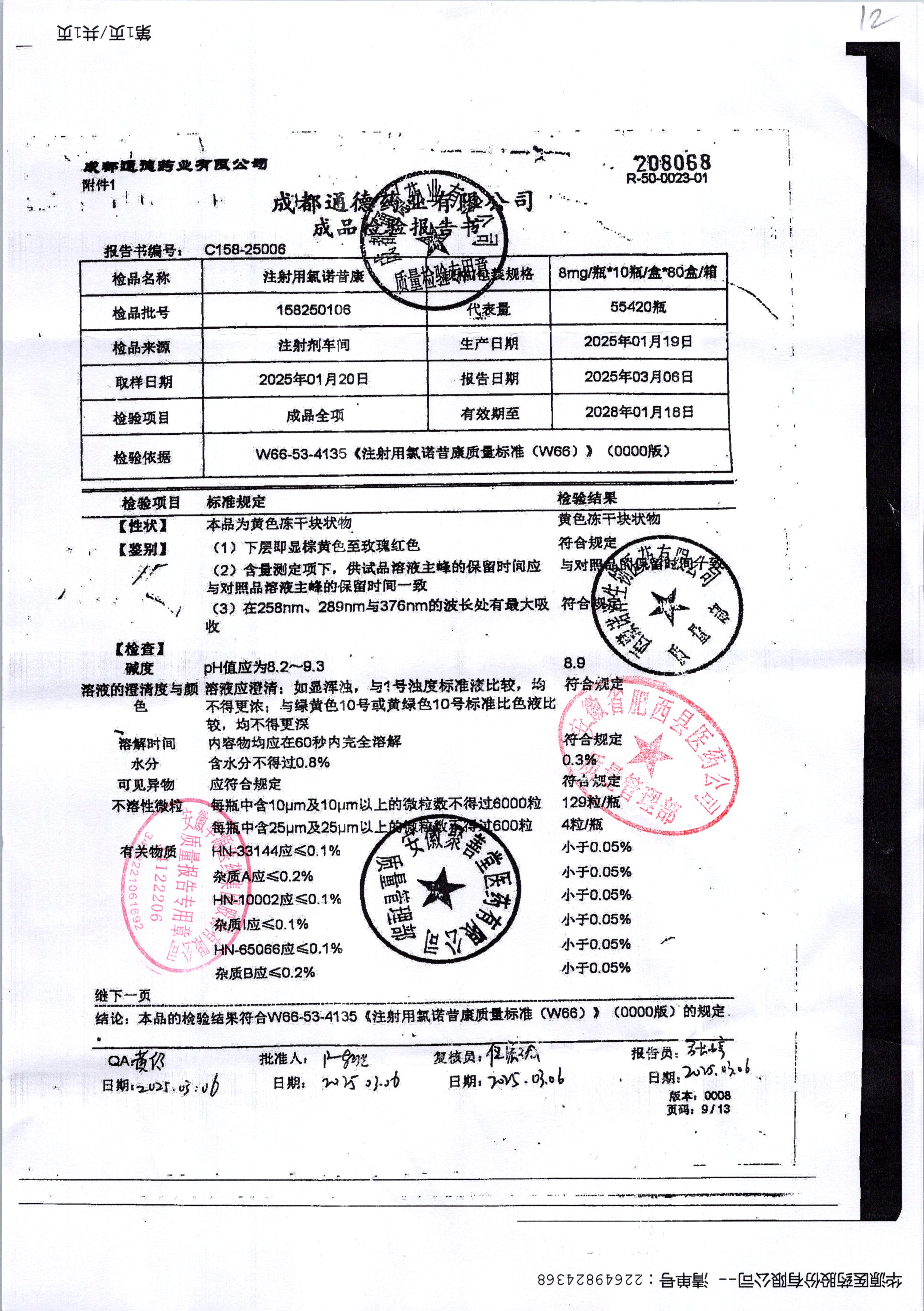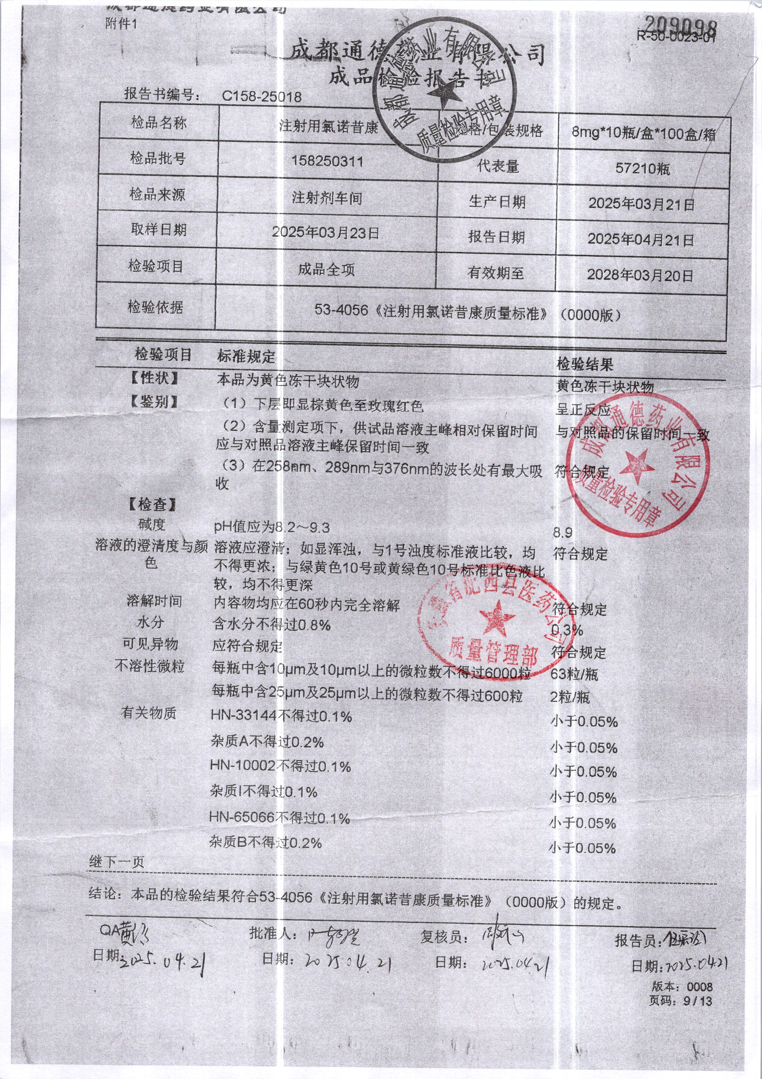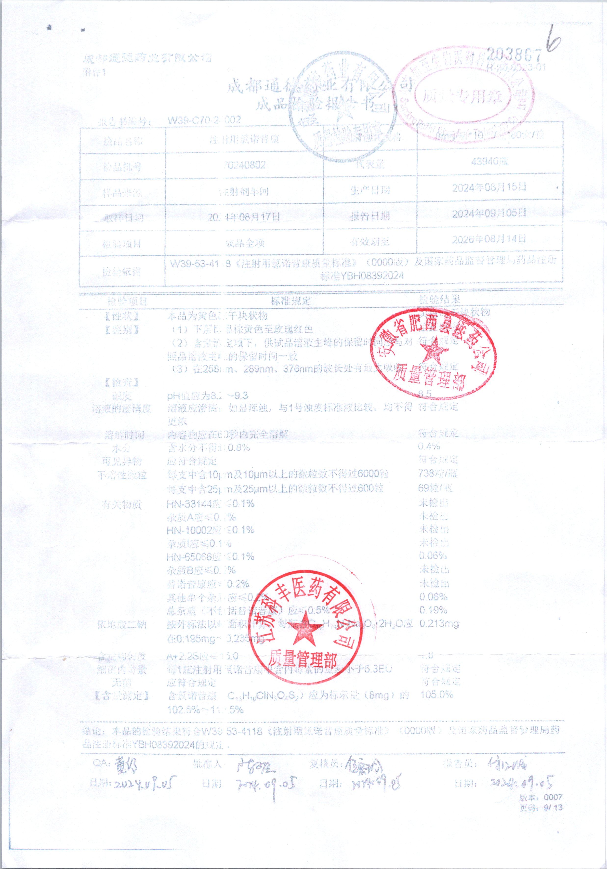 | 名稱(chēng) | 規(guī)格 | 批號(hào) | 藥檢報(bào)告 |