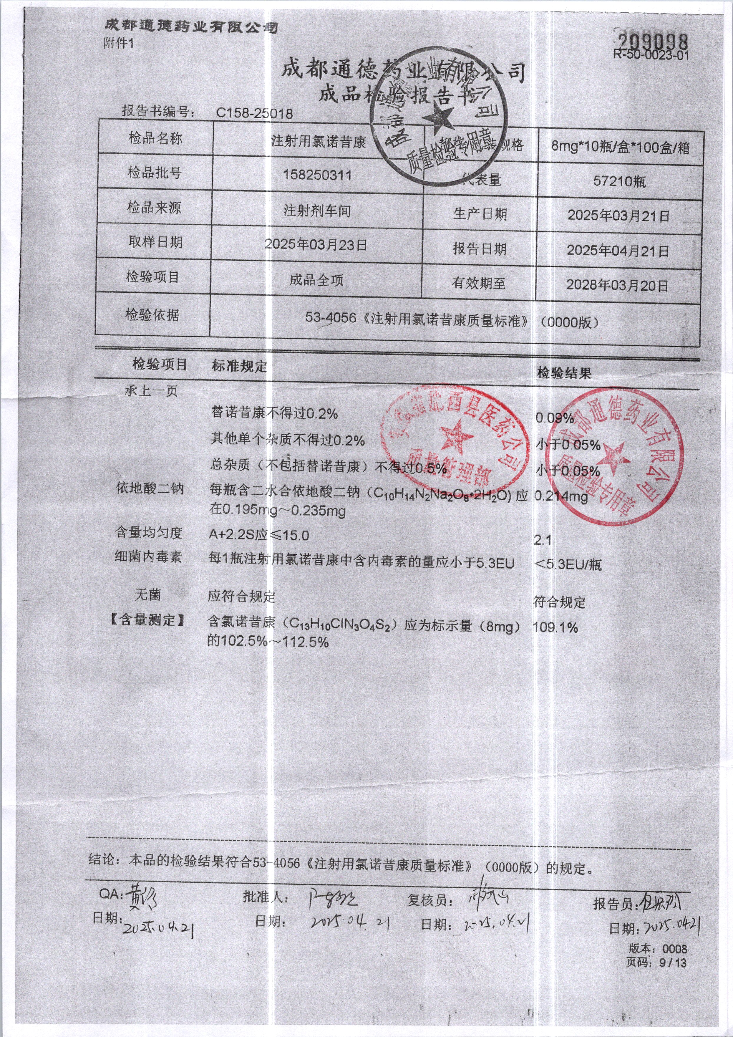 | 注射用氯諾昔康 | 8mg | 158250106 | 查看詳情 |