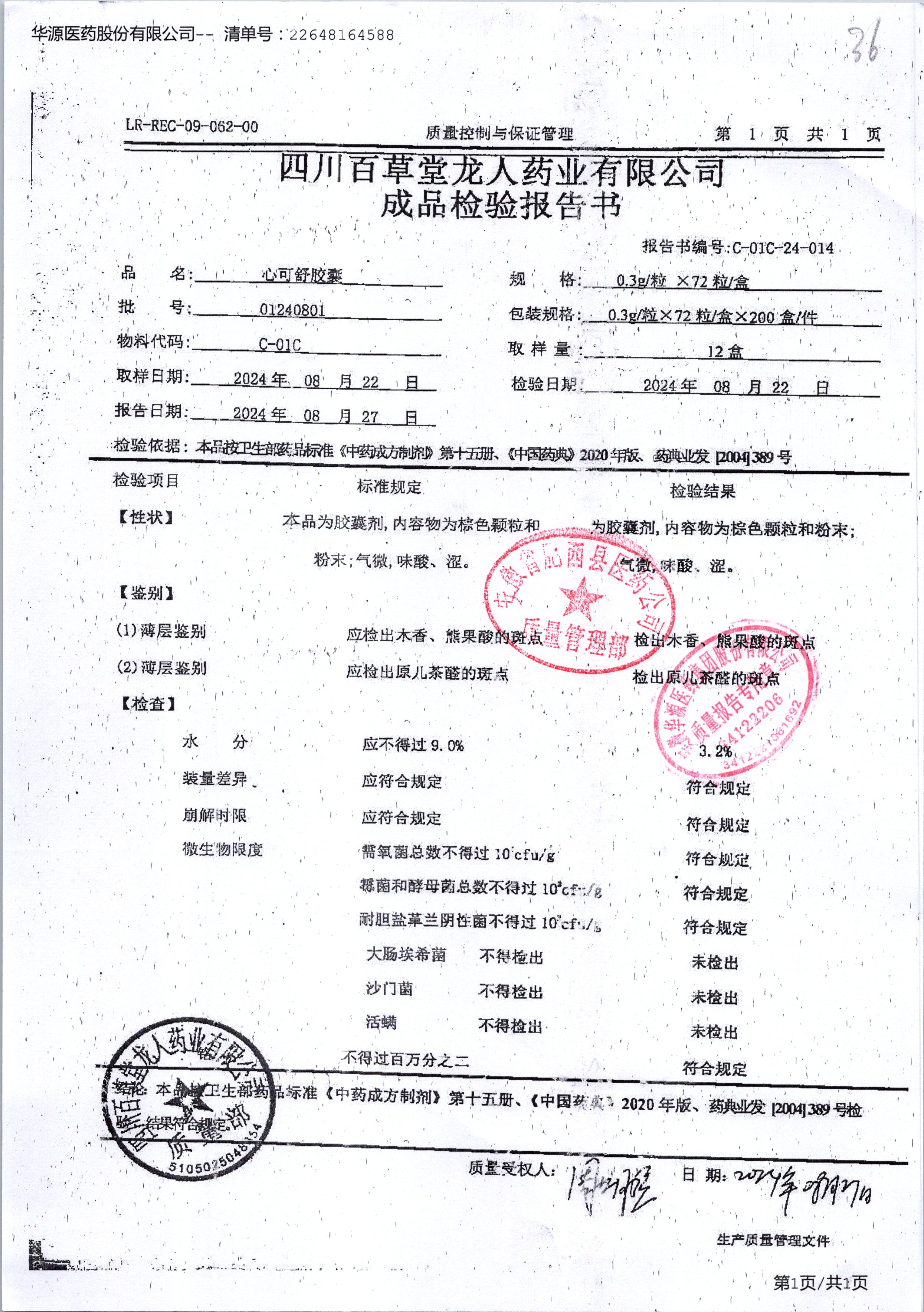 名稱 規(guī)格 批號 藥檢報告