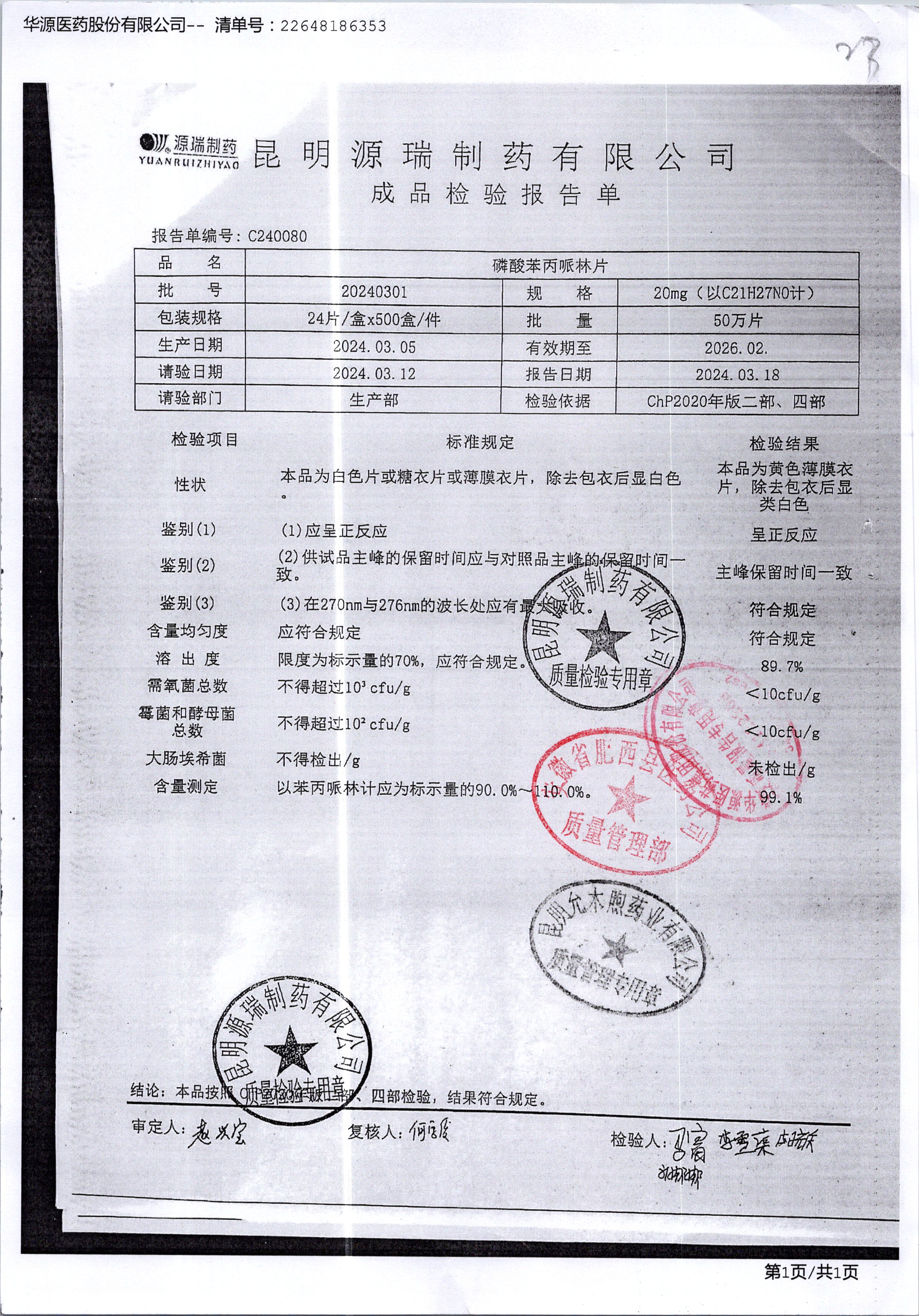 磷酸苯丙哌啉片 20g*24片 20240301 查看詳情