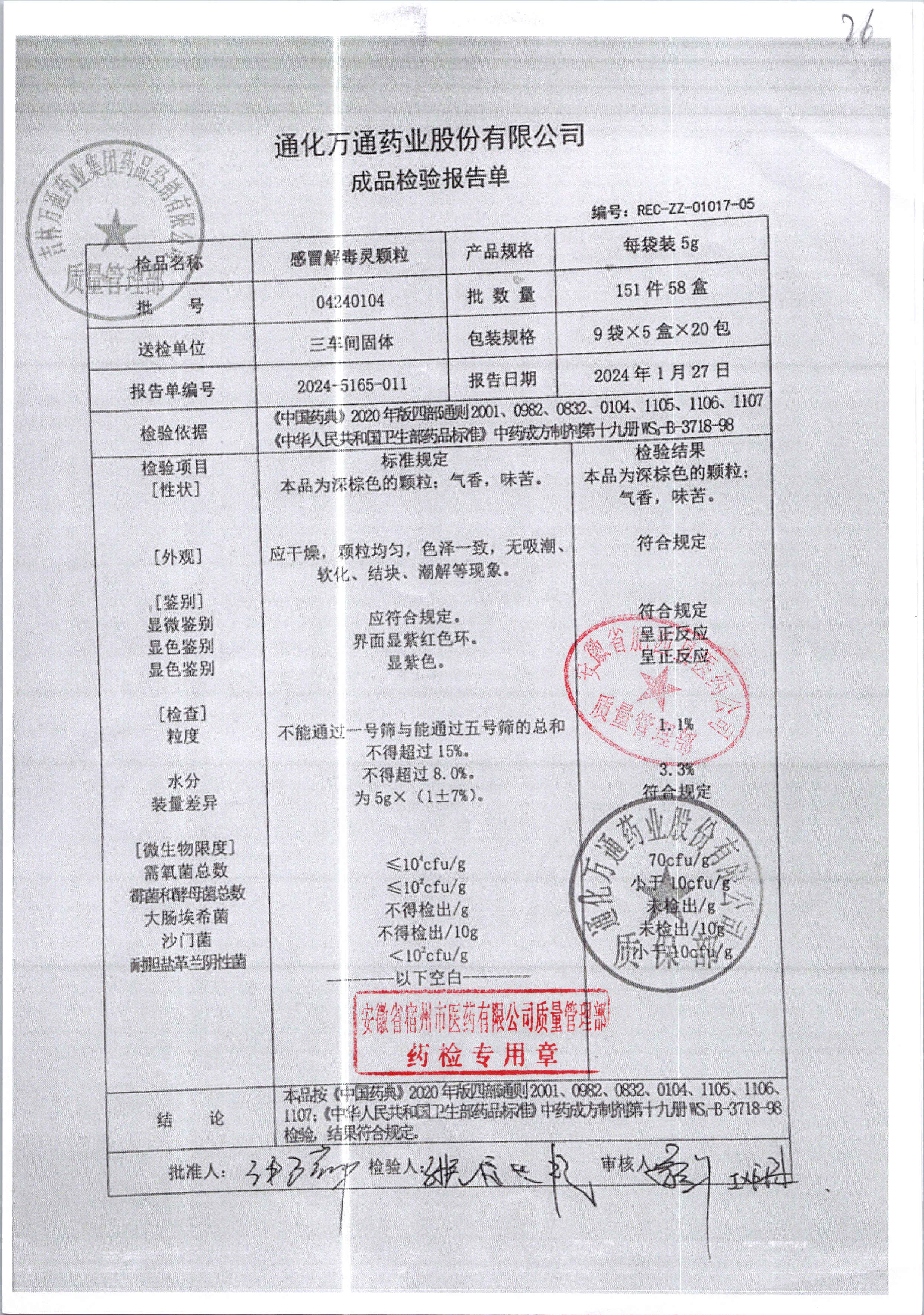 名稱 規(guī)格 批號(hào) 藥檢報(bào)告