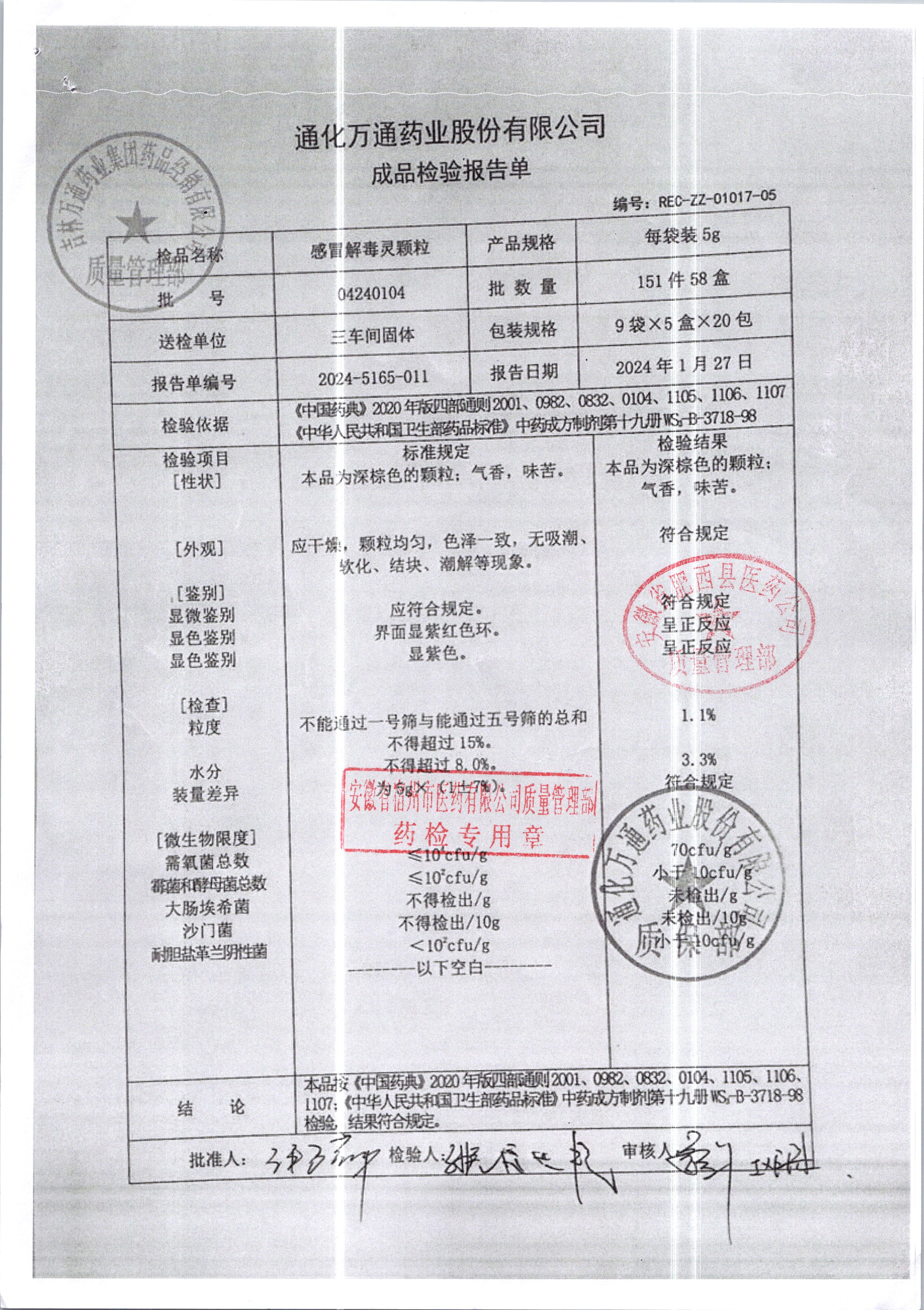 感冒解毒靈顆粒 5g*9袋*5盒 04240104 查看詳情