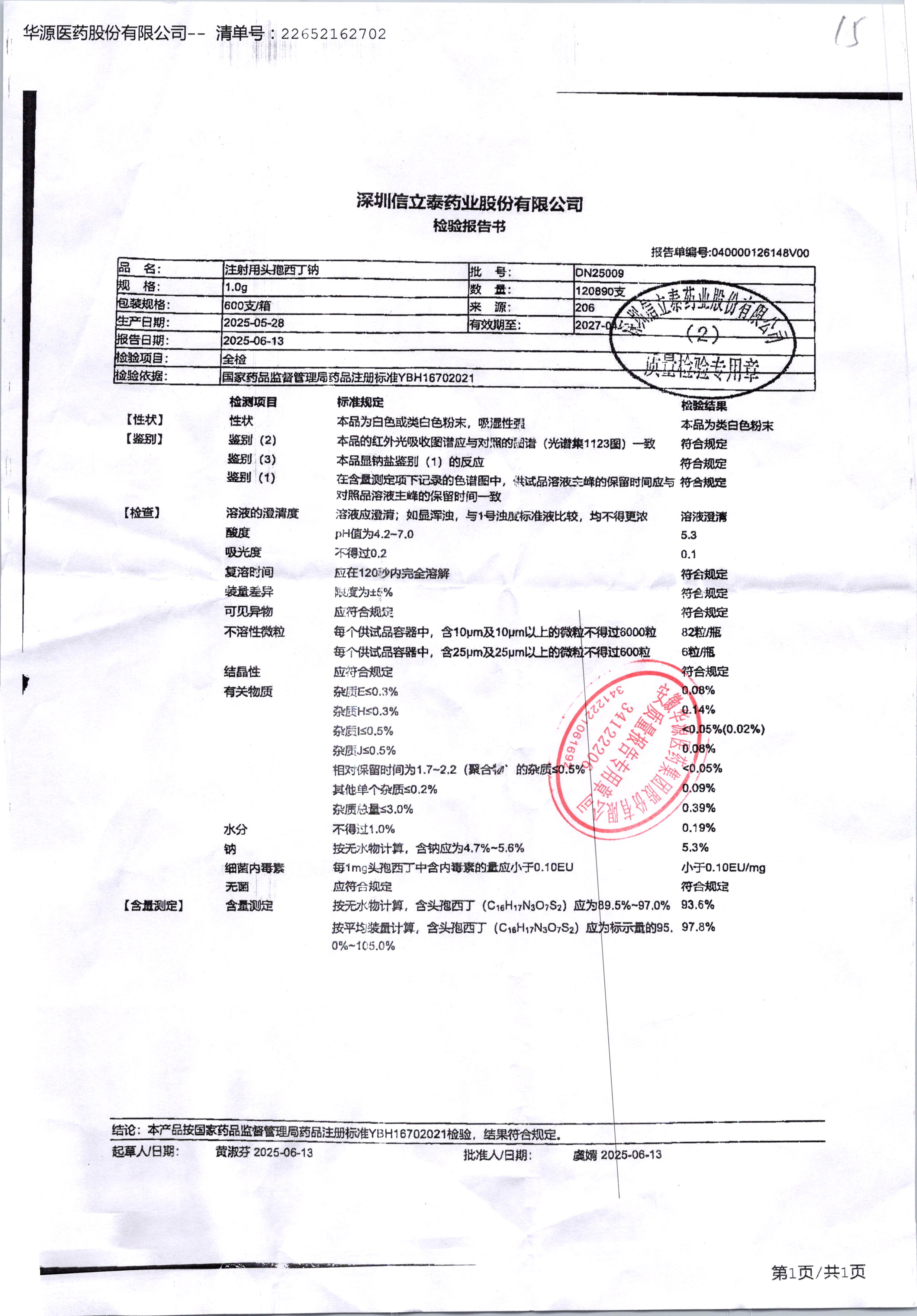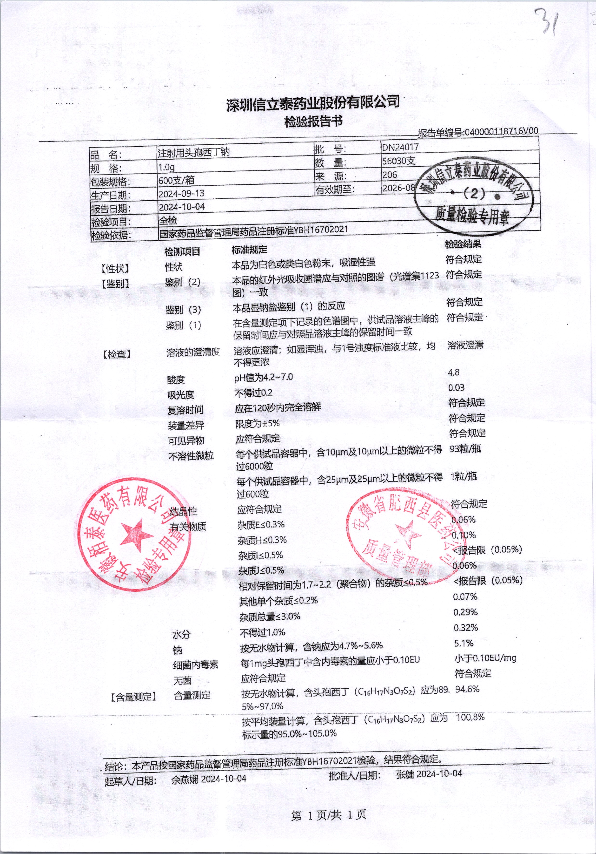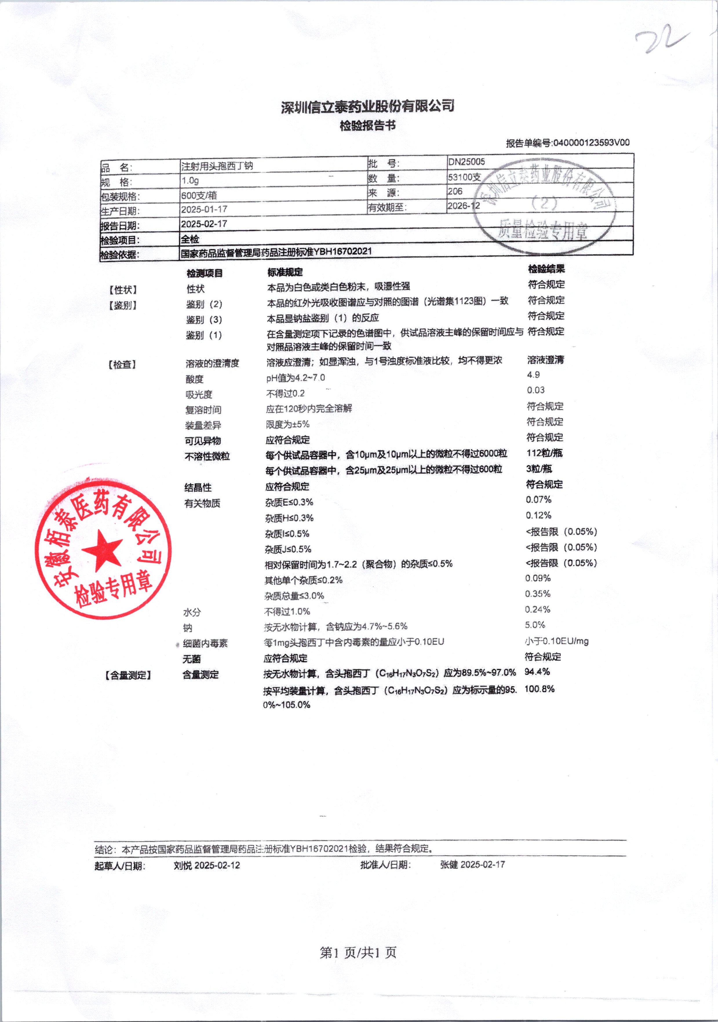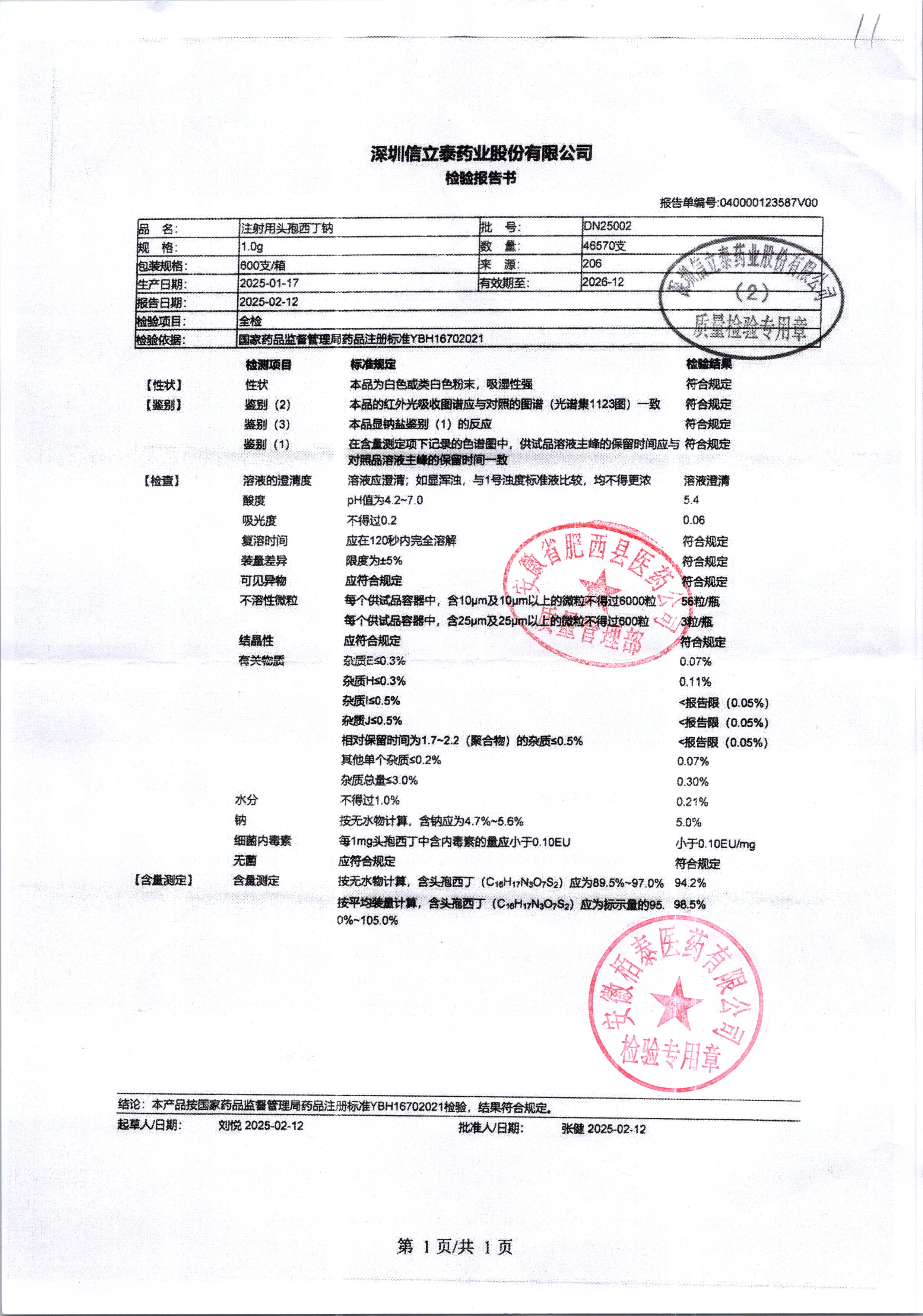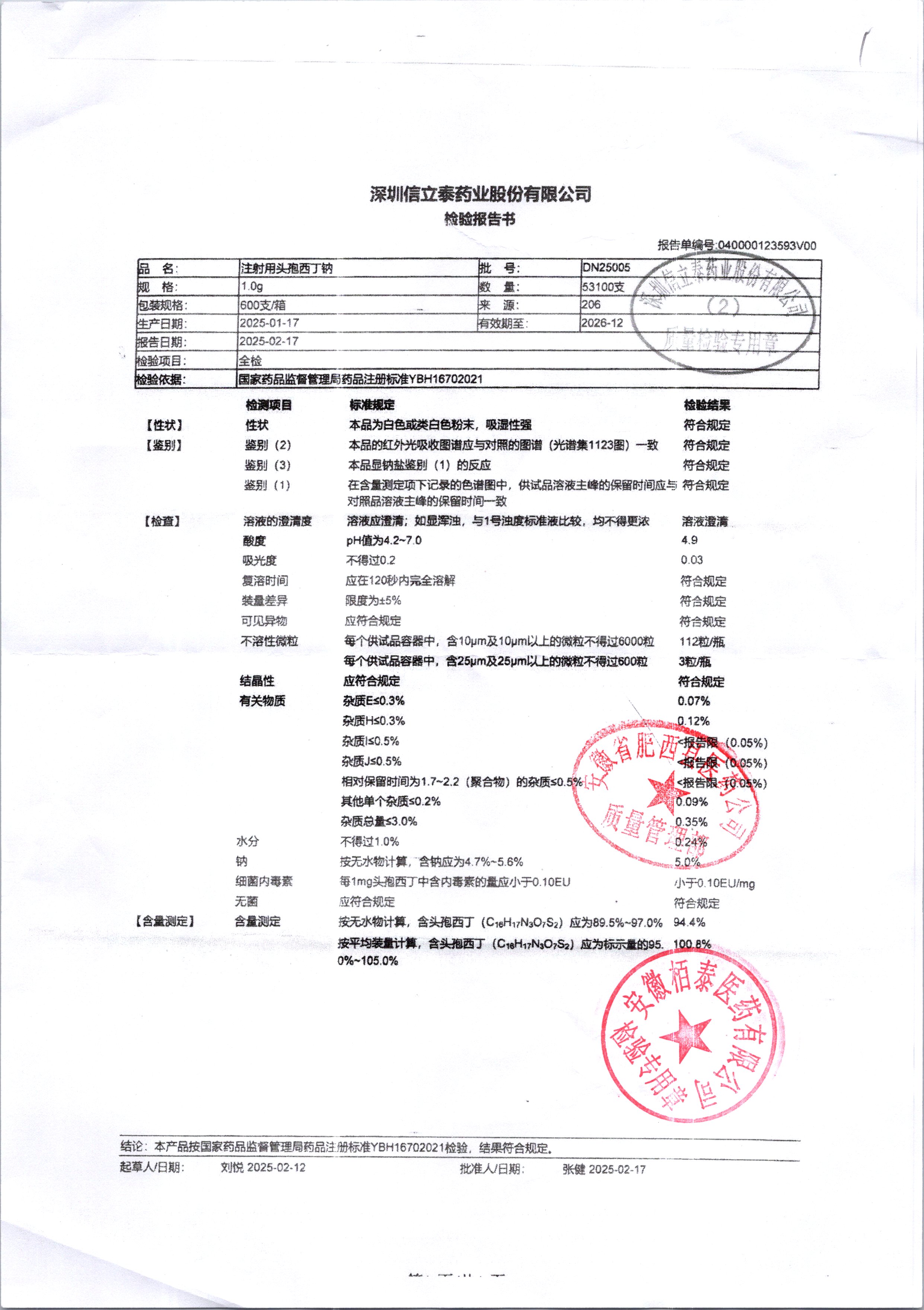| 注射用頭孢西丁鈉 | 1.0g | DN25002 | 查看詳情 |