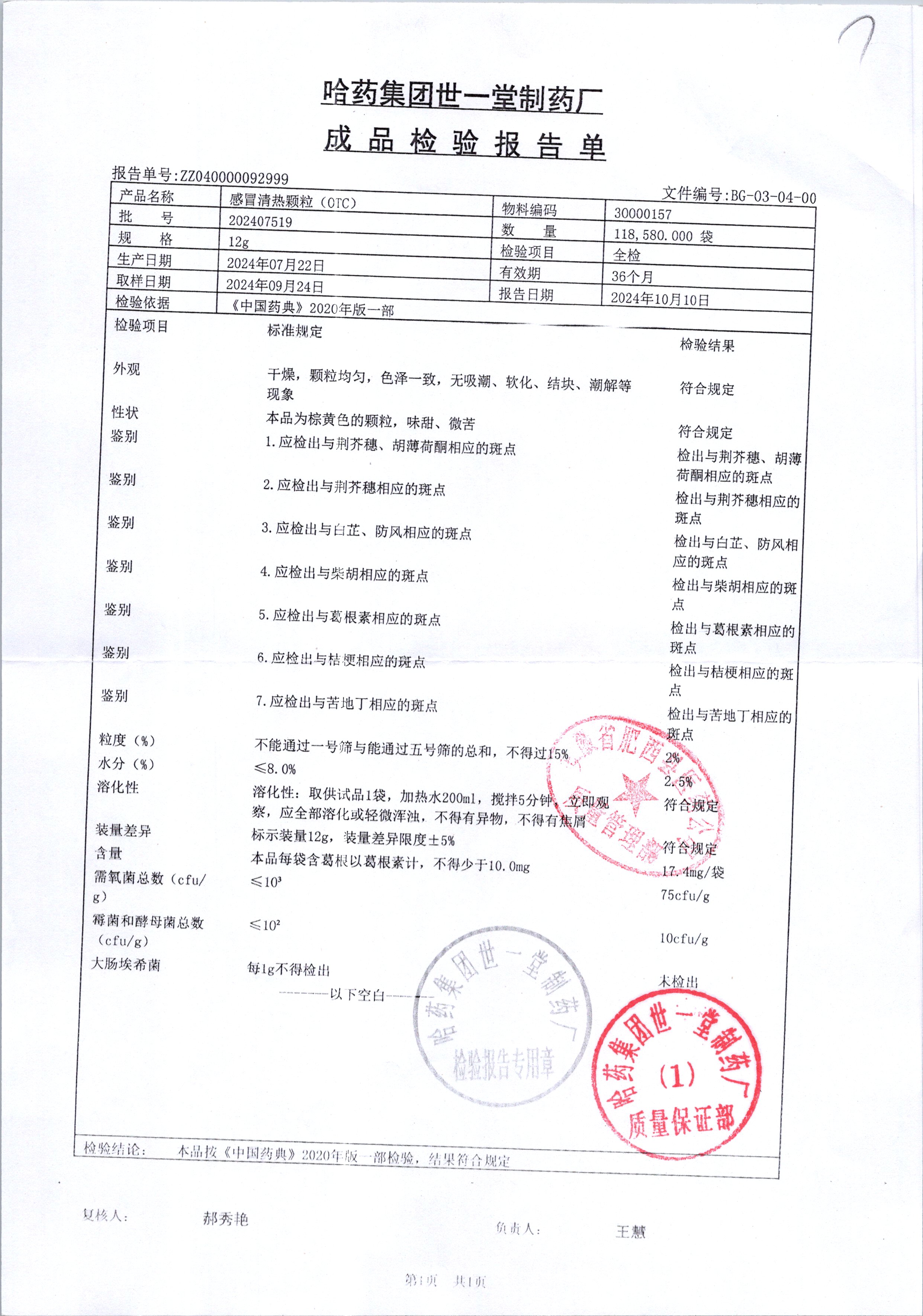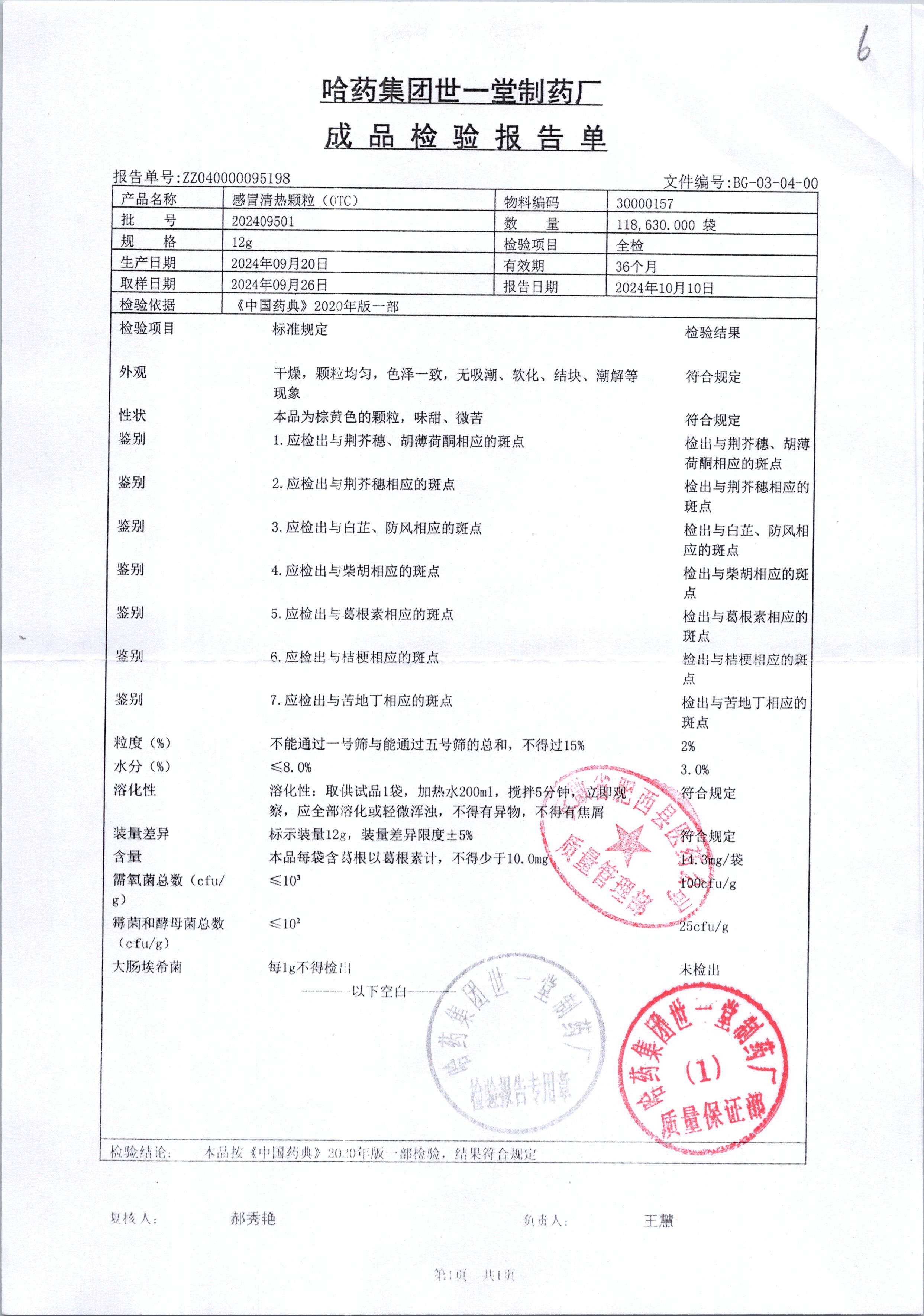 名稱 規(guī)格 批號(hào) 藥檢報(bào)告