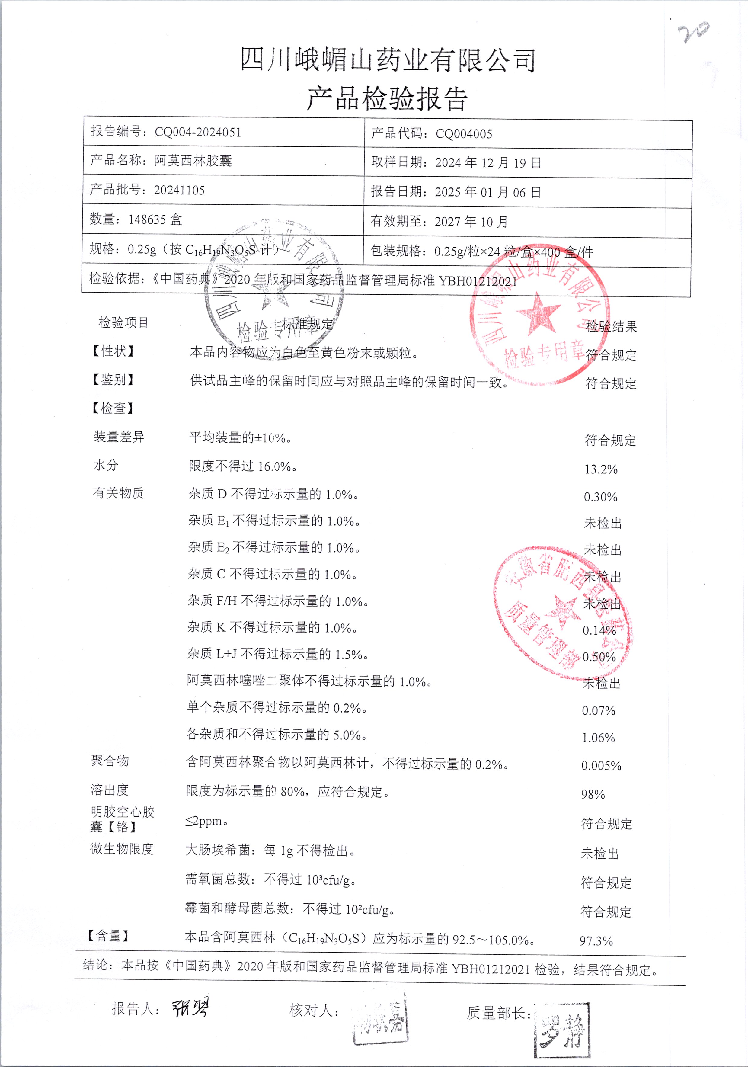 阿莫西林膠囊 0.25g*24粒 20241105 查看詳情
