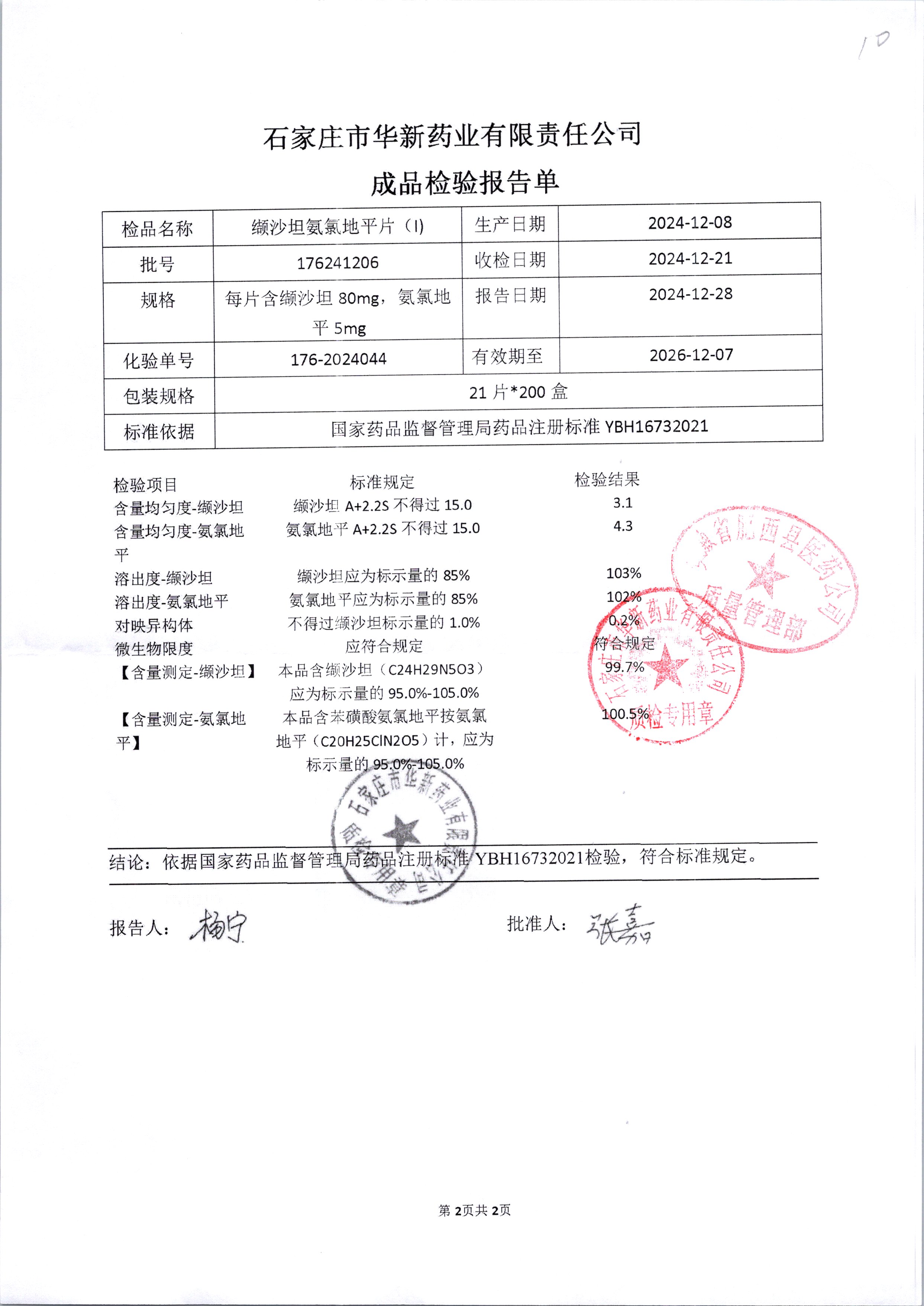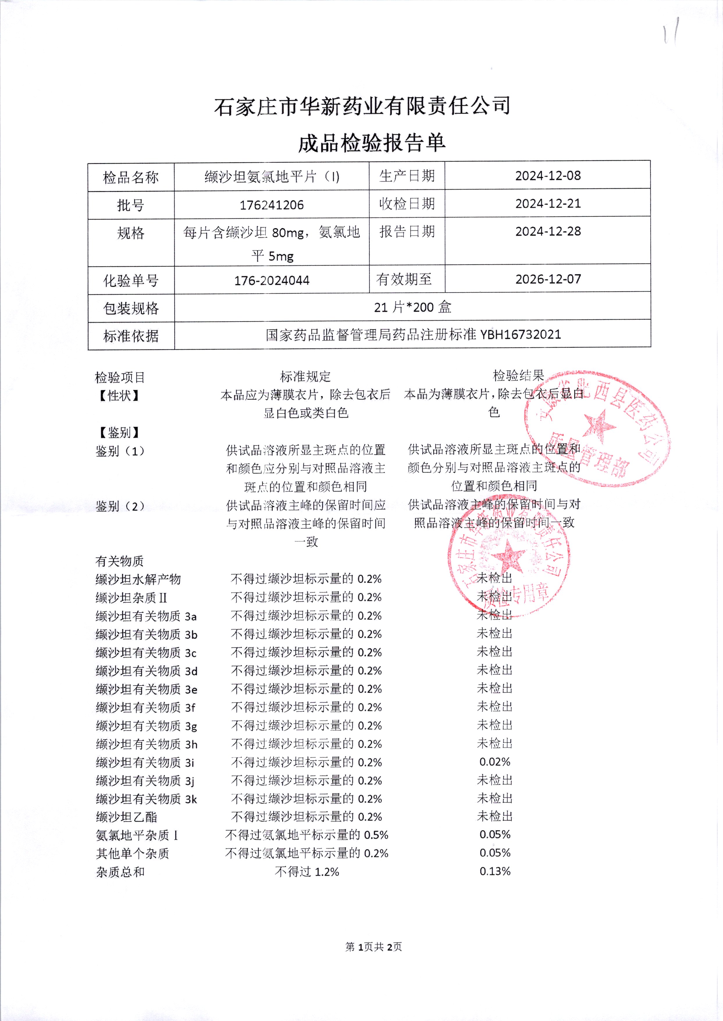 | 纈沙坦氨氯地平片 | 80mg*5mg*21片 | 176241206/2 | 查看詳情 |