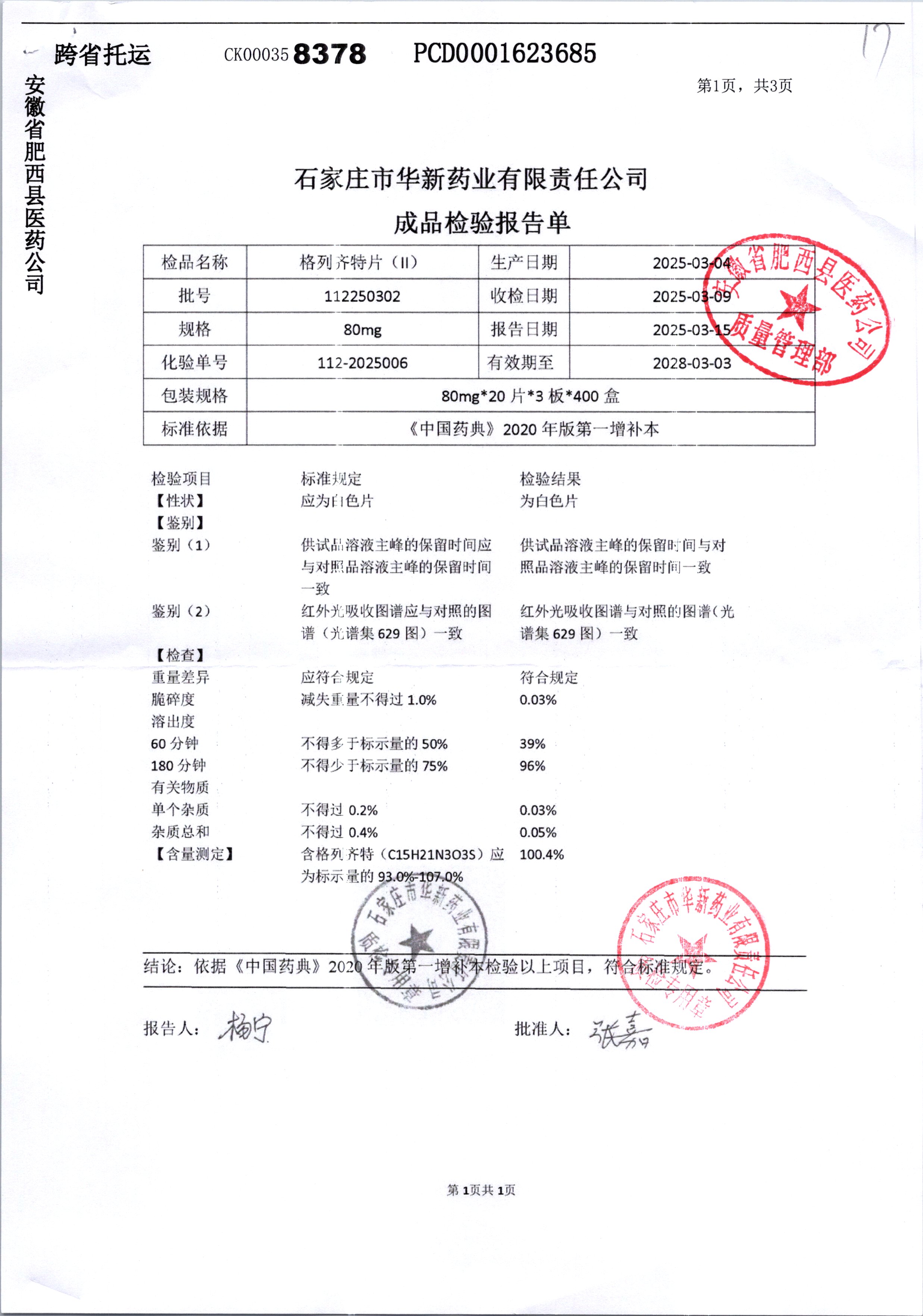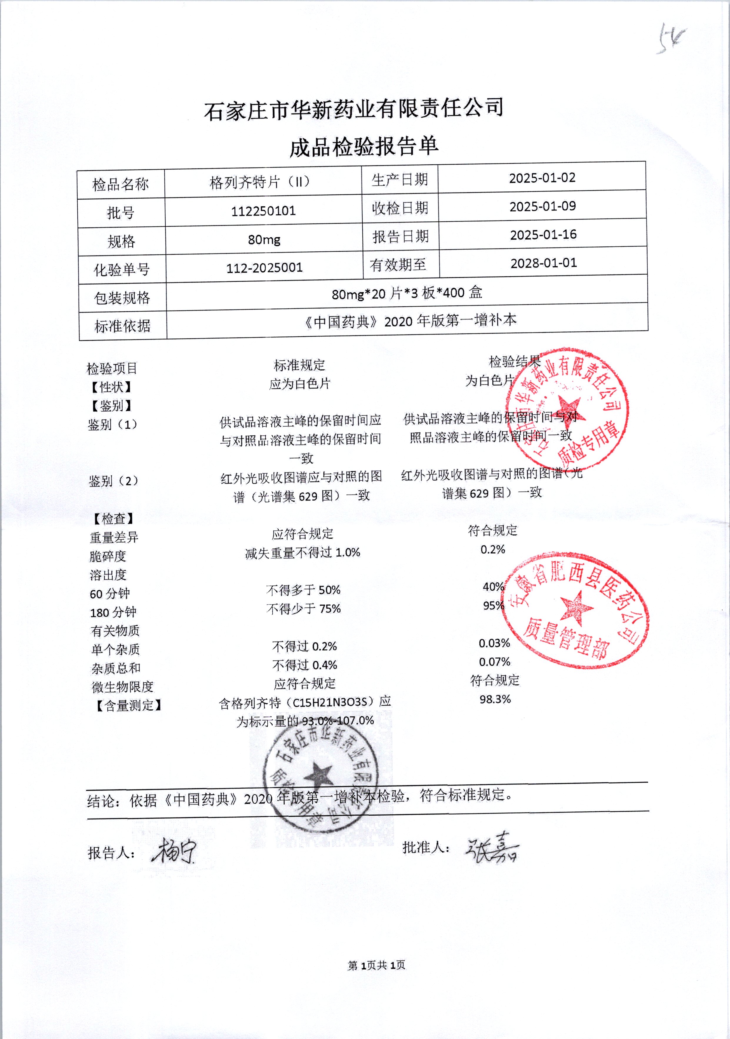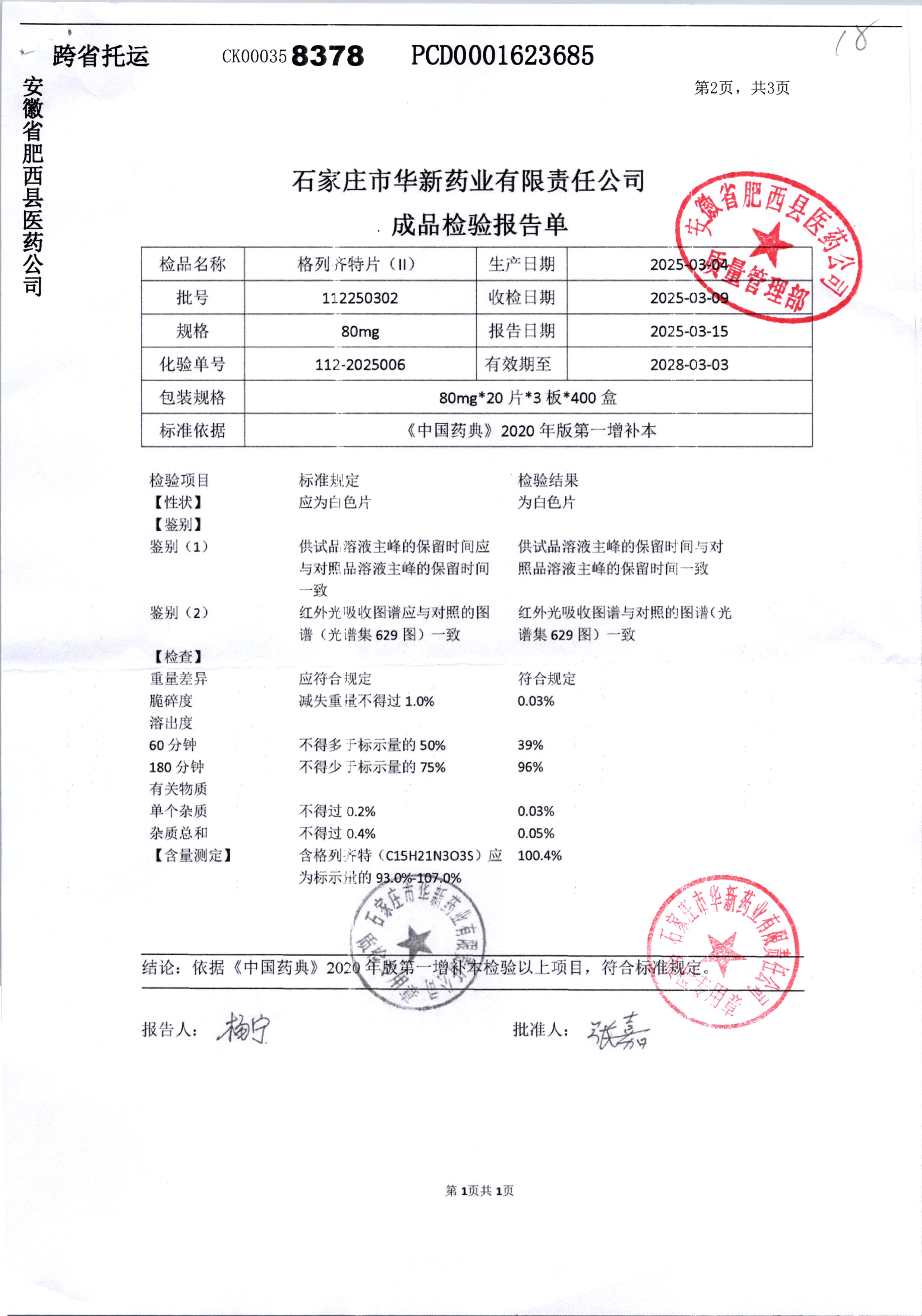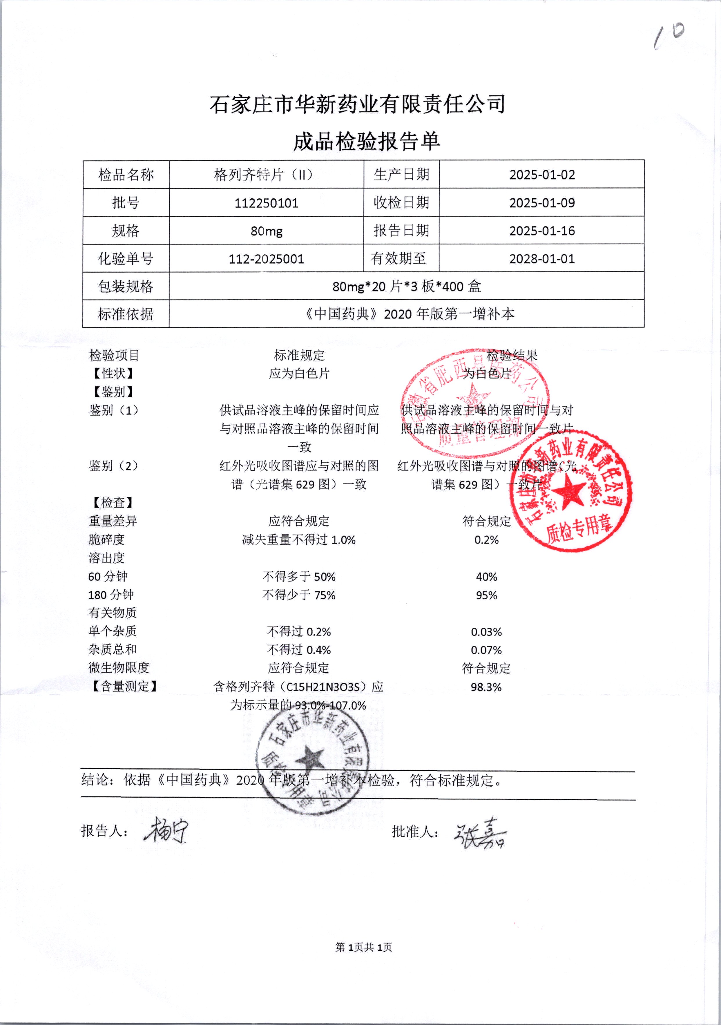 名稱 規(guī)格 批號 藥檢報(bào)告