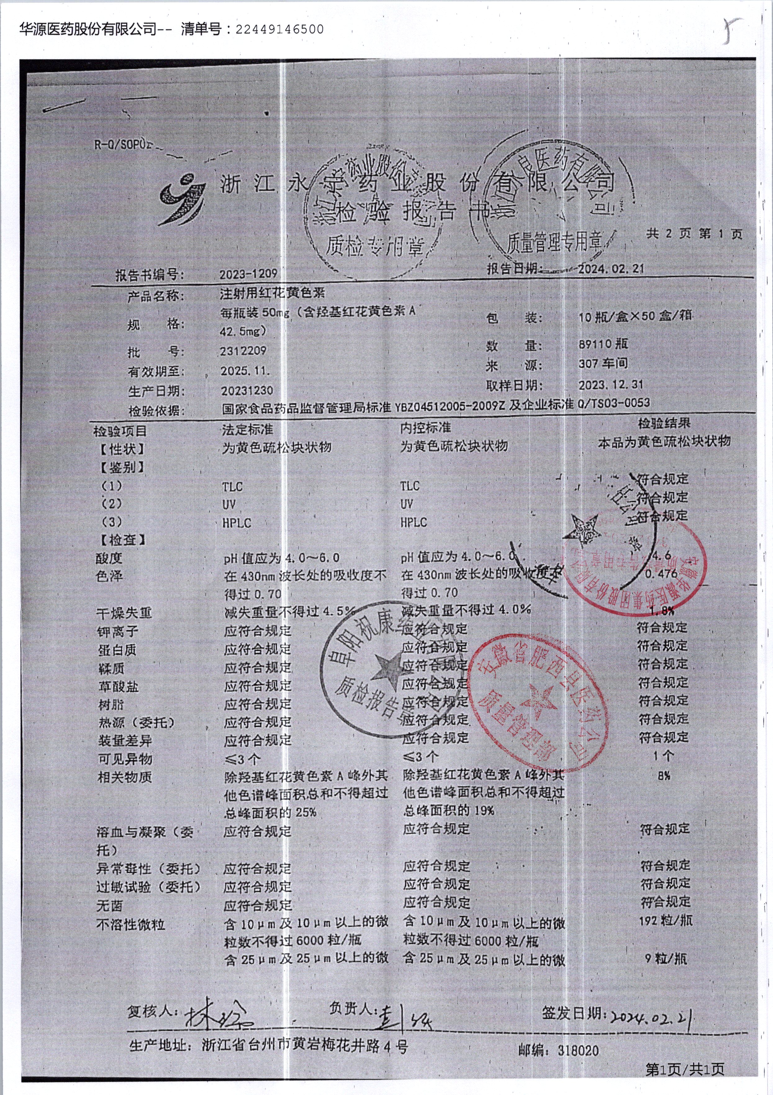 | 注射用紅花黃色素 | 50mg*10瓶 | 2312203/2 | 查看詳情 |