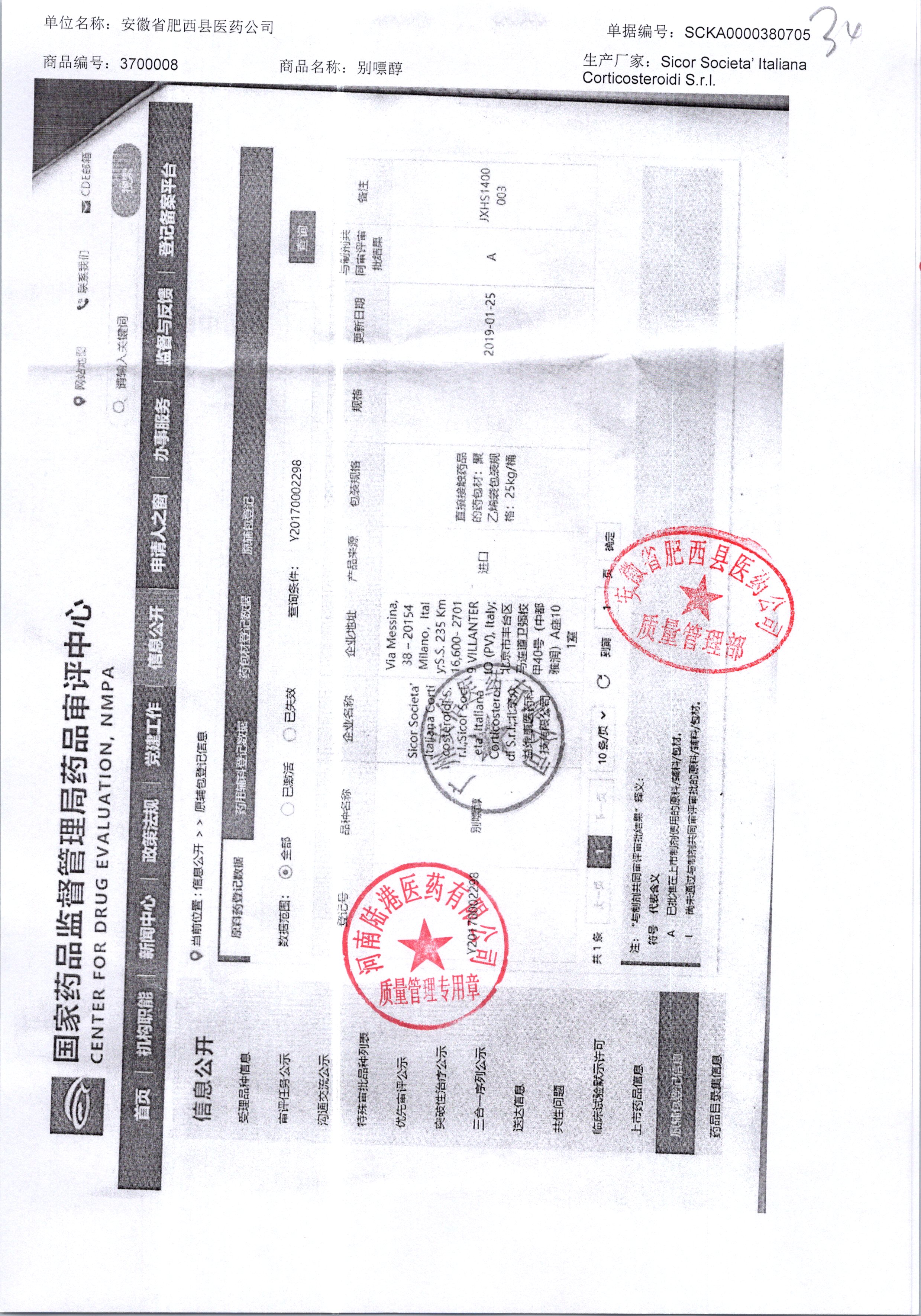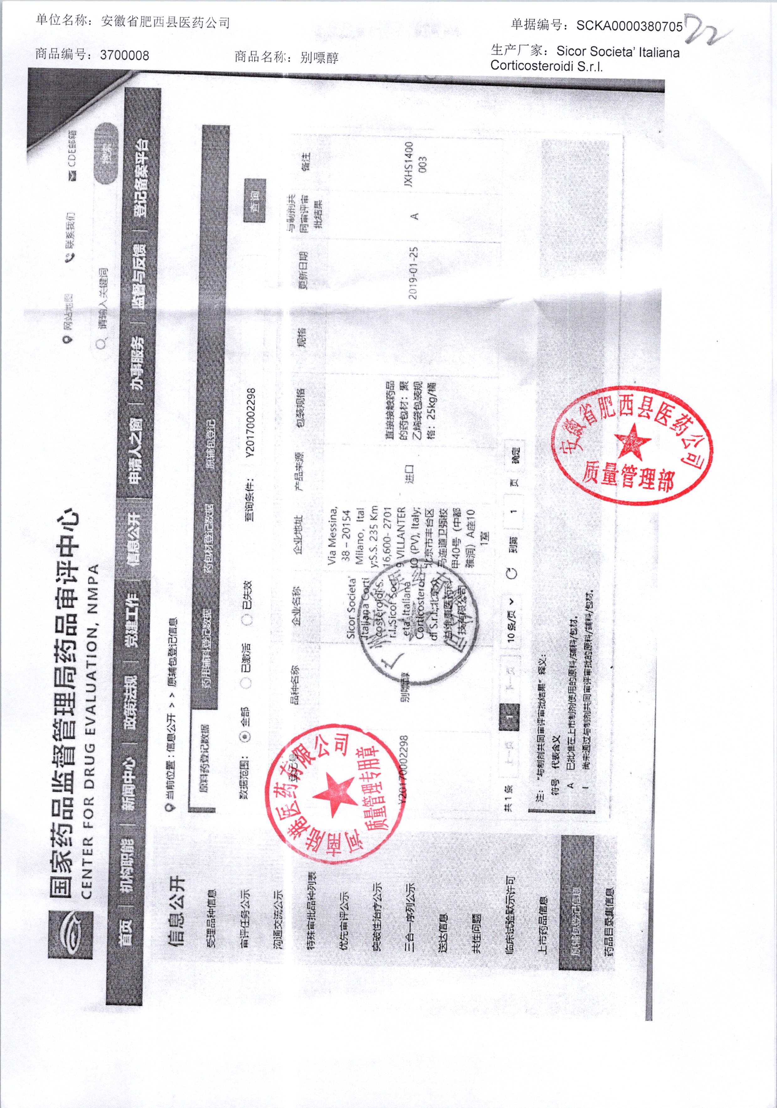 | 名稱 | 規(guī)格 | 批號(hào) | 藥檢報(bào)告 |