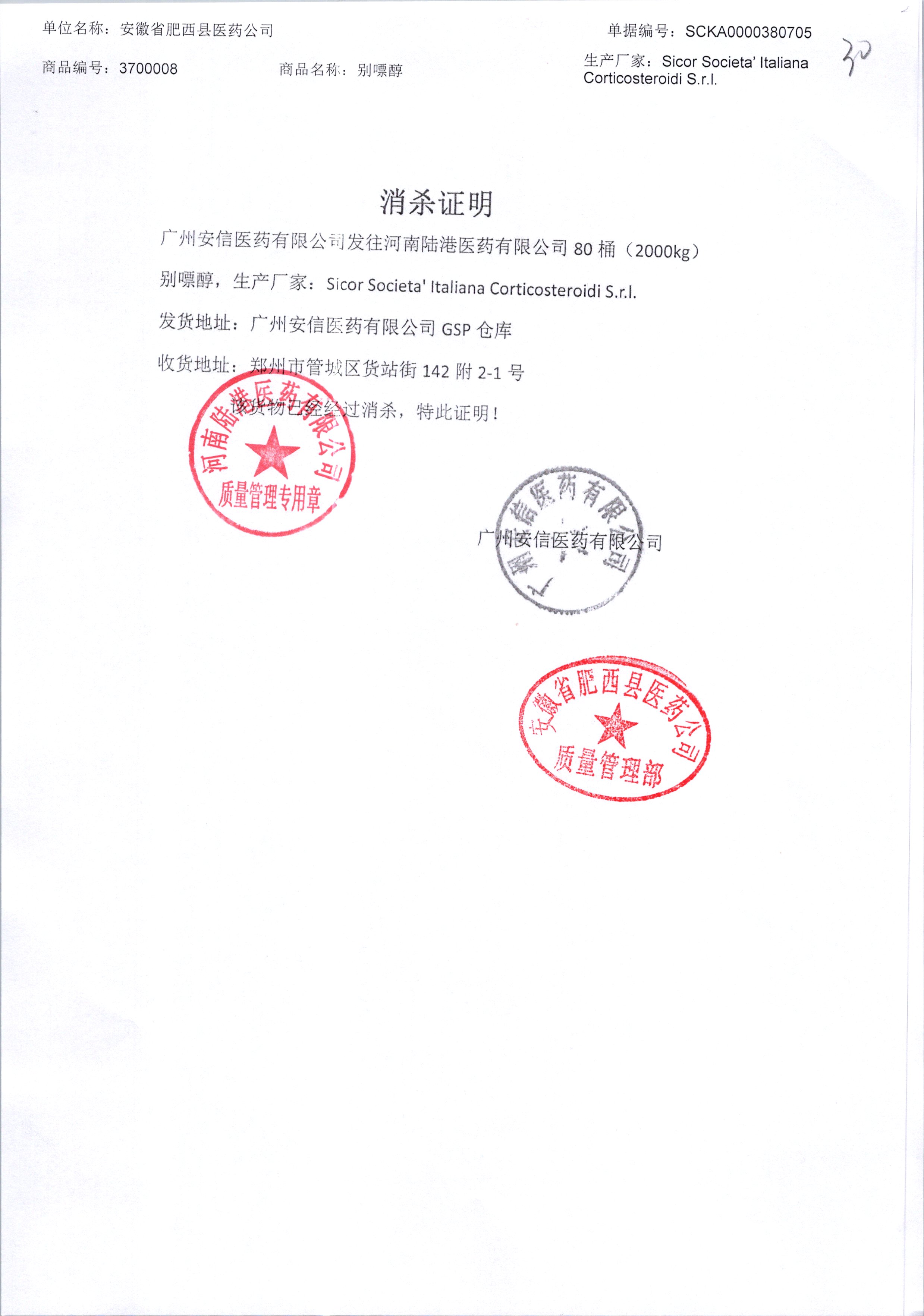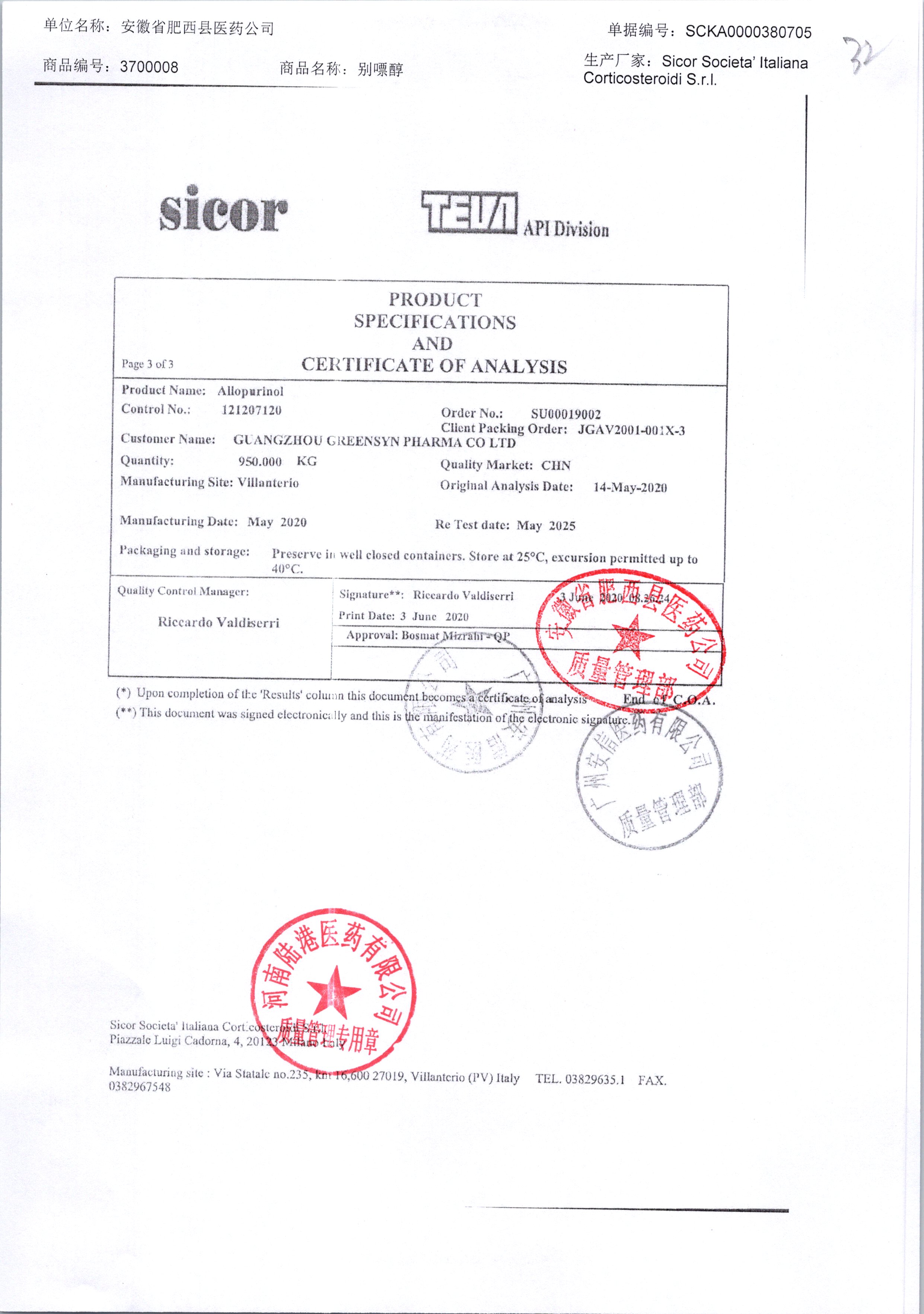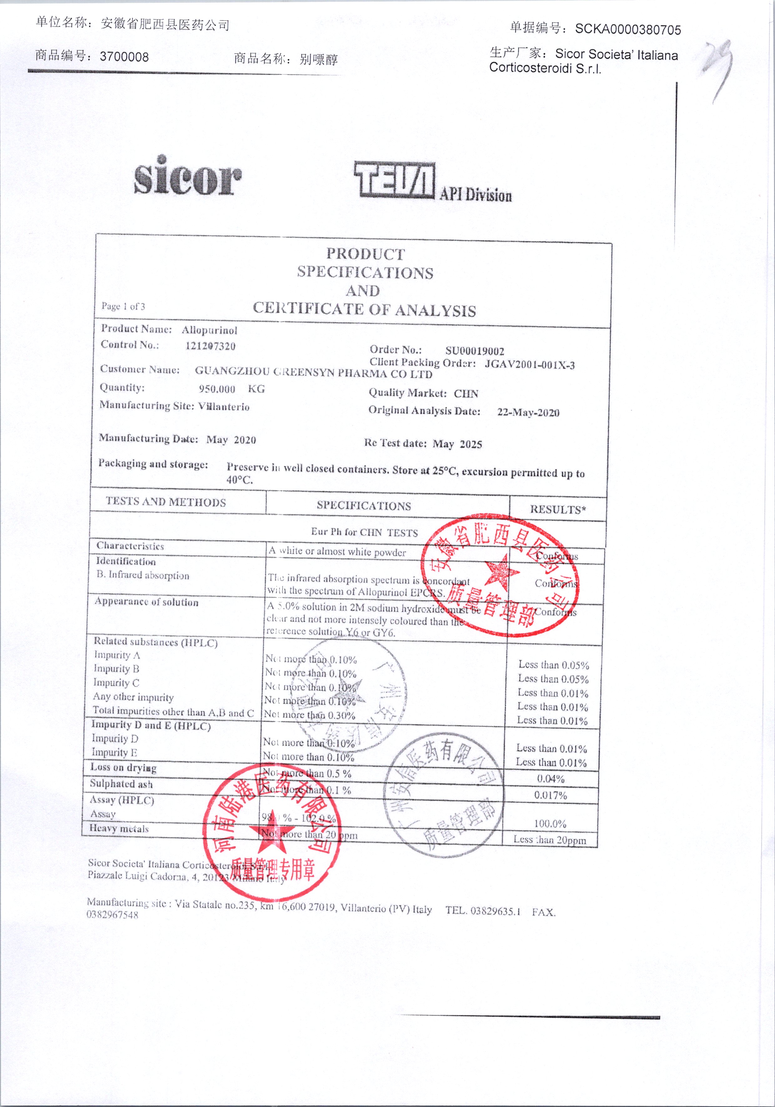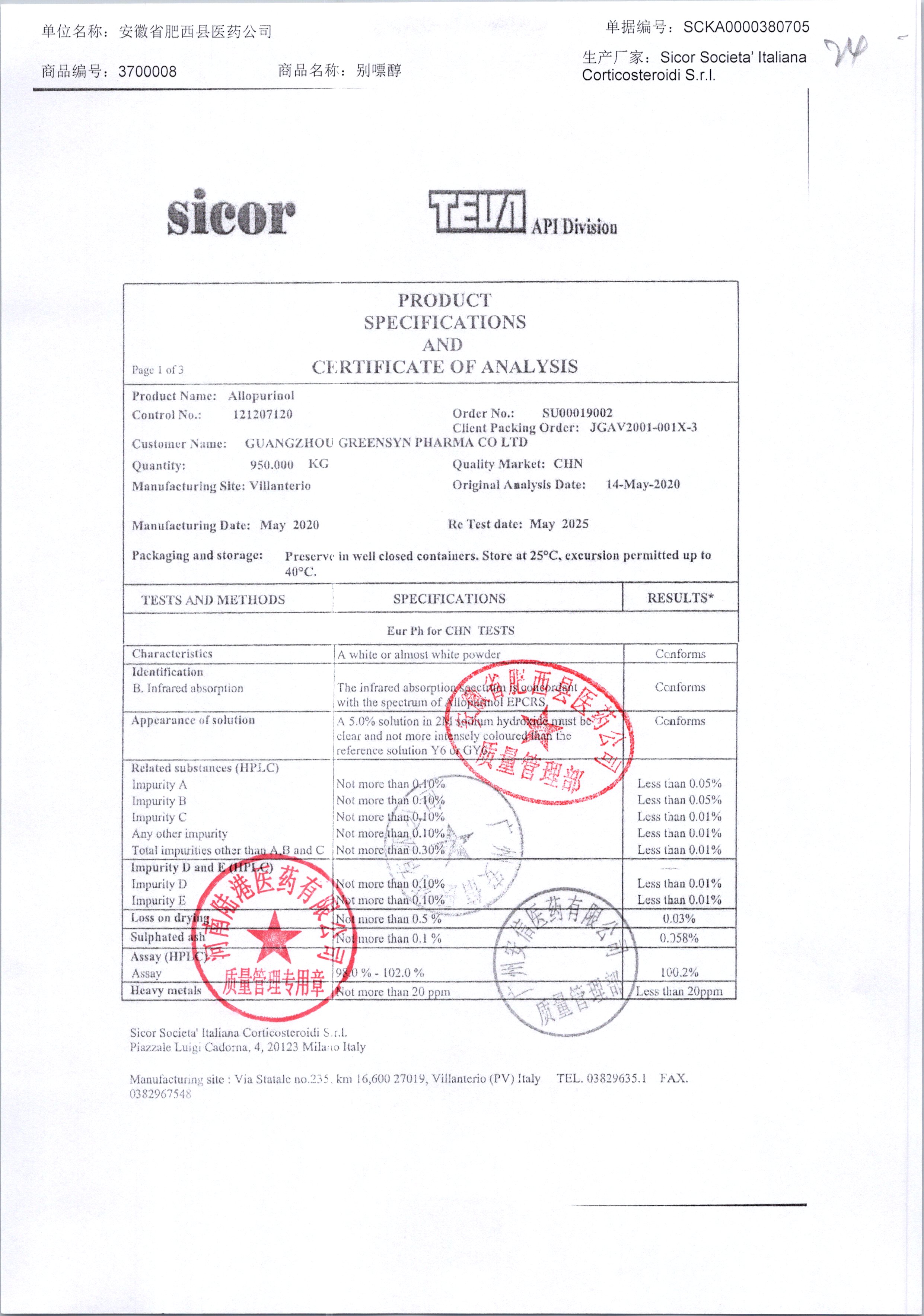 | 別嘌醇 | 25kg | 121207320/1 | 查看詳情 |