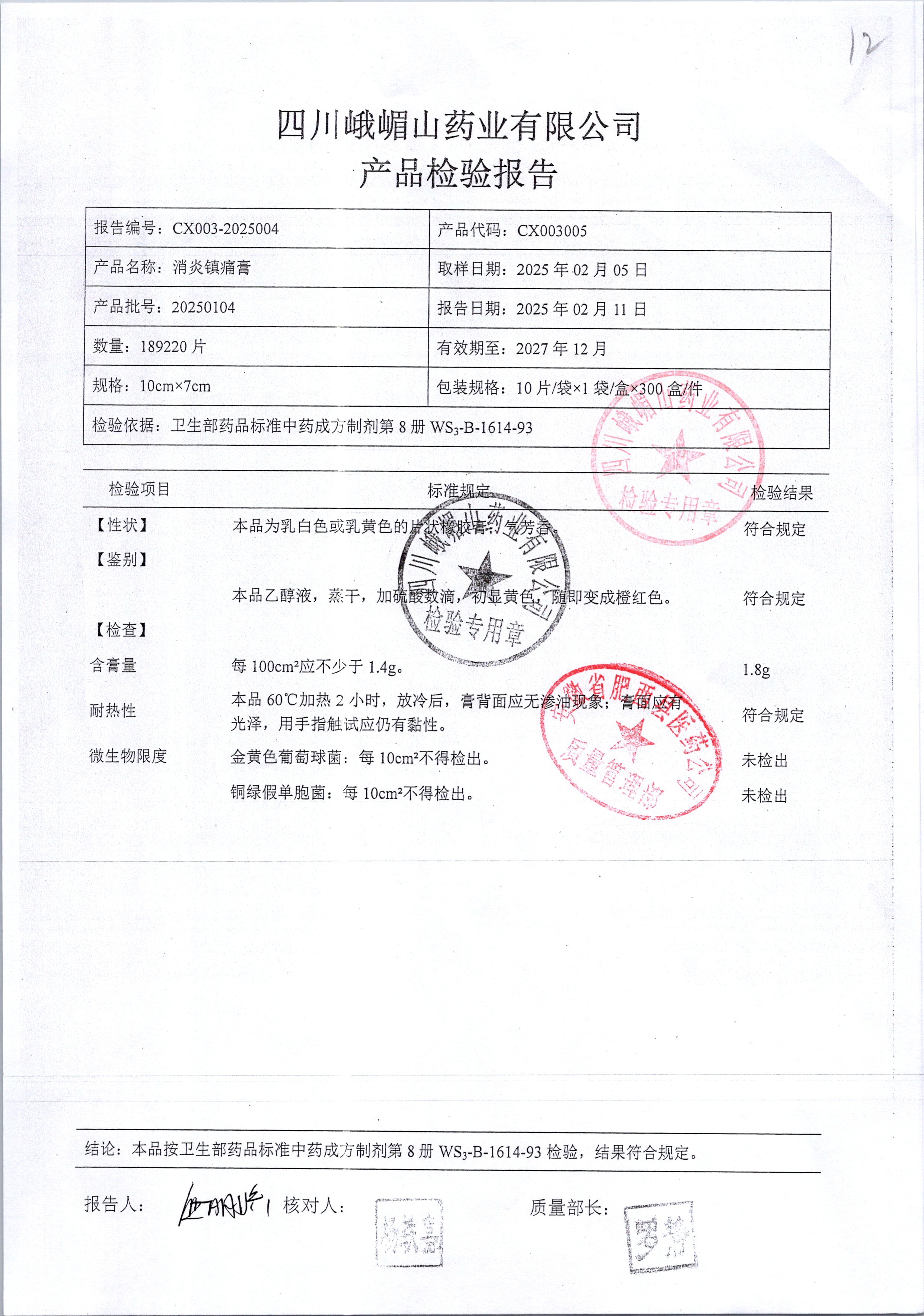 消炎鎮(zhèn)痛膏 10cm*7cm 20250104 查看詳情