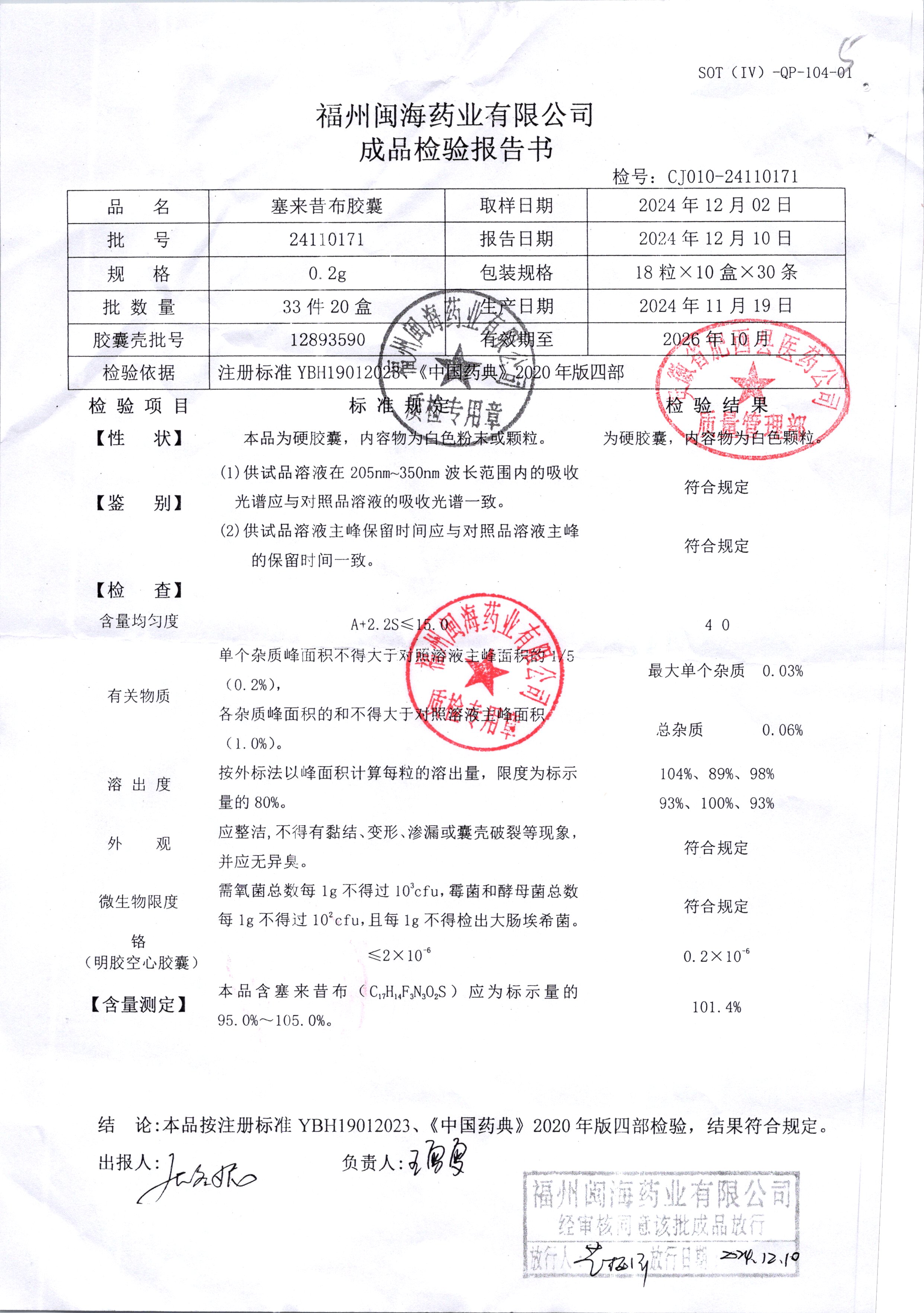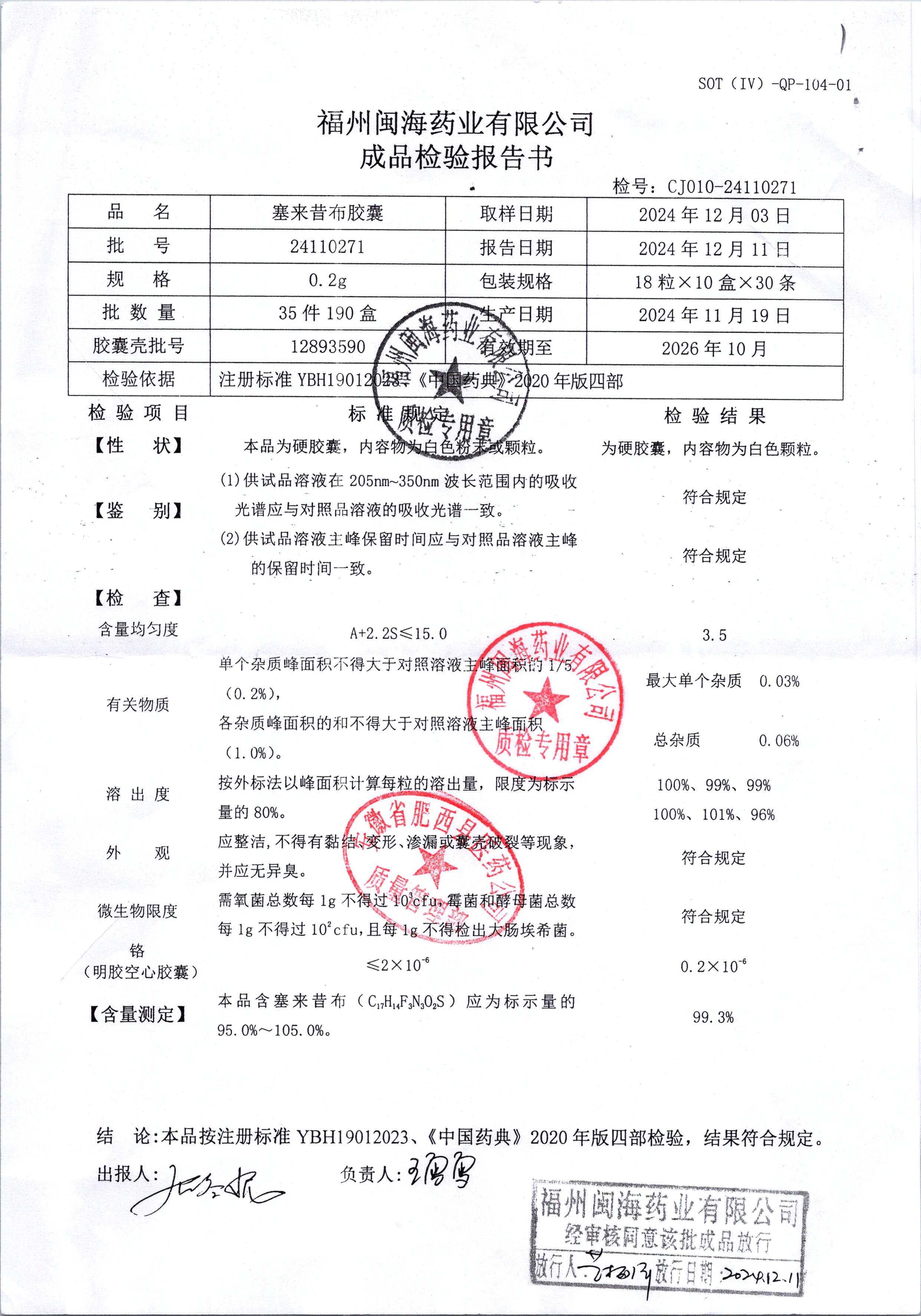 | 塞來昔布膠囊 | 0.2g*18粒 | 24110271 | 查看詳情 |