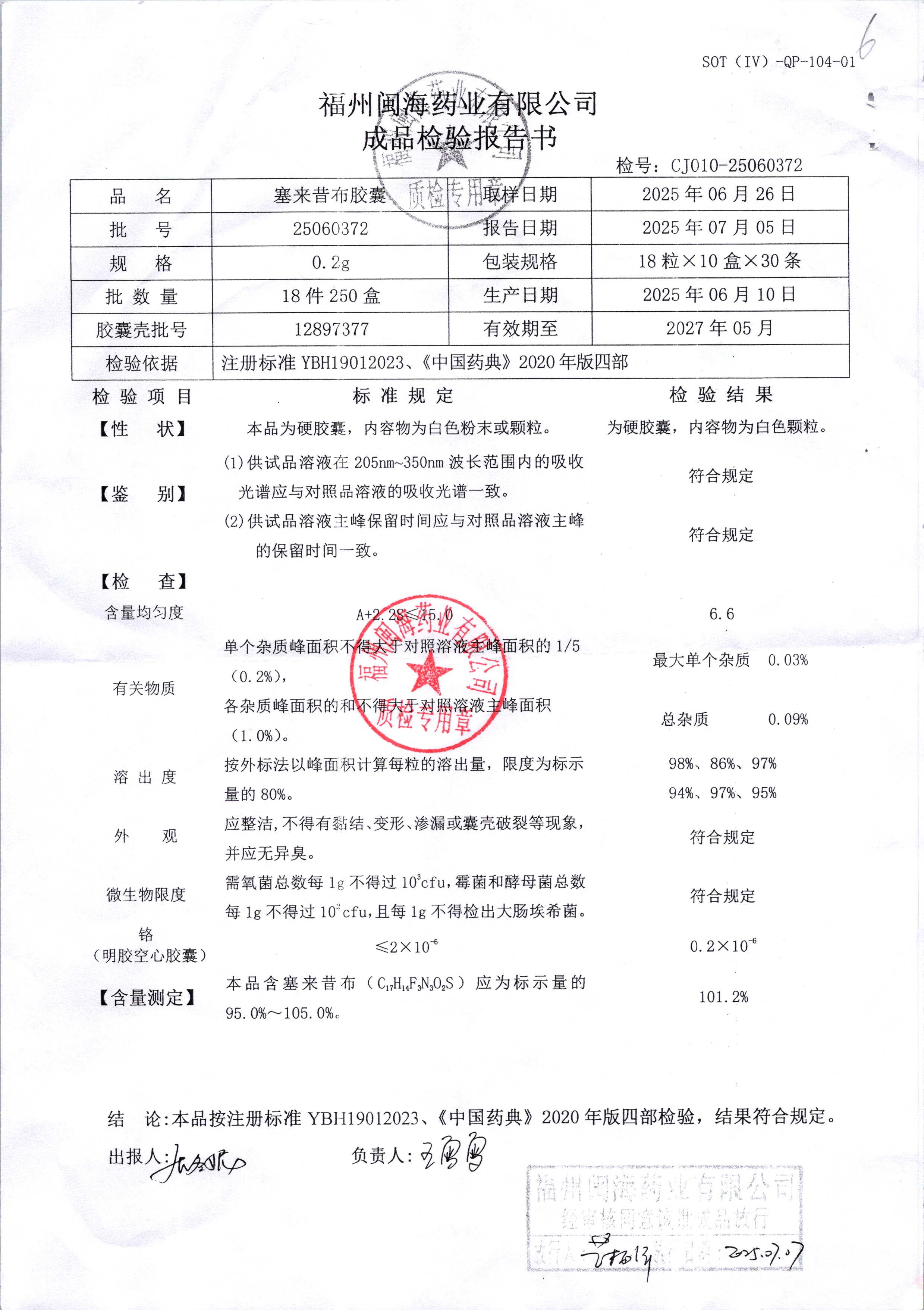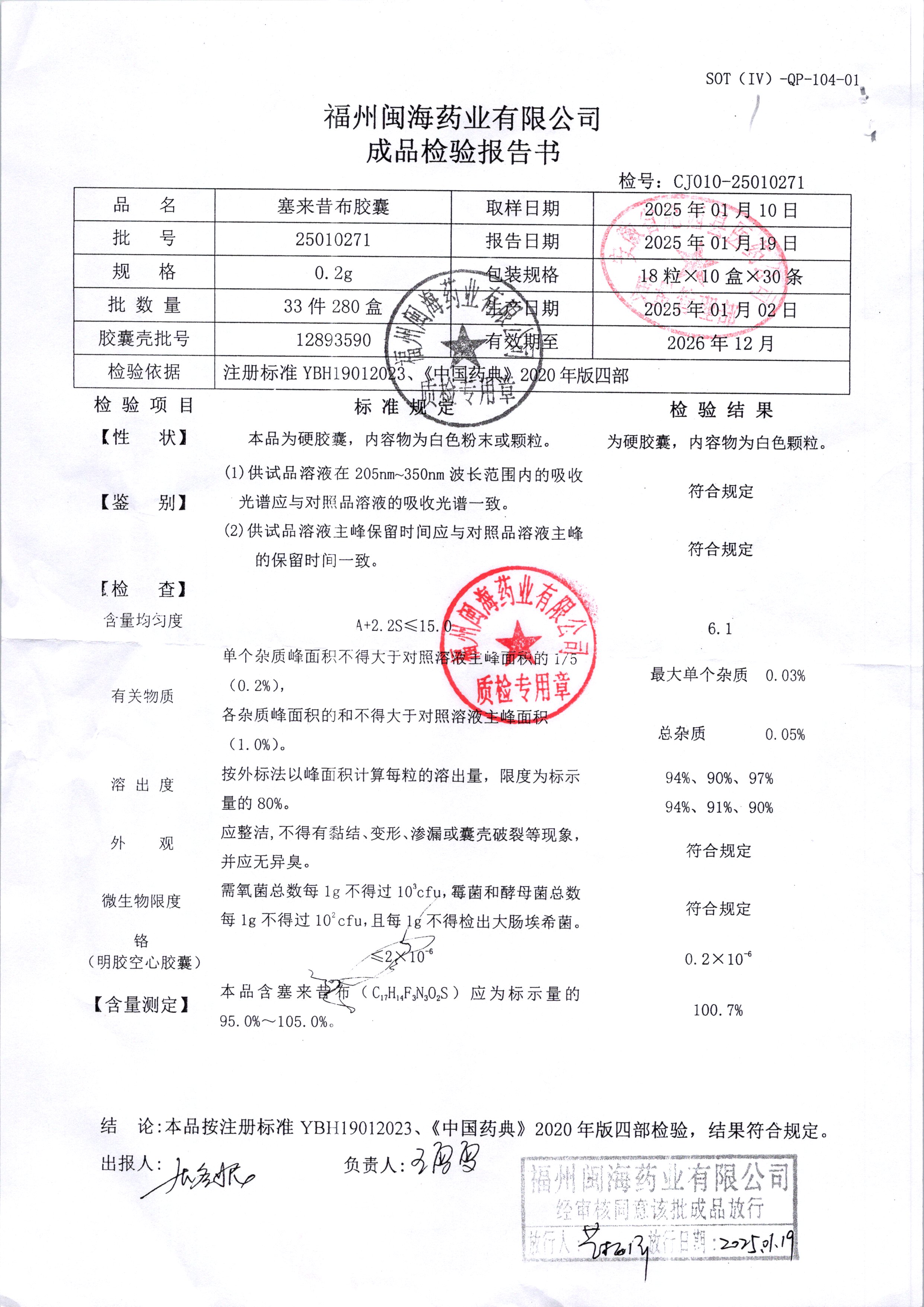 | 塞來昔布膠囊 | 0.2g*18粒 | 25060372 | 查看詳情 |