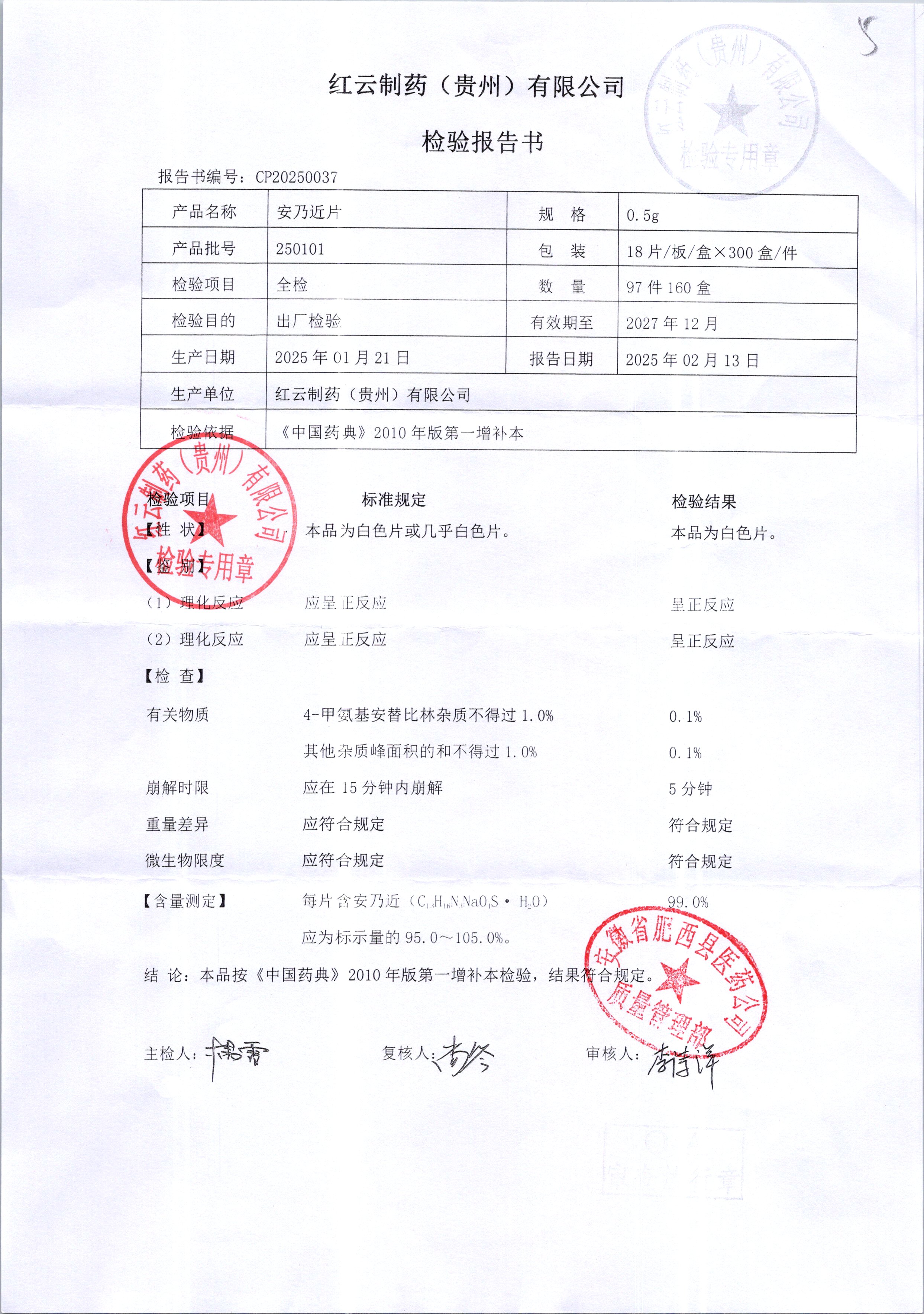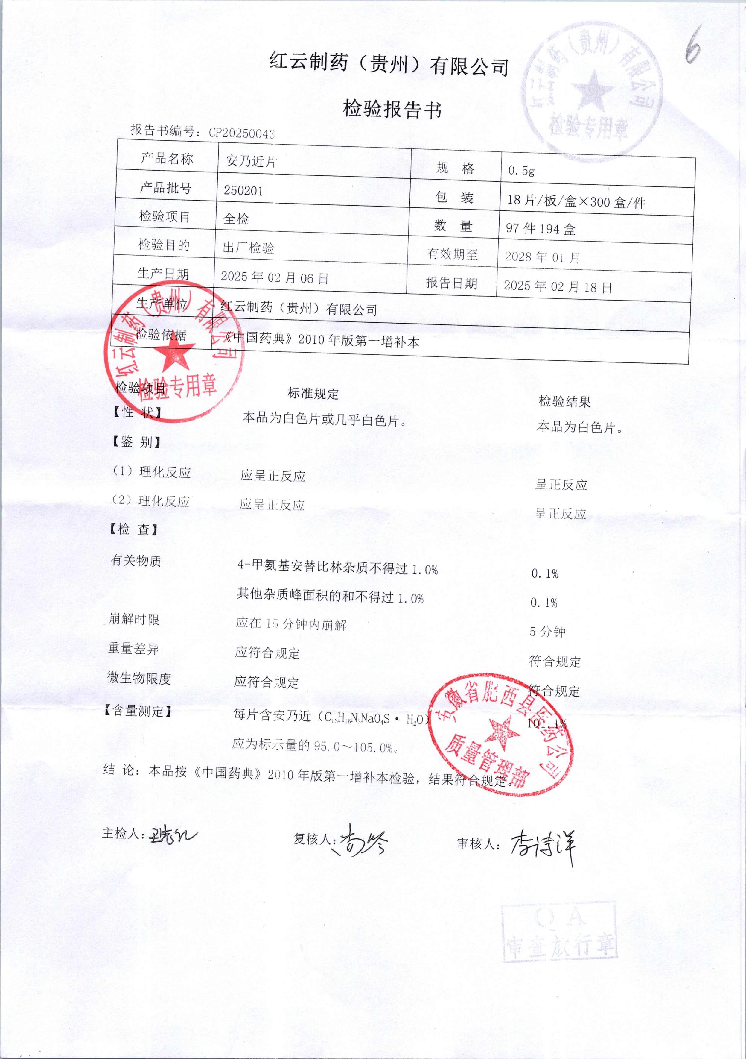 名稱 規(guī)格 批號 藥檢報告