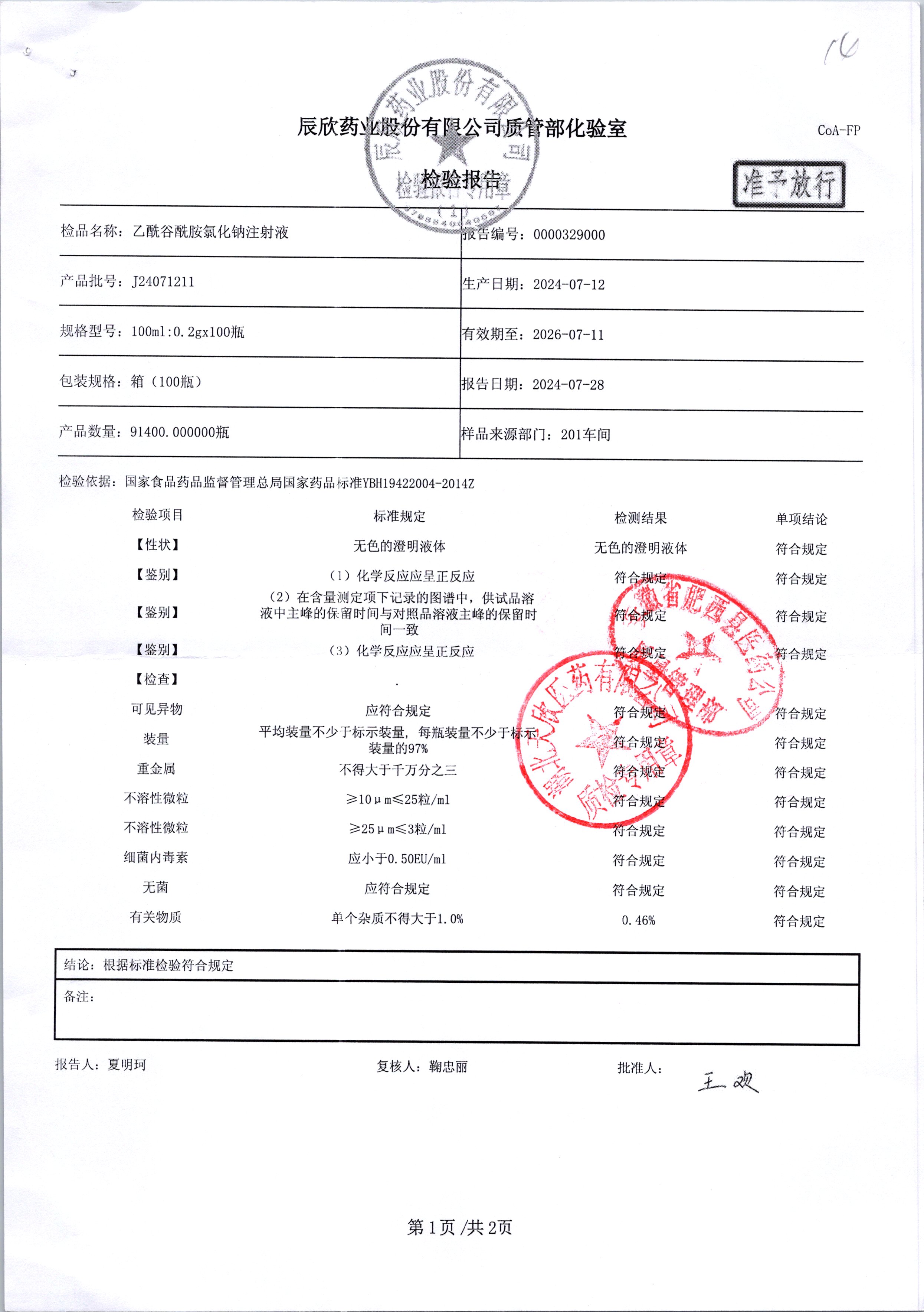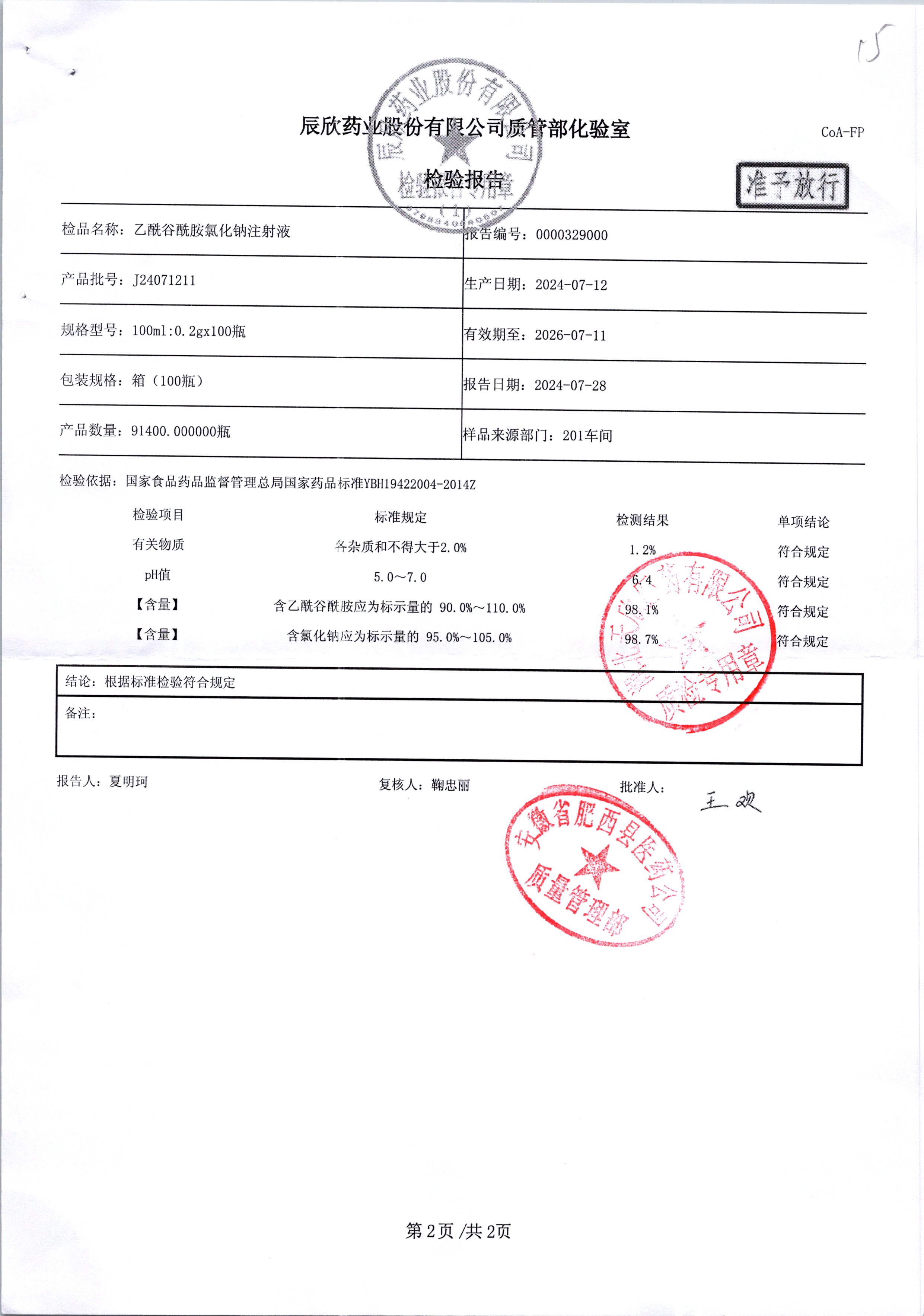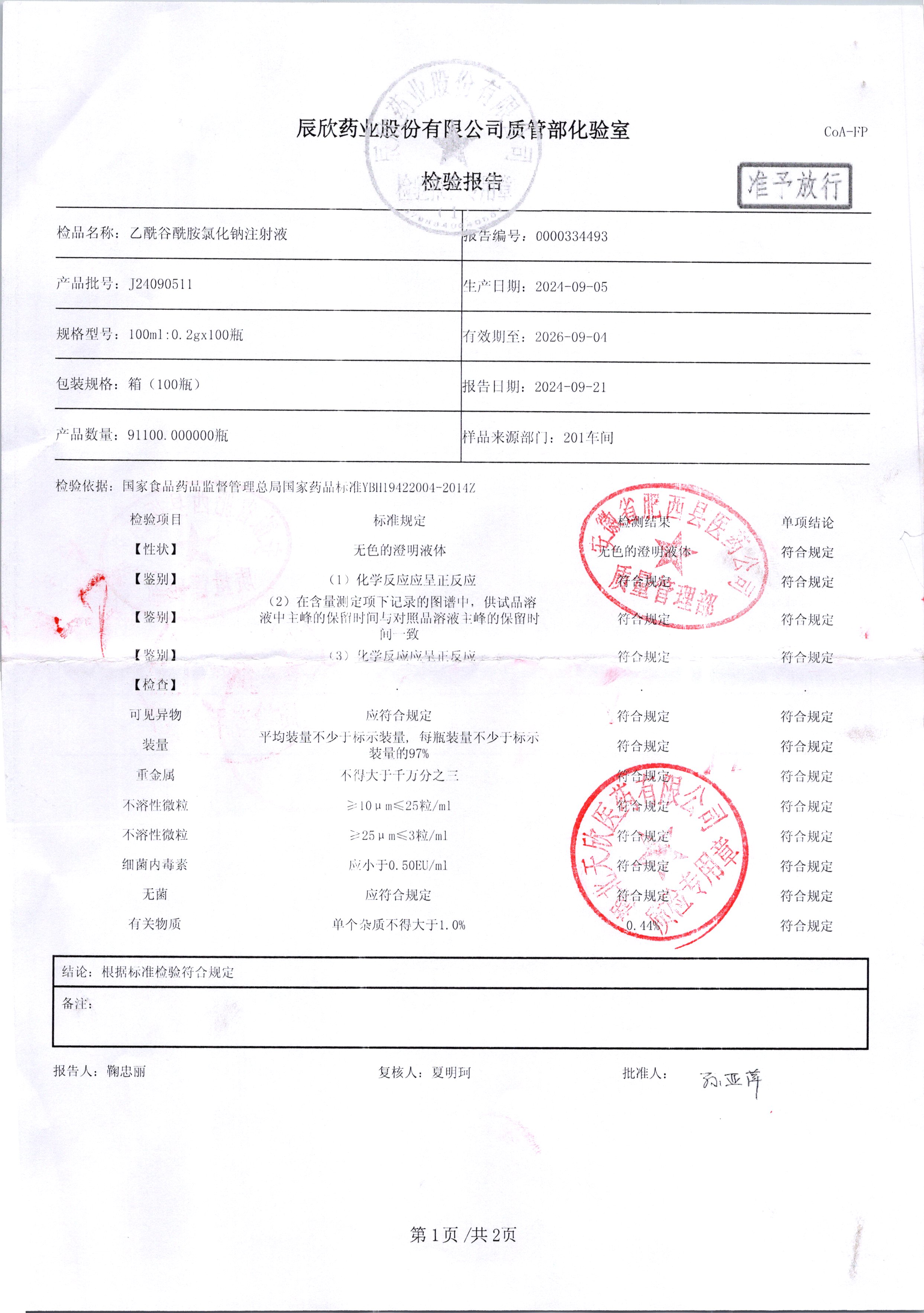 | 乙酰谷酰胺氯化鈉注射液 | 100ml:2g | J24090511/2 | 查看詳情 |