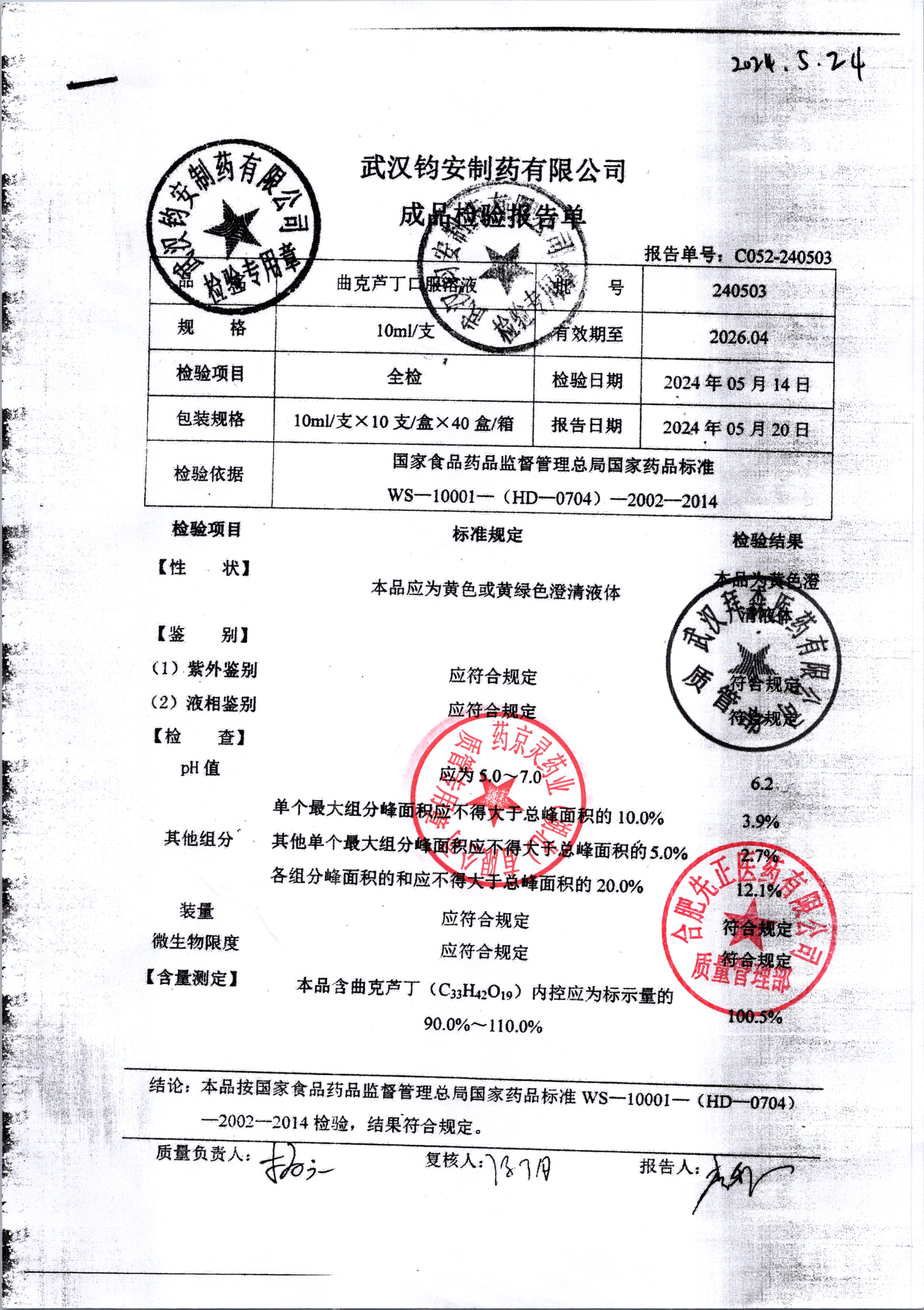 名稱 規(guī)格 批號(hào) 藥檢報(bào)告