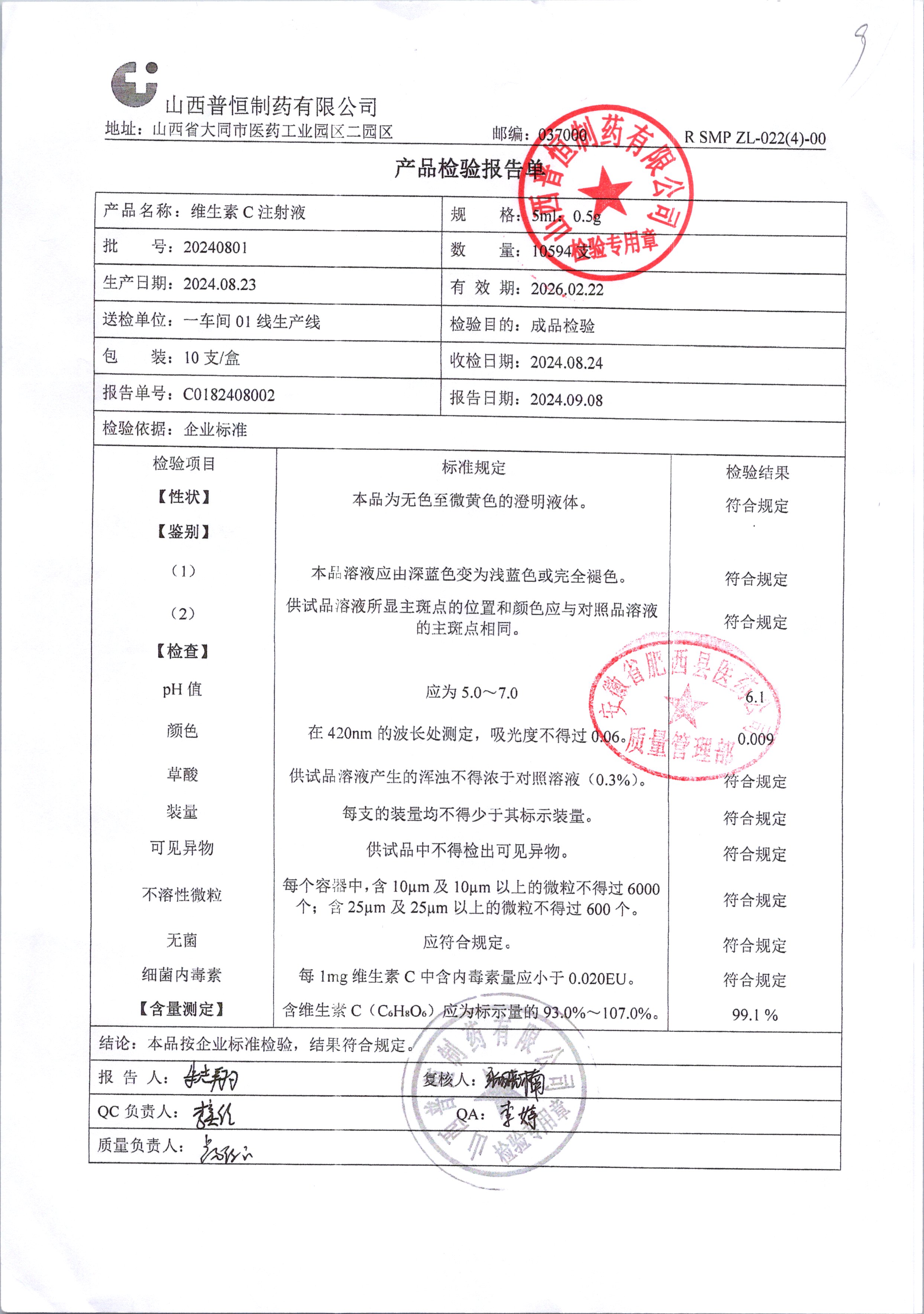 維生素C注射液 5ml:0.5g 20240801 查看詳情