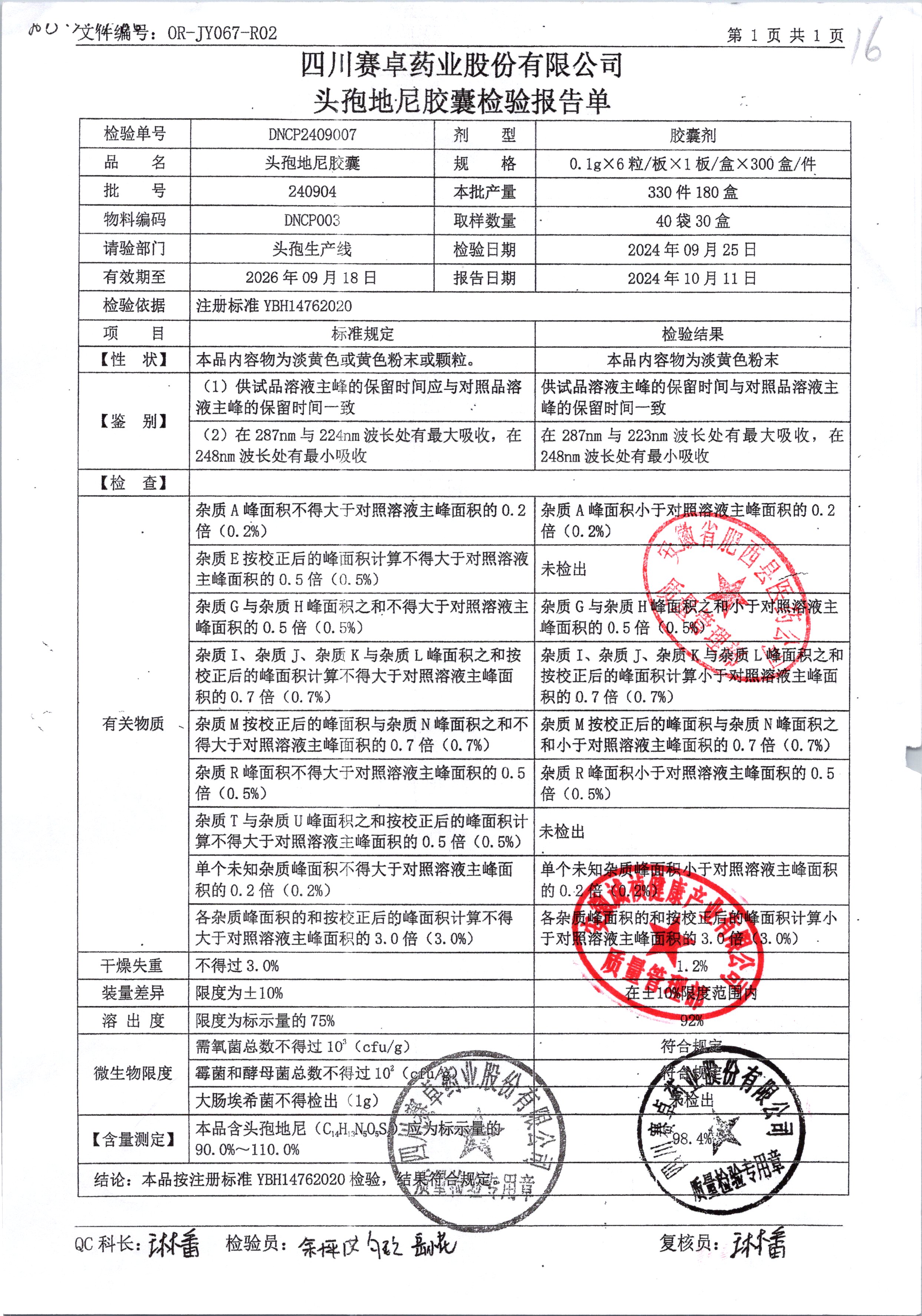 | 頭孢地尼膠囊 | 0.1g*6粒 | 240904 | 查看詳情 |