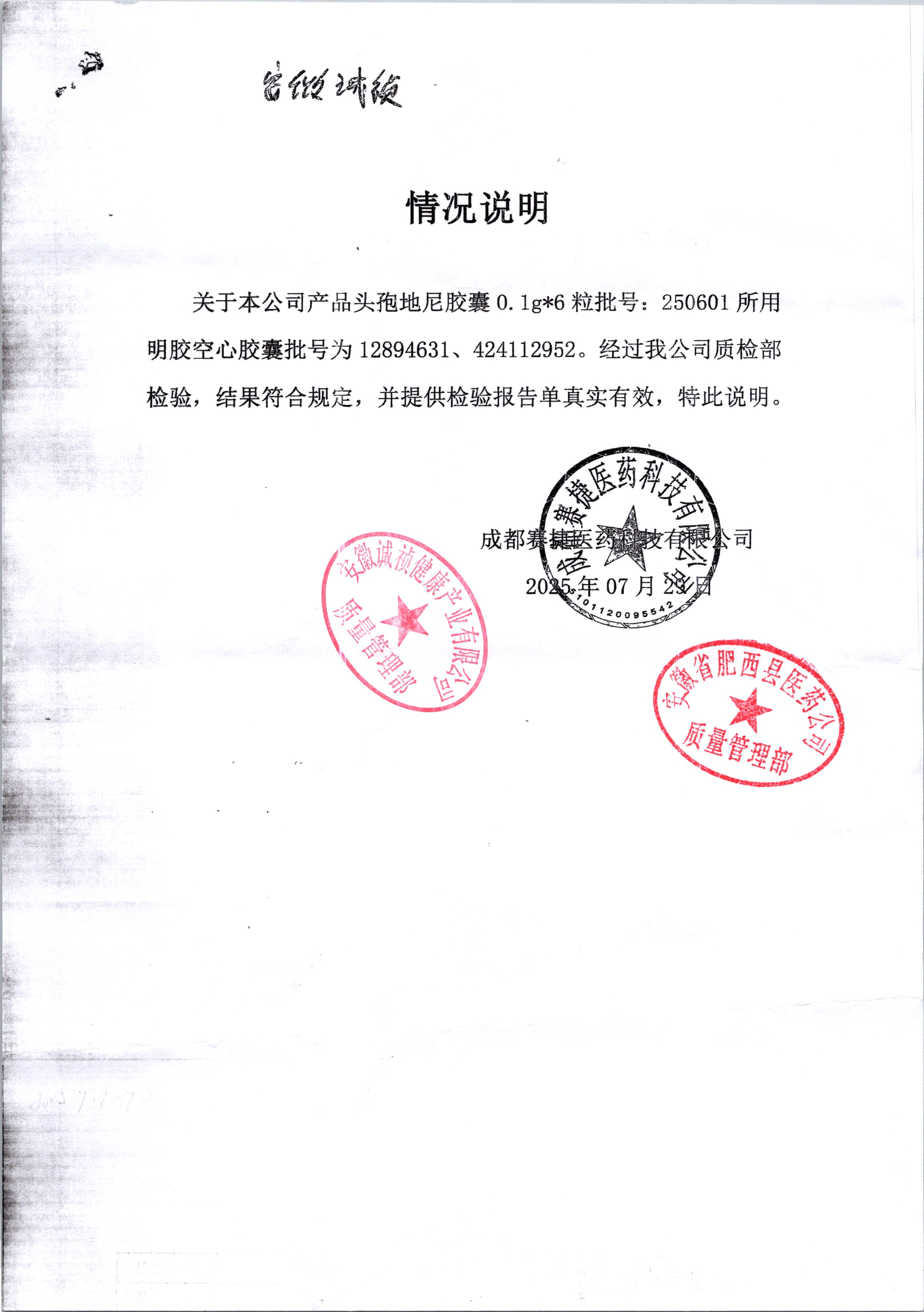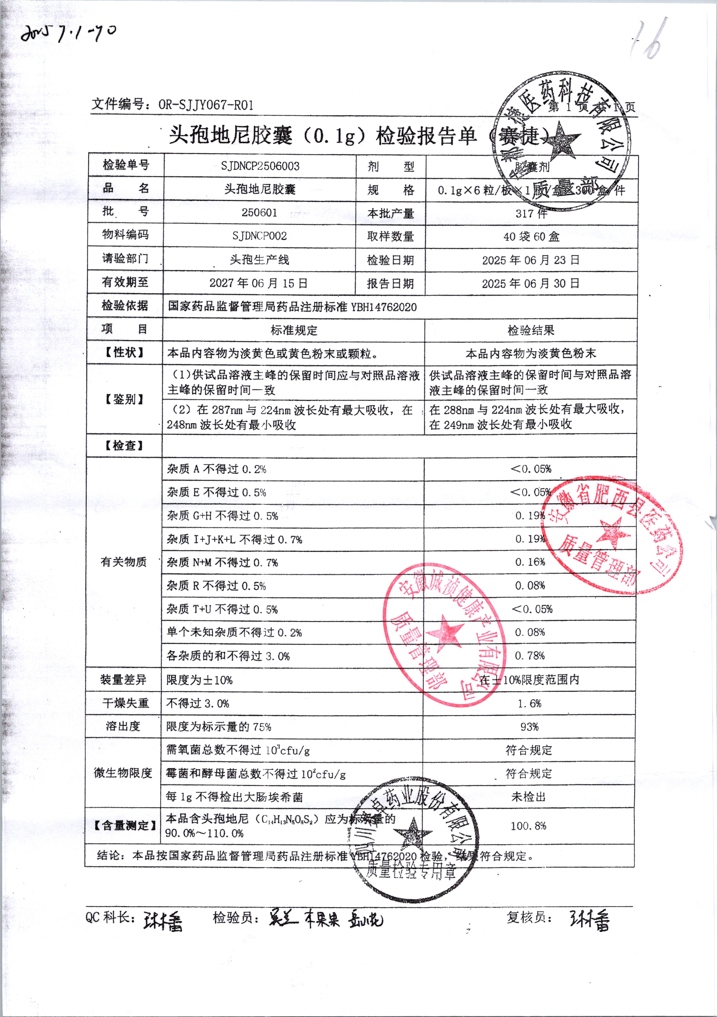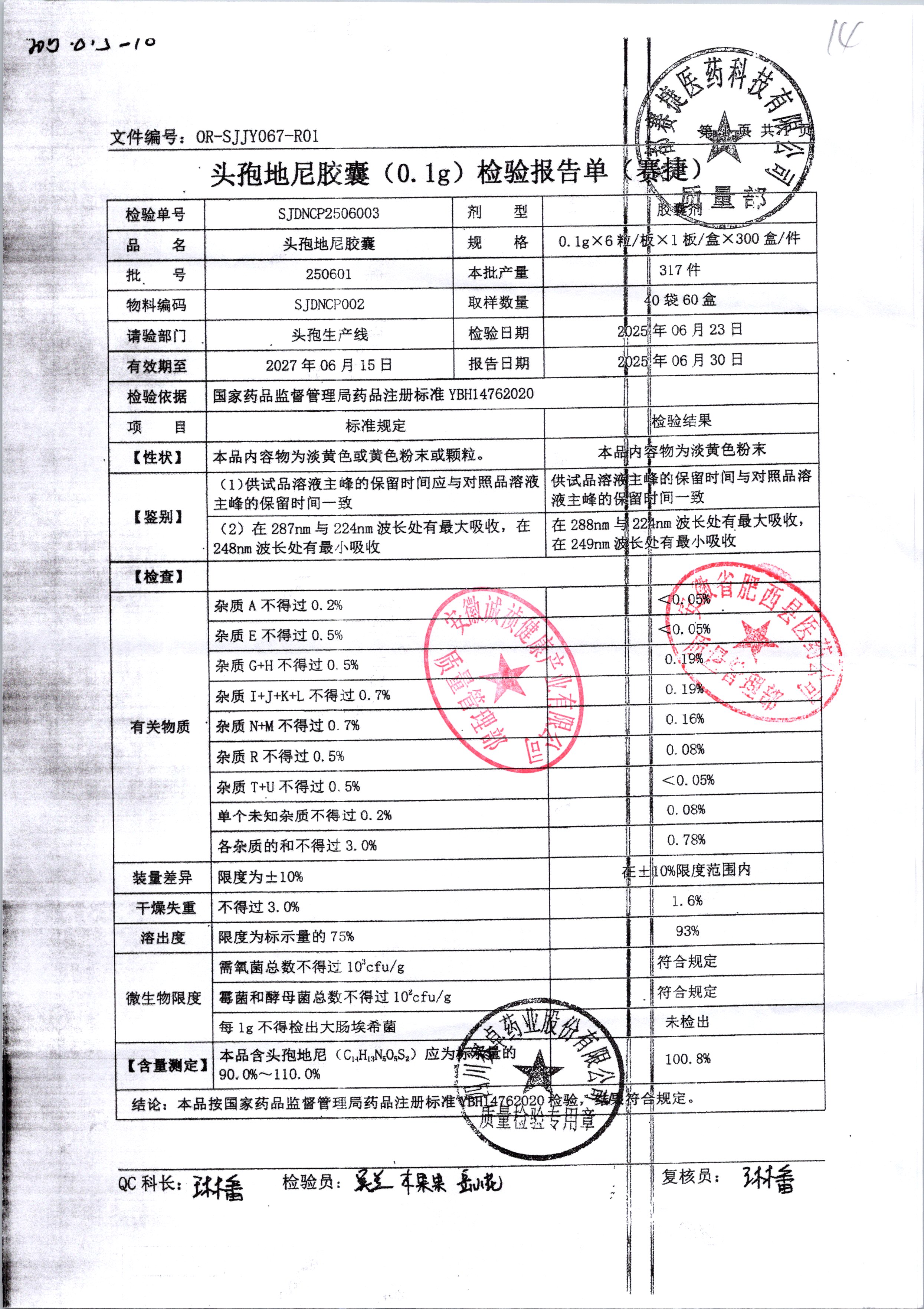 | 頭孢地尼膠囊 | 0.1g*6粒 | 250601/3 | 查看詳情 |