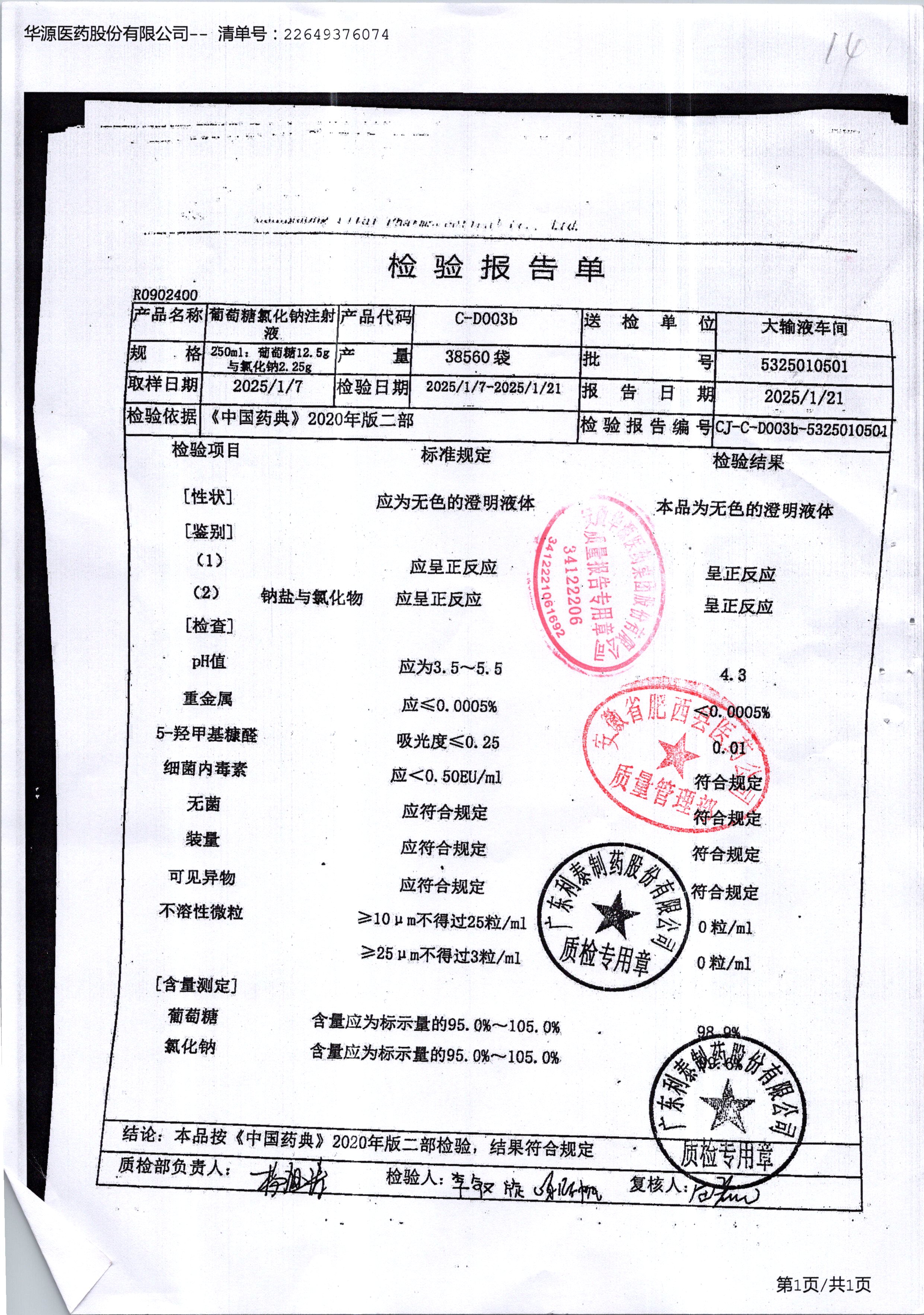 葡萄糖氯化鈉注射液 250ml 5325040816 查看詳情