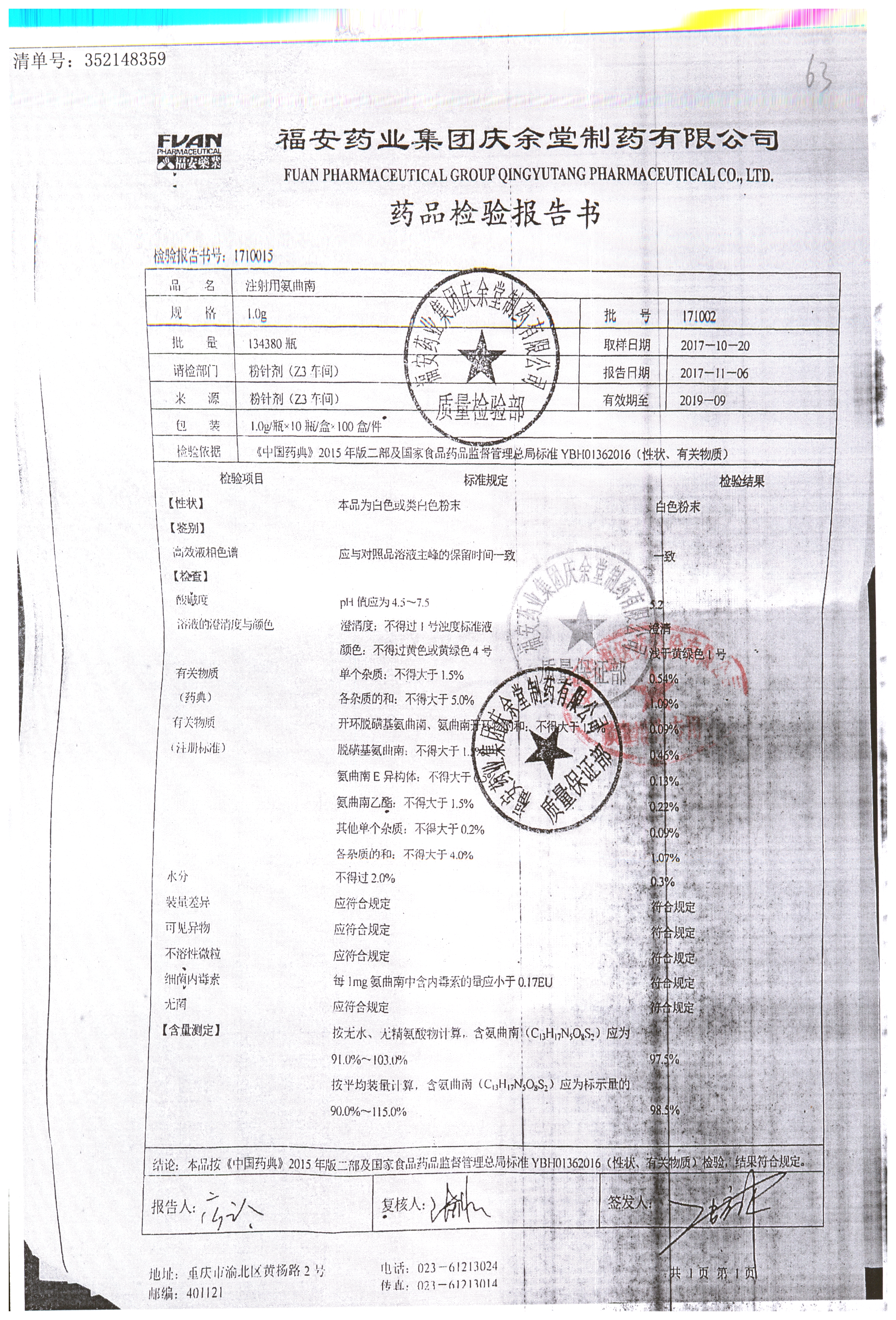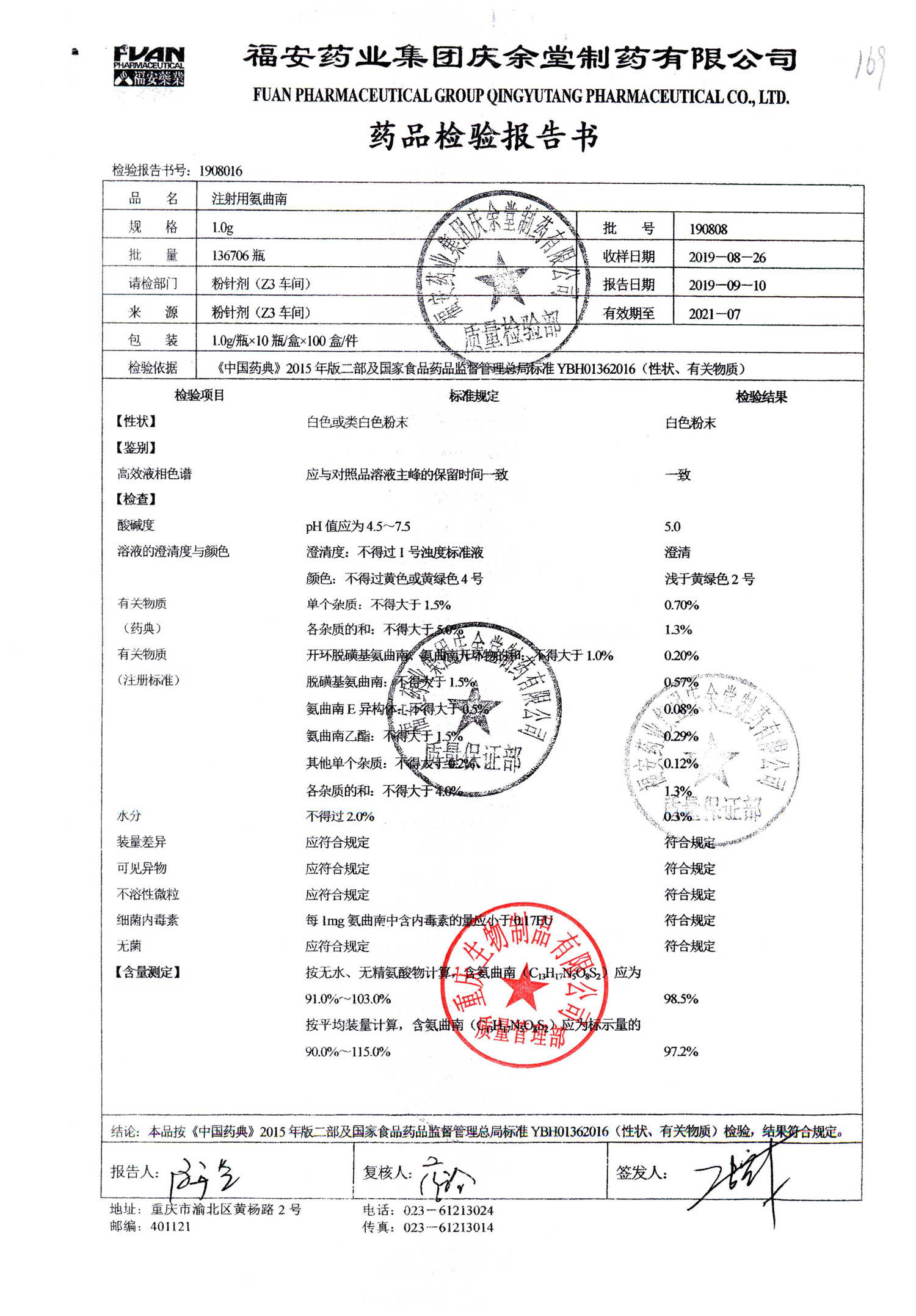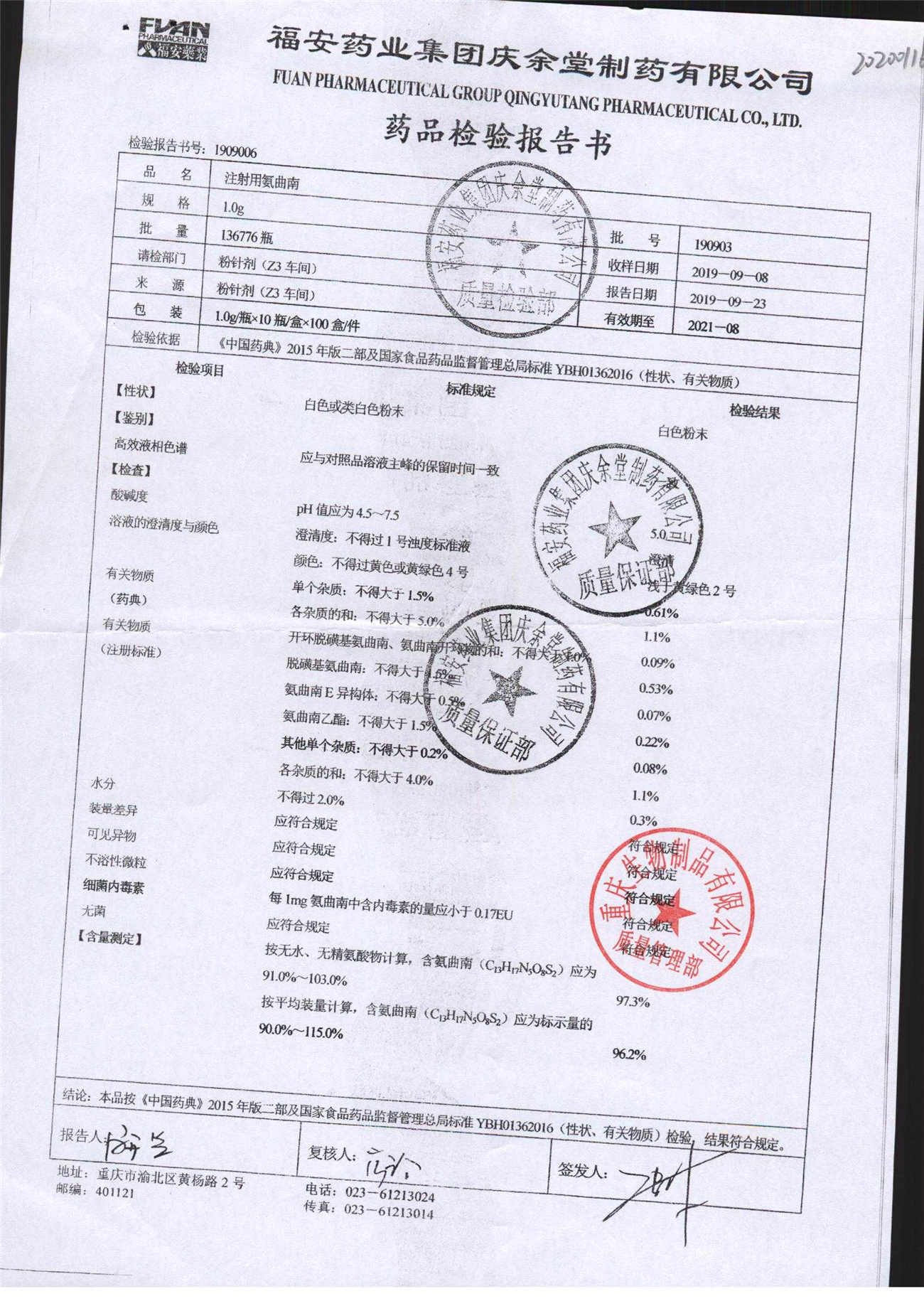 注射用氨曲南 | 1.0g | 190903 | 查看詳情 |