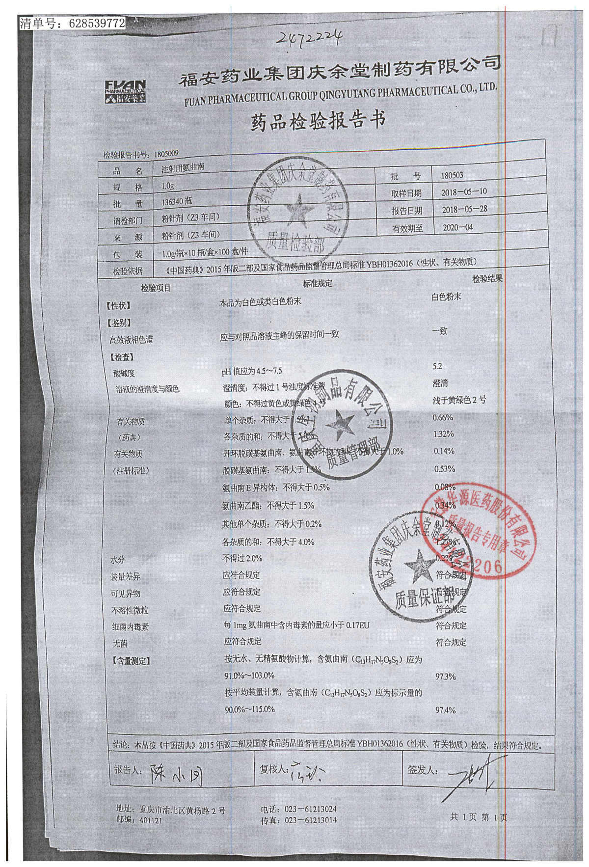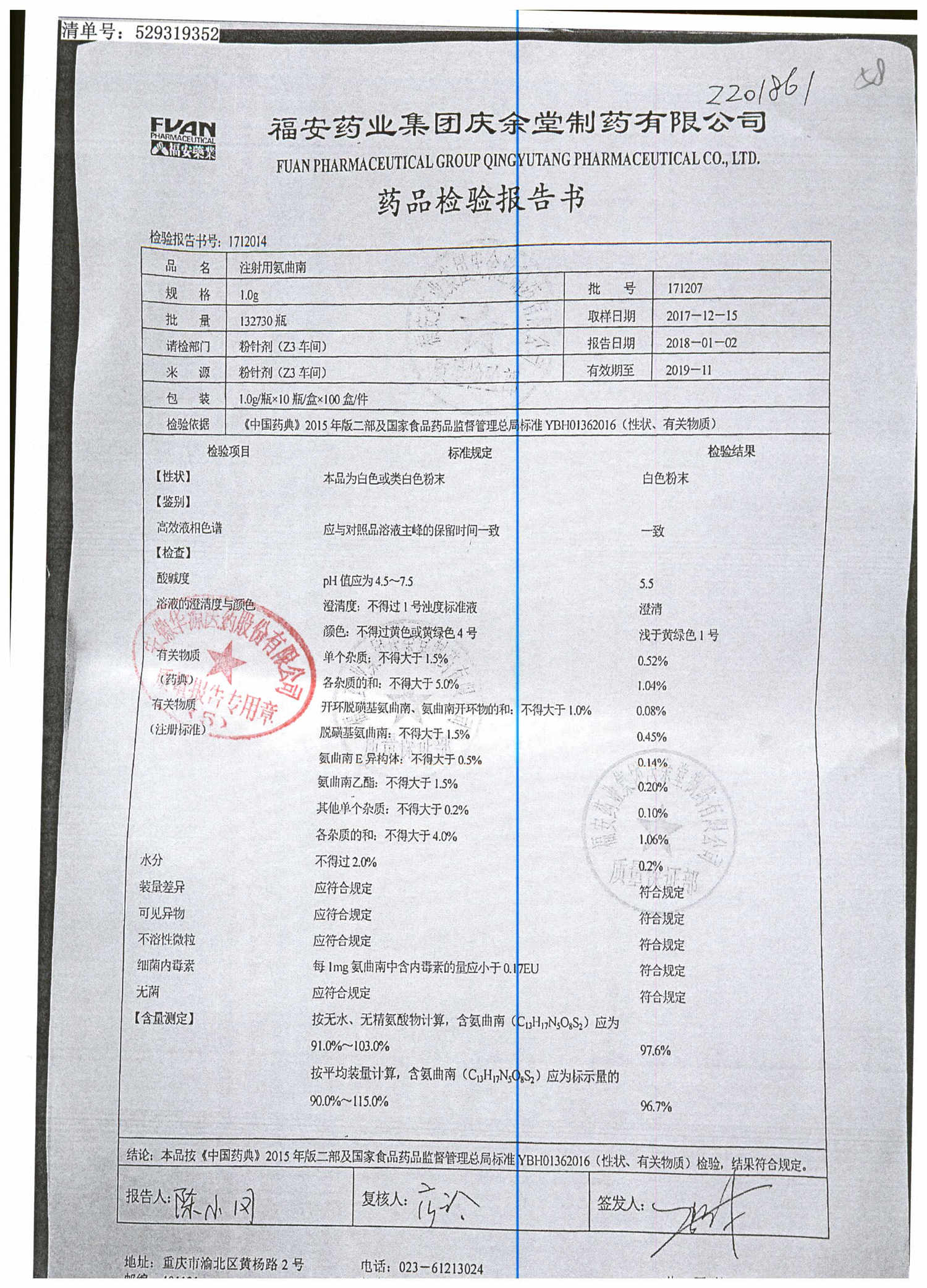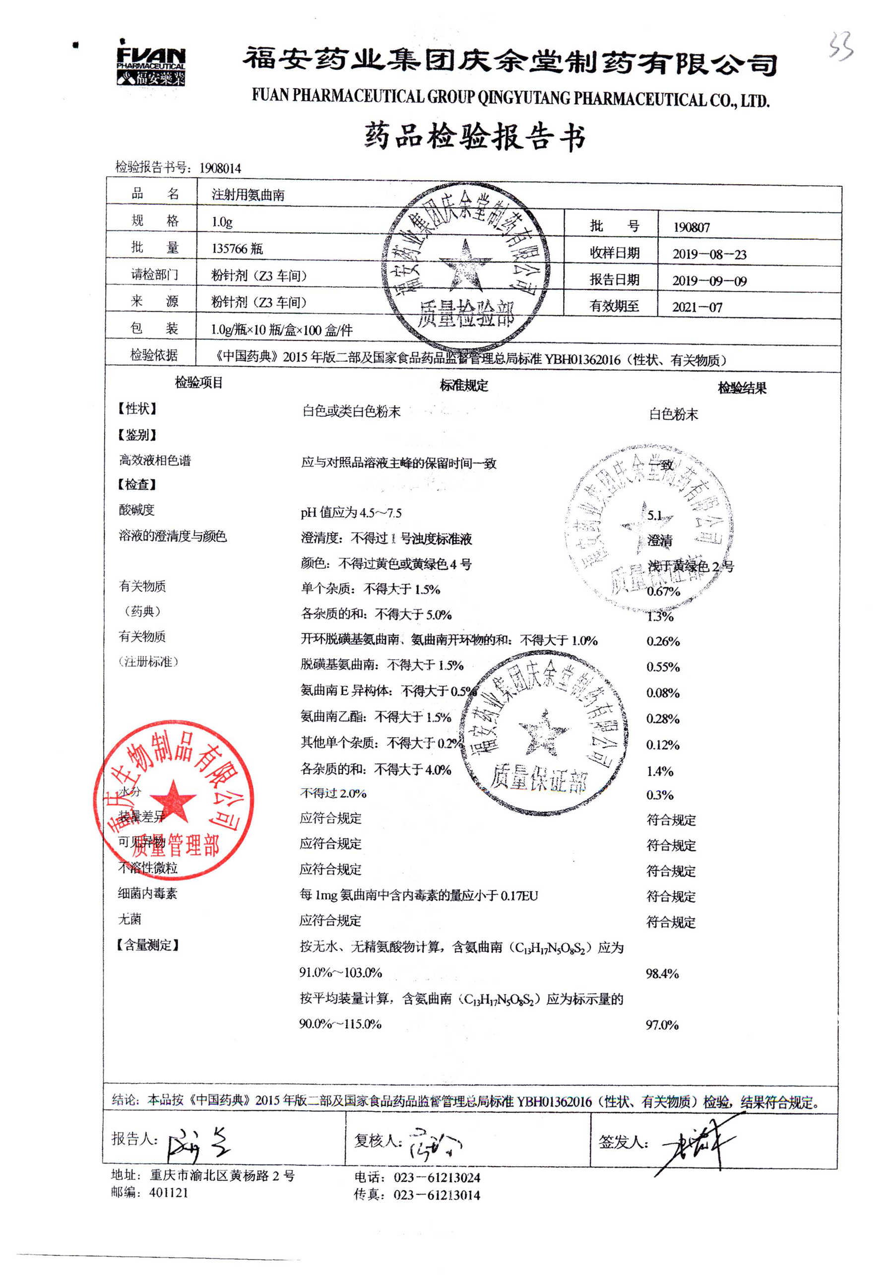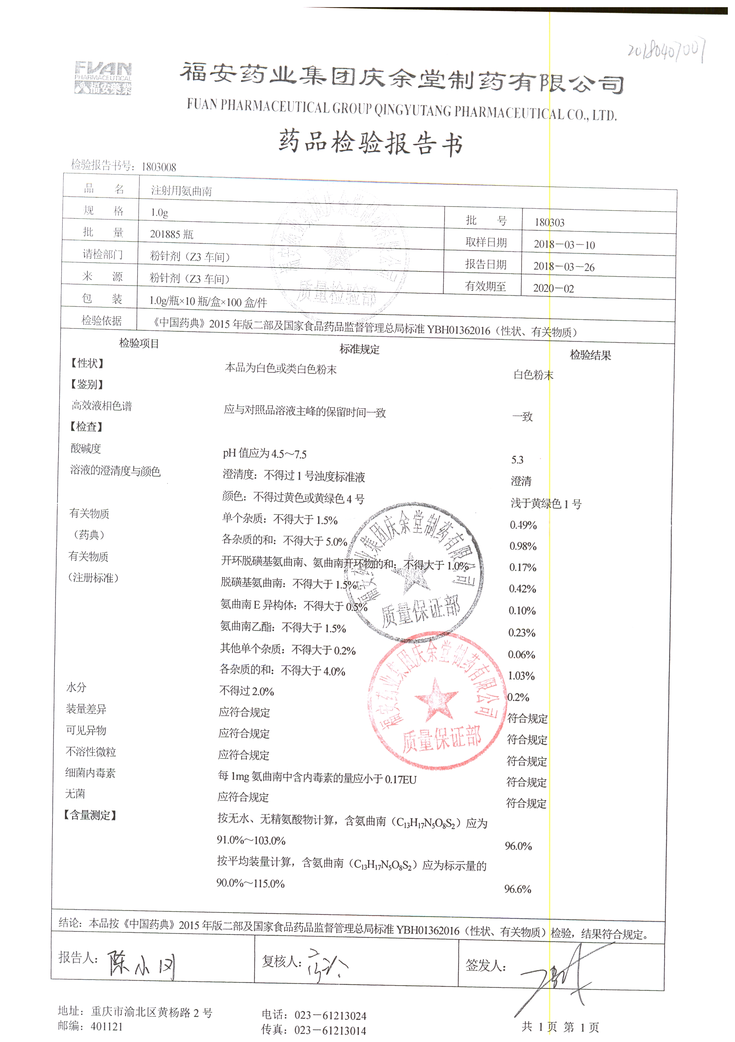 名稱 | 規(guī)格 | 批號 | 藥檢報告 |