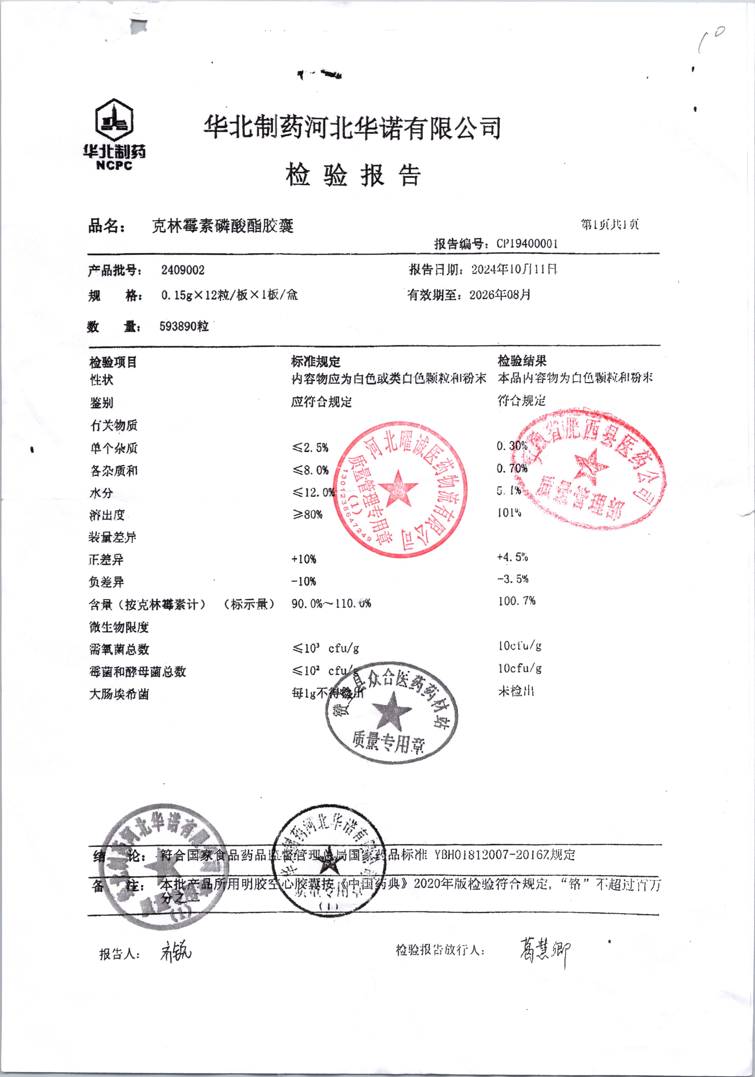 | 克林霉素磷酸酯膠囊 | 0.15G12粒 | 2409002 | 查看詳情 |