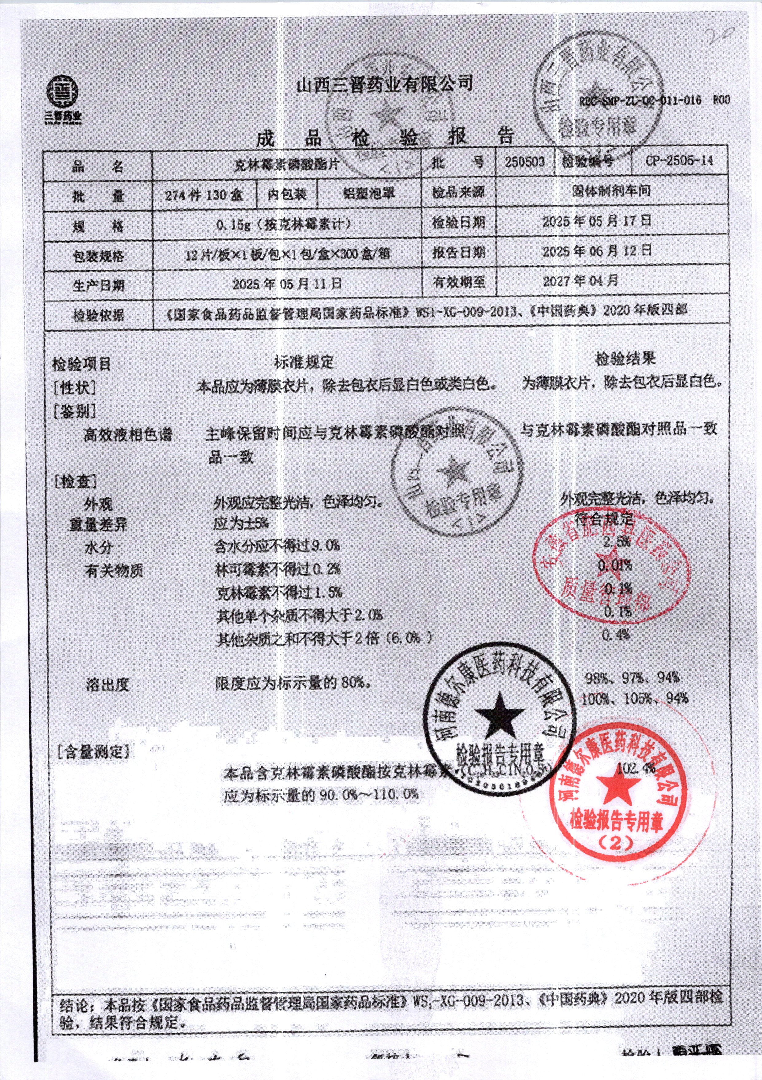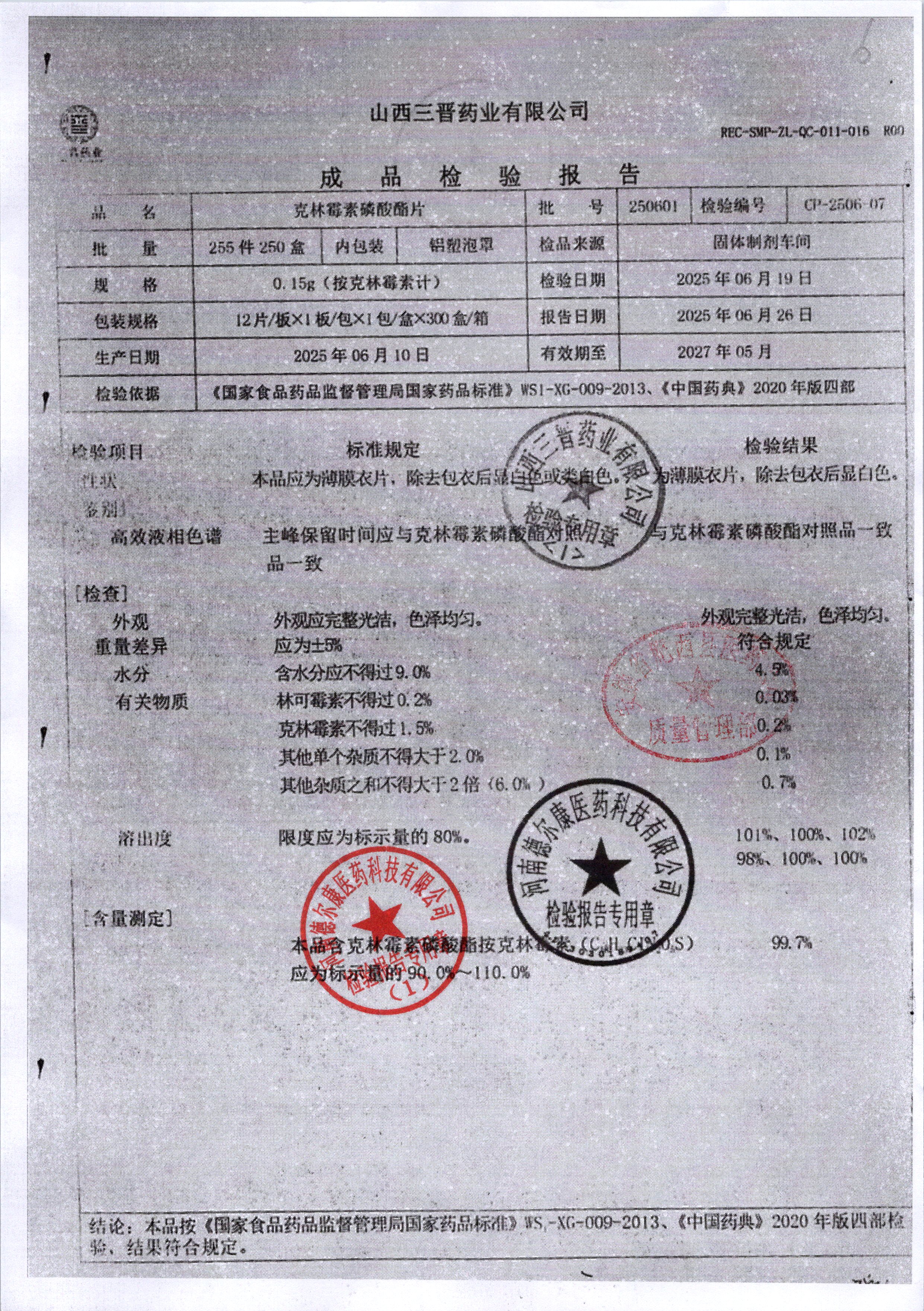 | 克林霉素磷酸酯片 | 0.15g*12片 | 250601 | 查看詳情 |