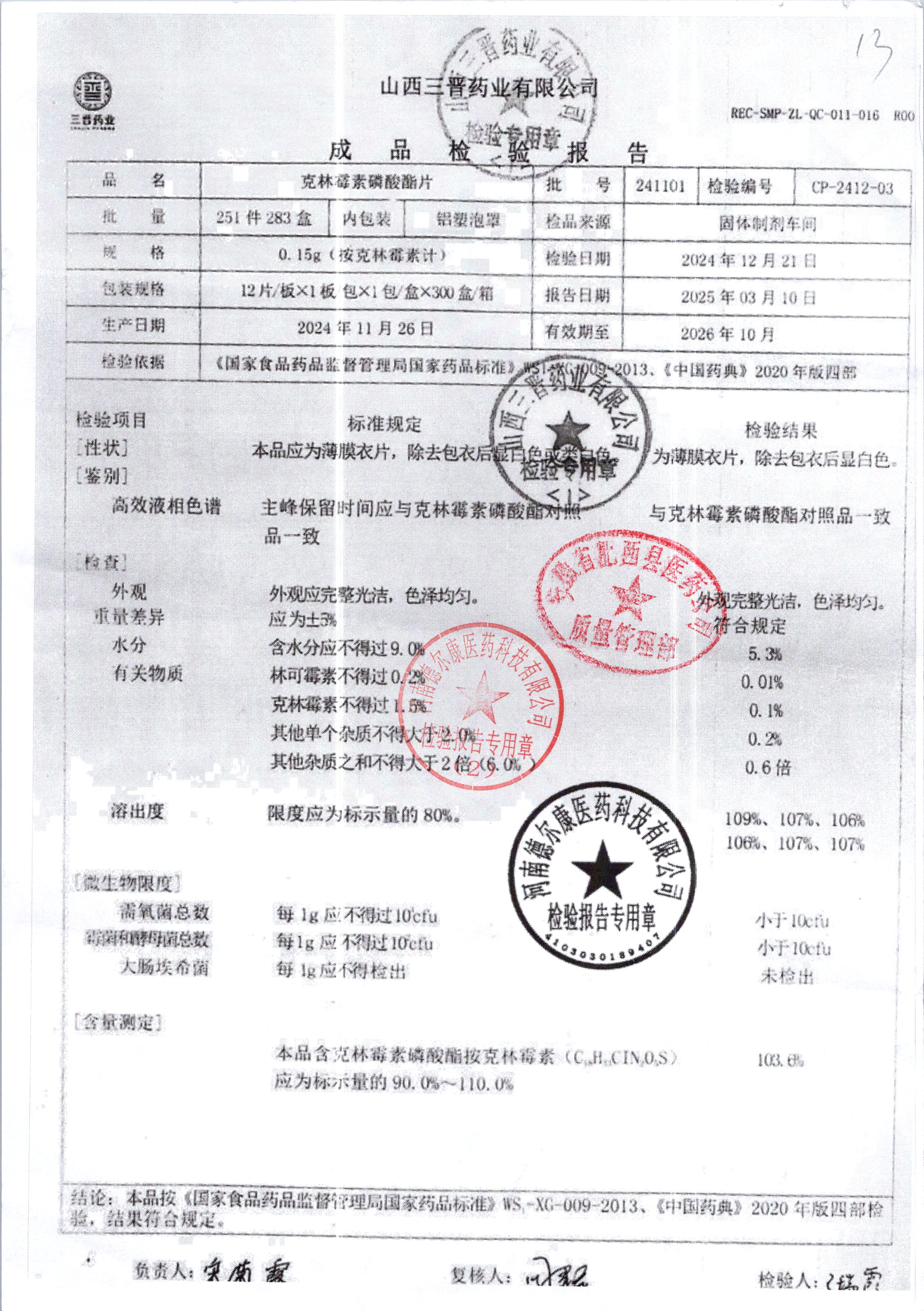 | 名稱 | 規(guī)格 | 批號(hào) | 藥檢報(bào)告 |