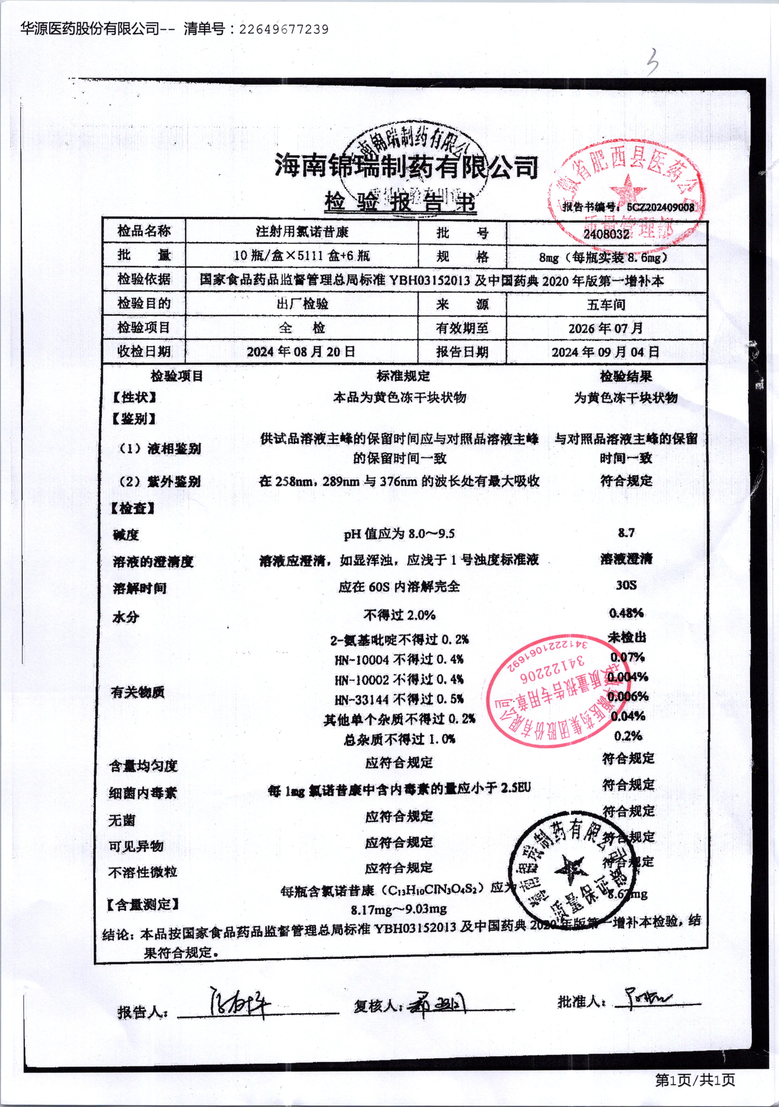 名稱 規(guī)格 批號 藥檢報告