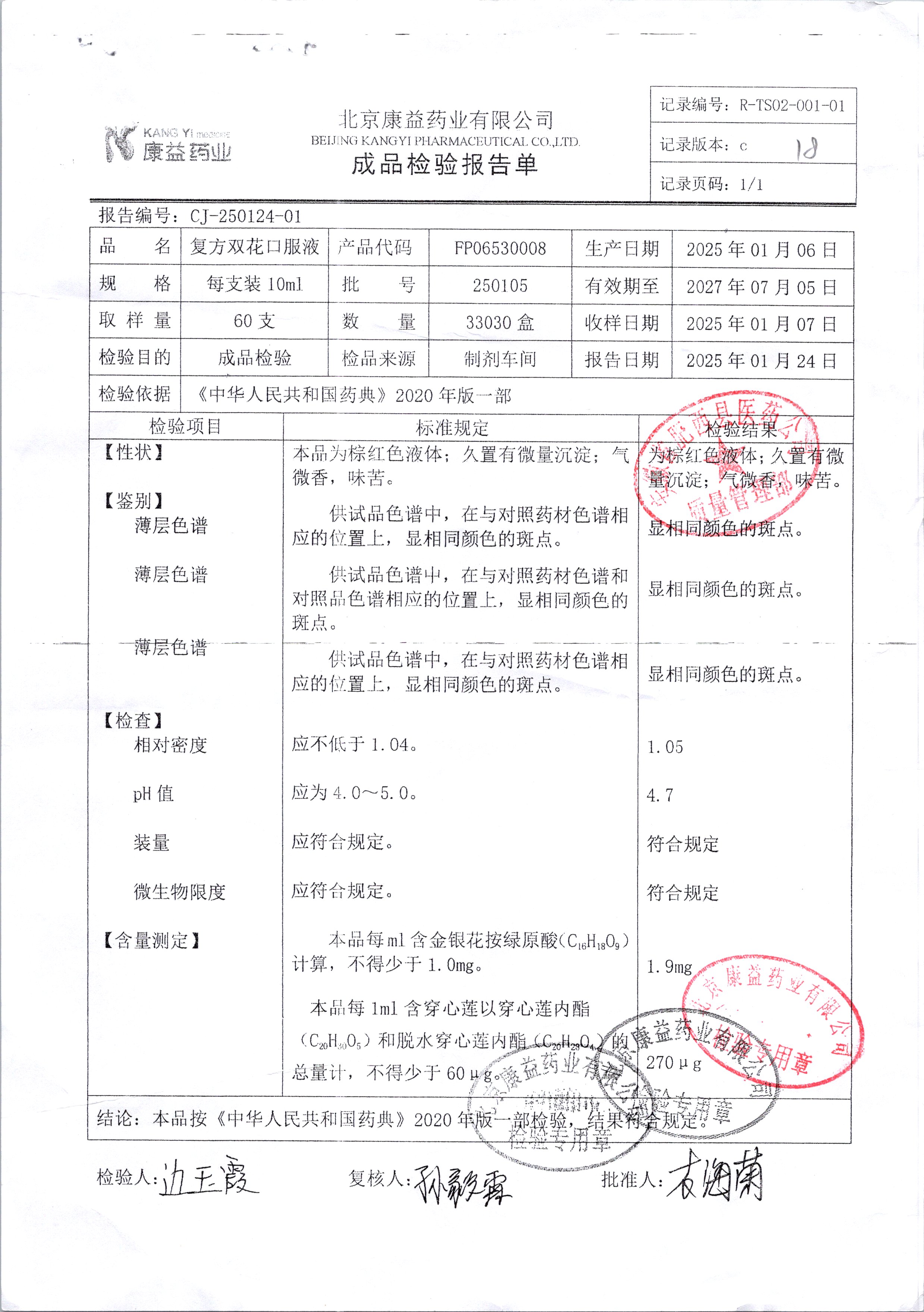 復(fù)方雙花口服液 10ml 250105 查看詳情