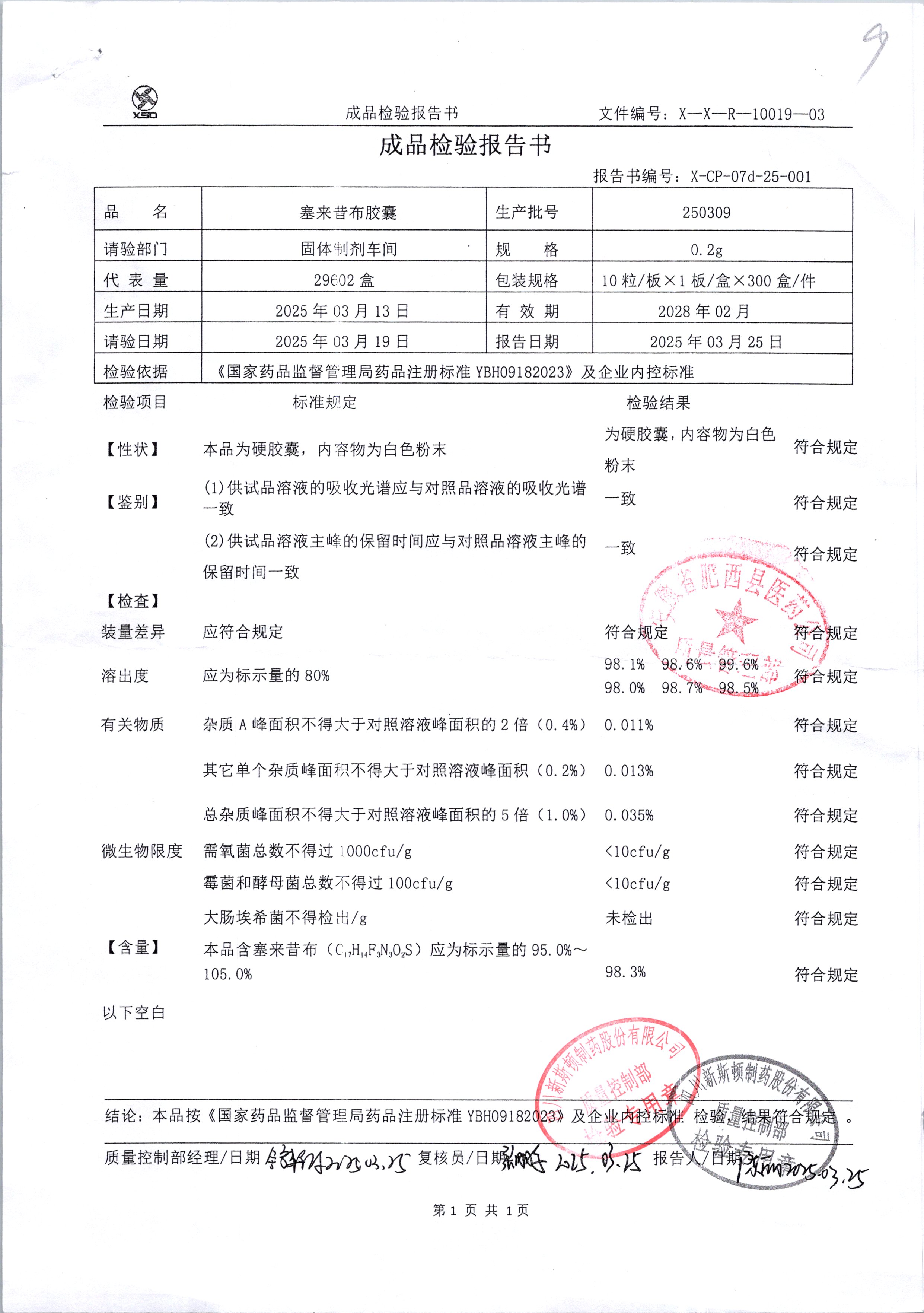 塞來昔布膠囊 0.2g*10s 250309 查看詳情