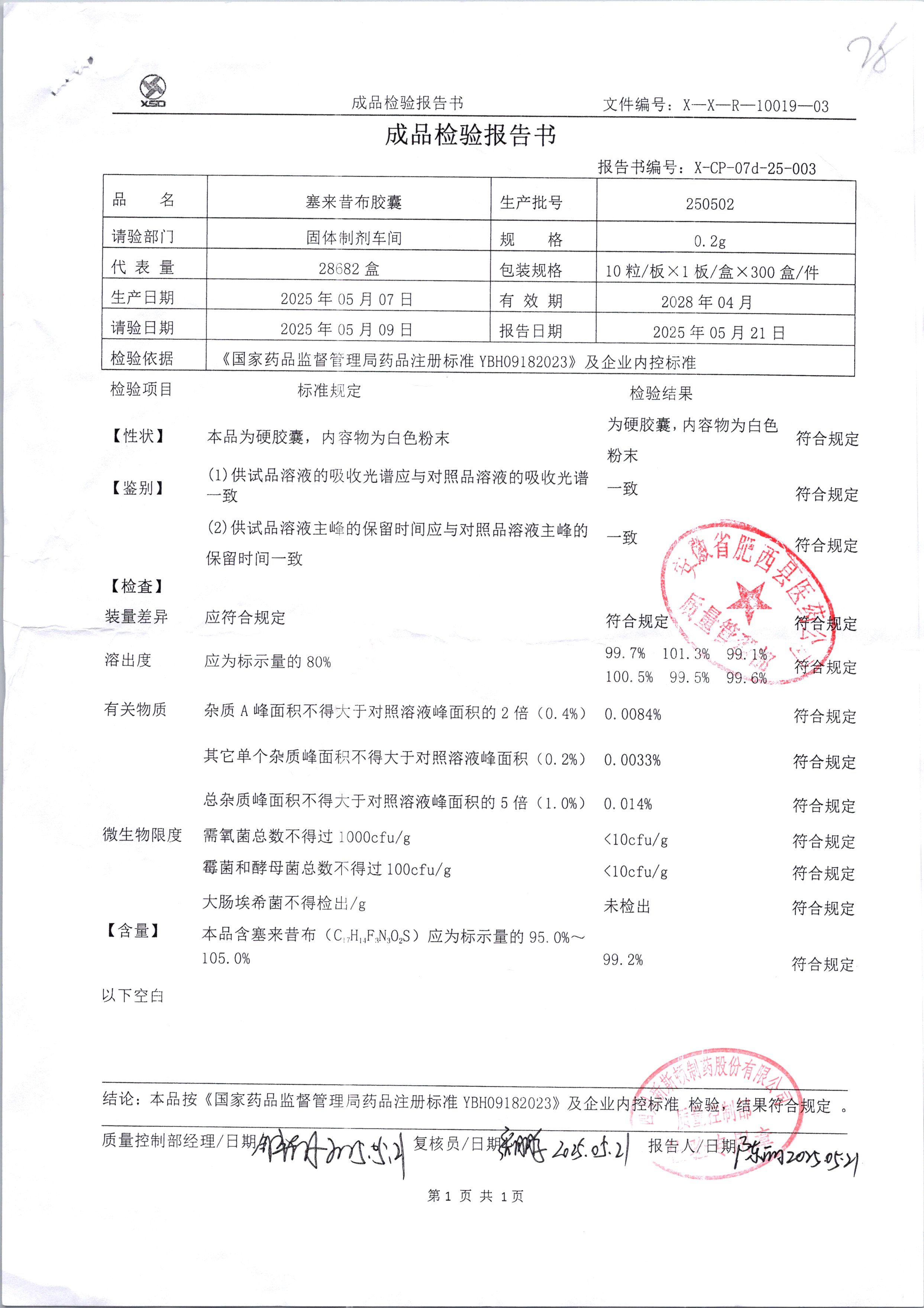 塞來昔布膠囊 0.2g*10s 250501 查看詳情
