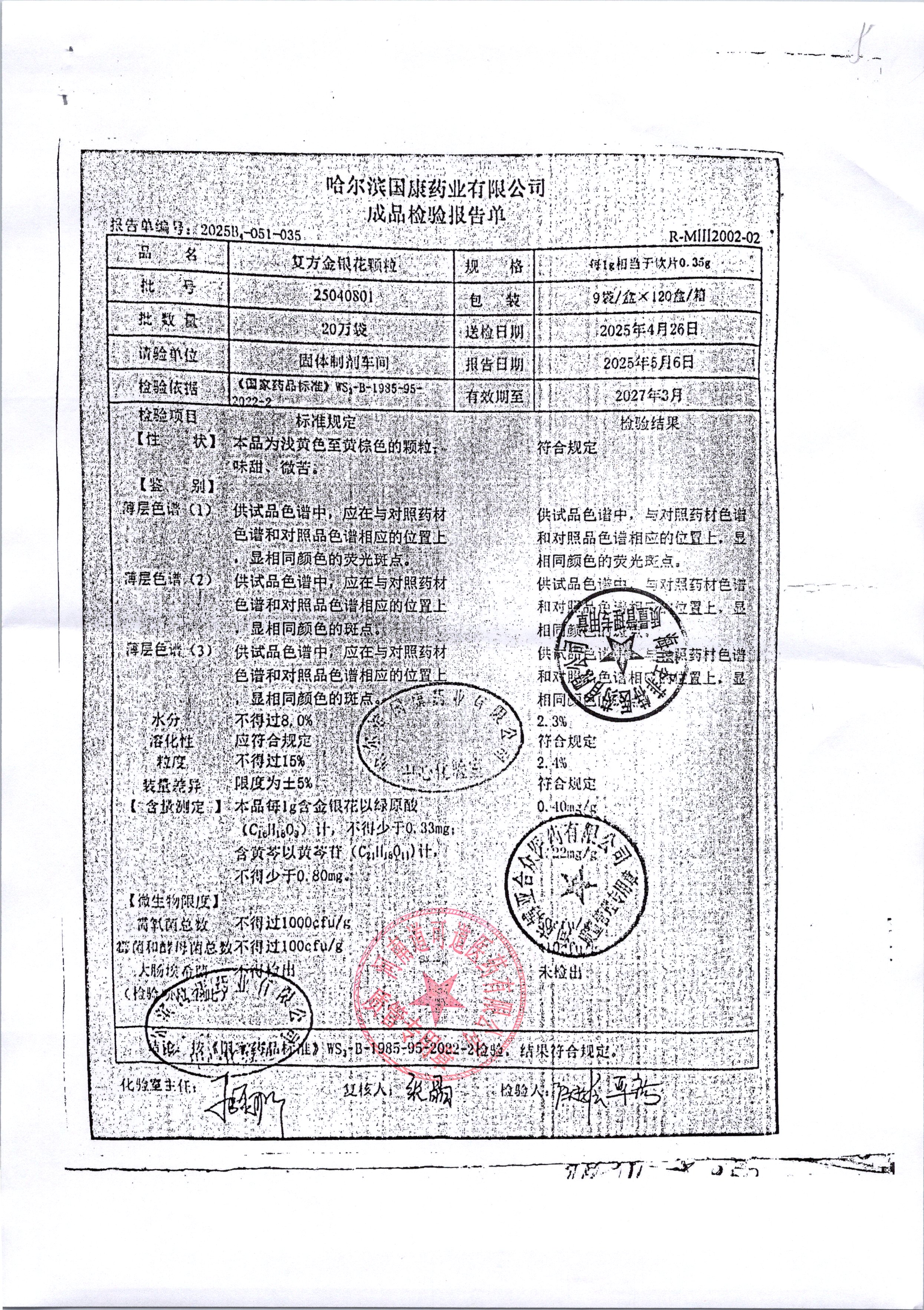 | 復(fù)方金銀花顆粒 | 0.35g*20粒 | 25040801 | 查看詳情 |