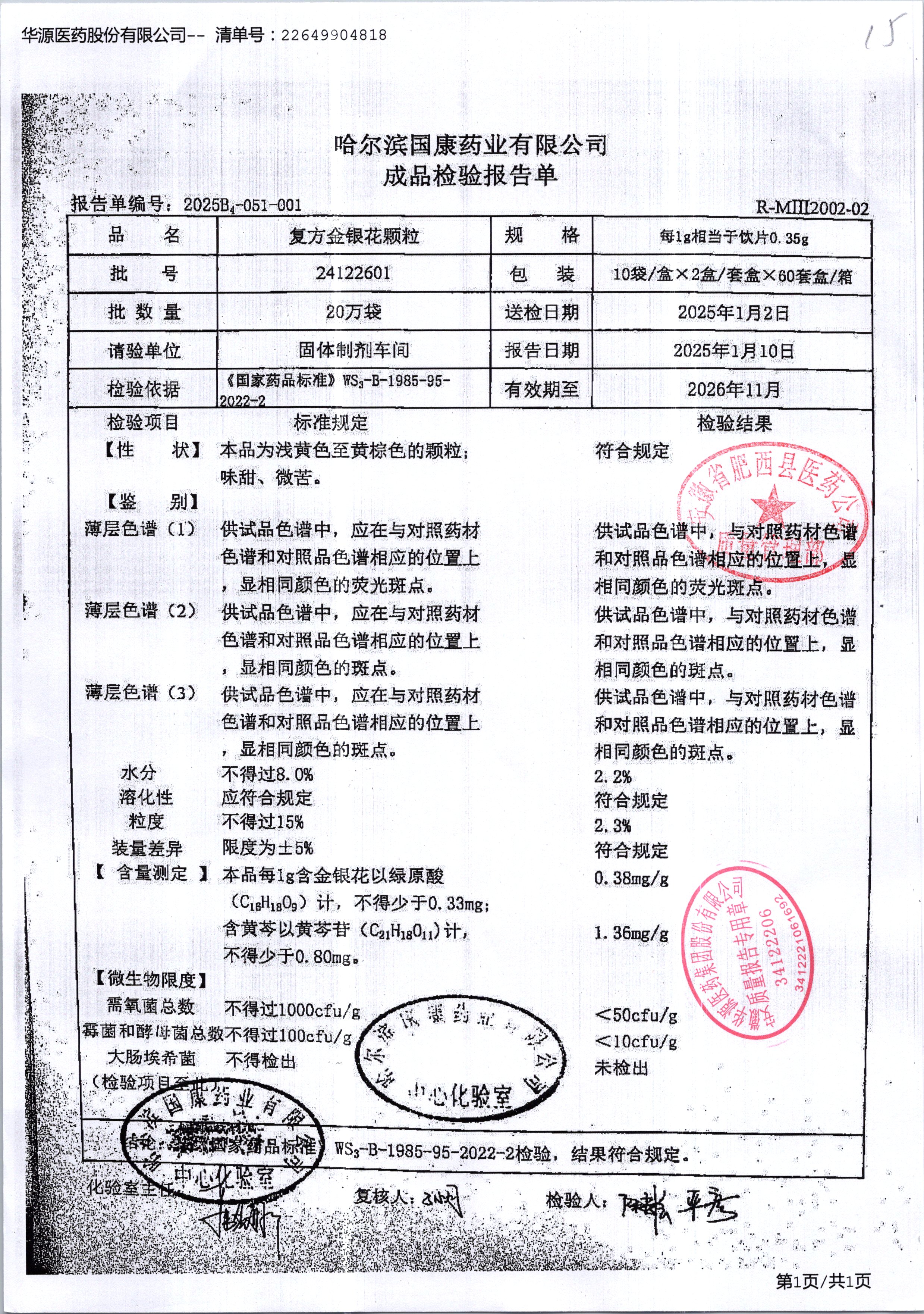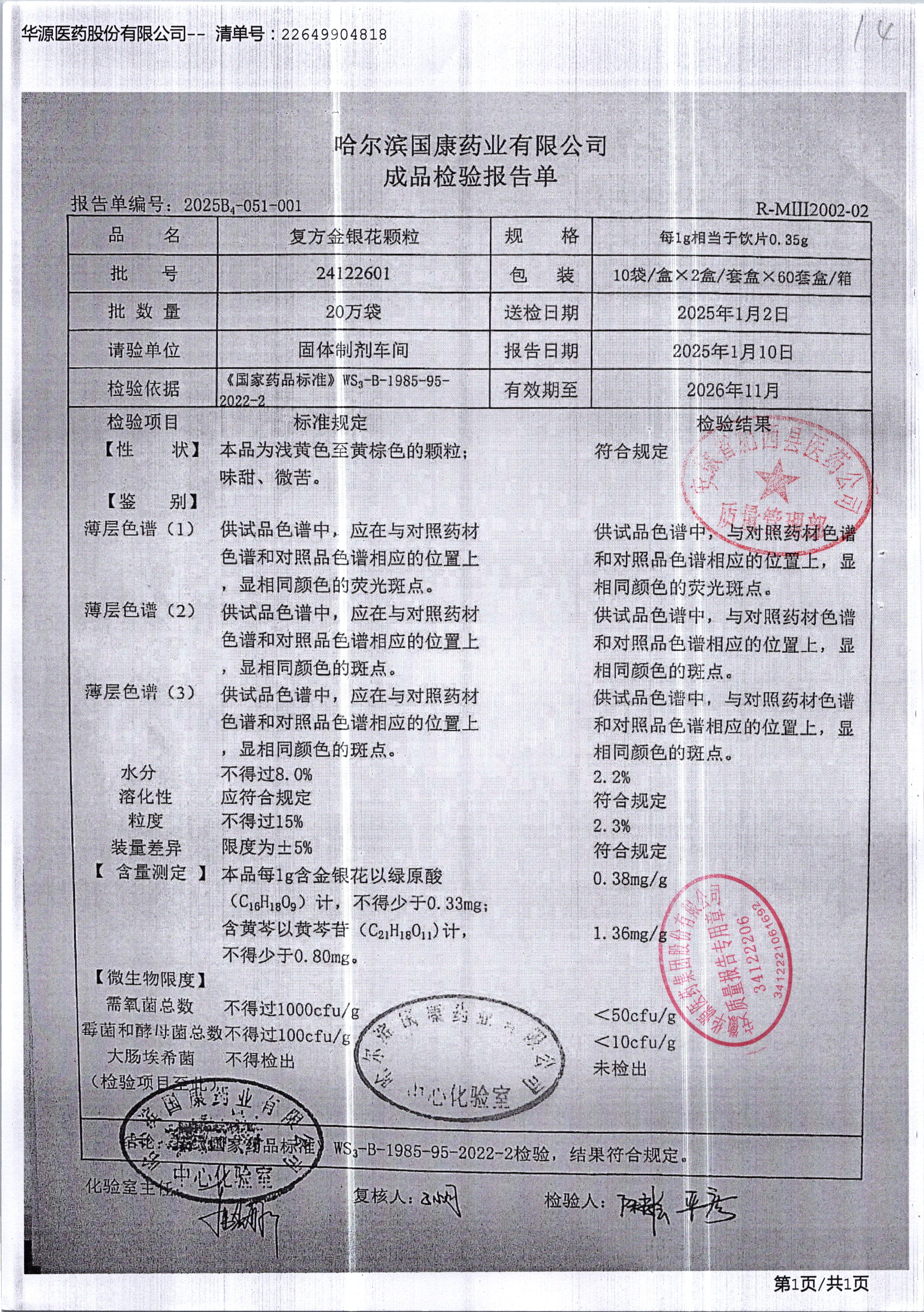 | 復(fù)方金銀花顆粒 | 0.35g*20粒 | 24122601 | 查看詳情 |