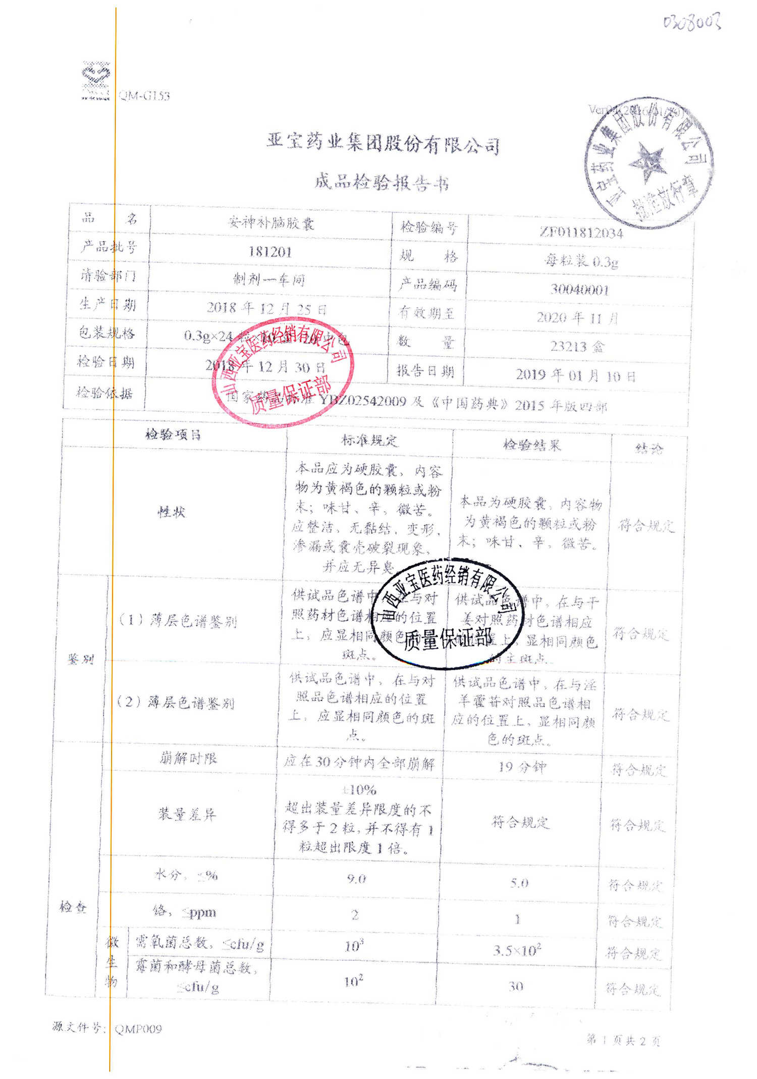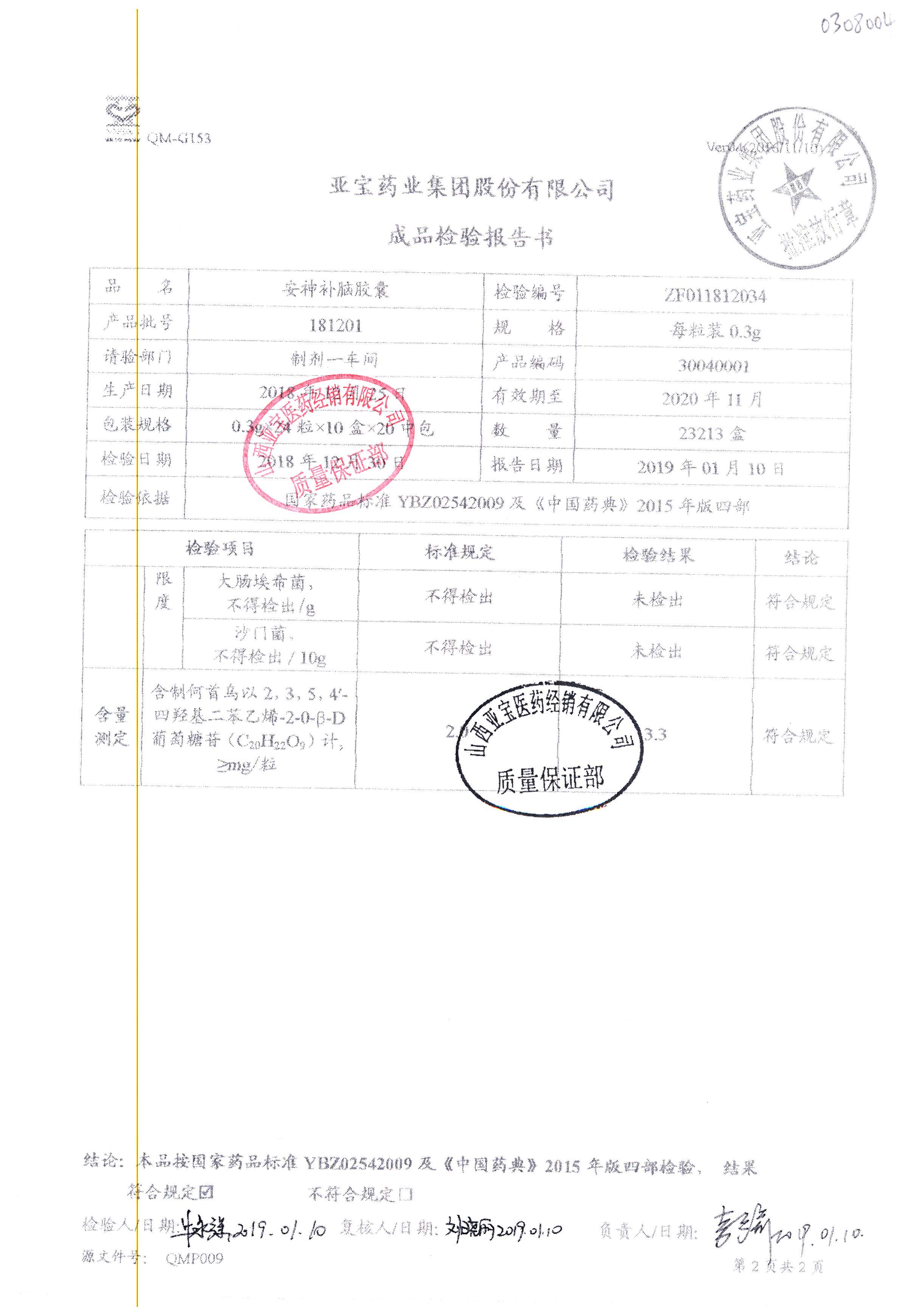 安神補(bǔ)腦膠囊 0.3g*24s 181201(1/2) 查看詳情