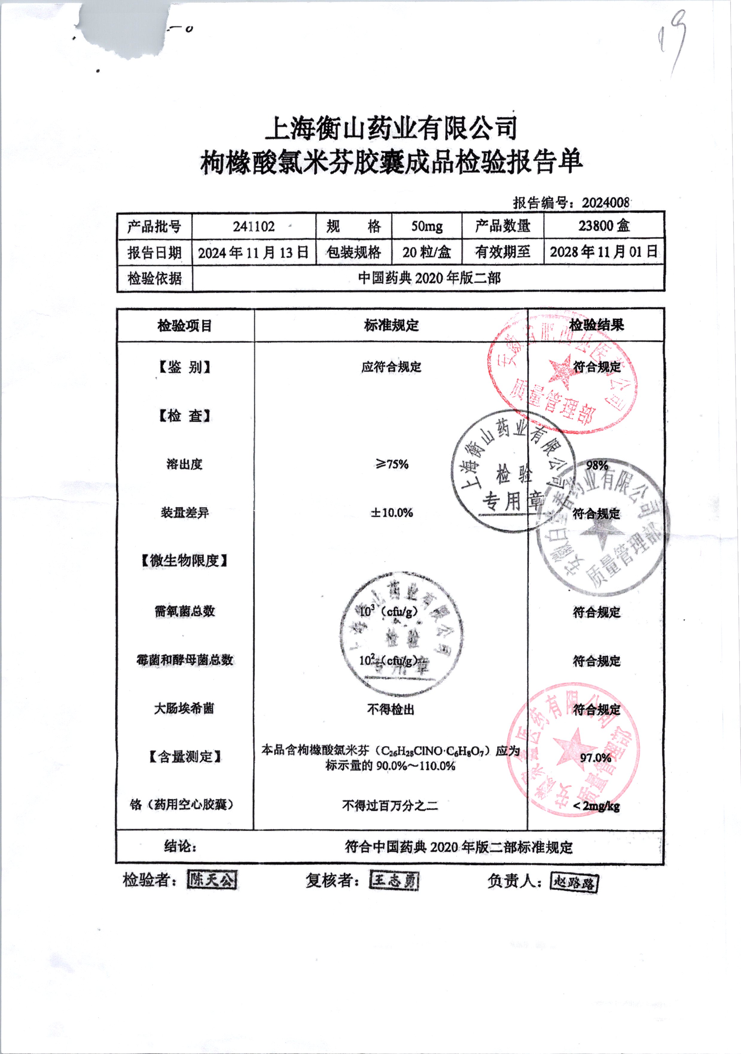 枸櫞酸氯米芬膠囊 50mg 241102 查看詳情