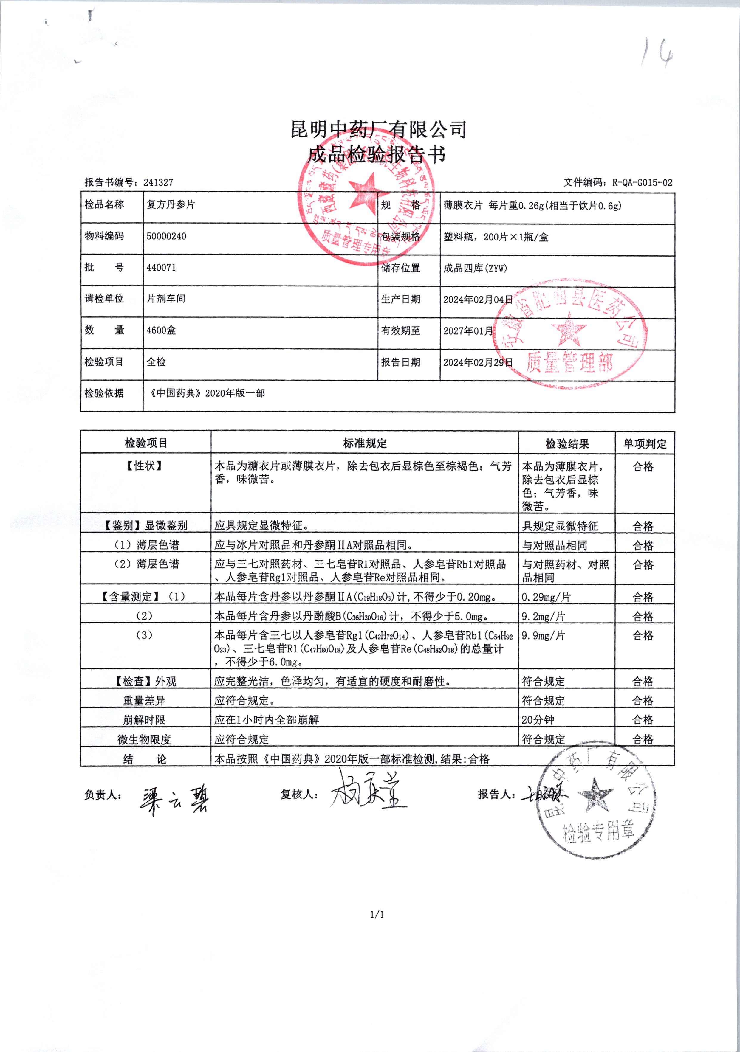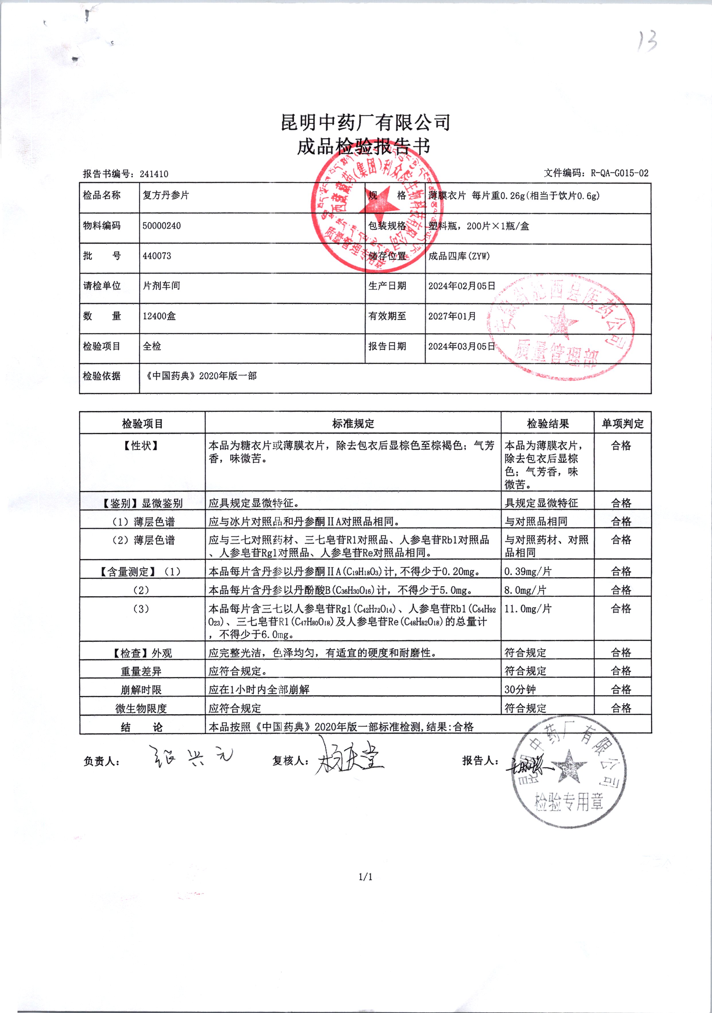 | 復(fù)方丹參片 | 0.26g | 440071 | 查看詳情 |