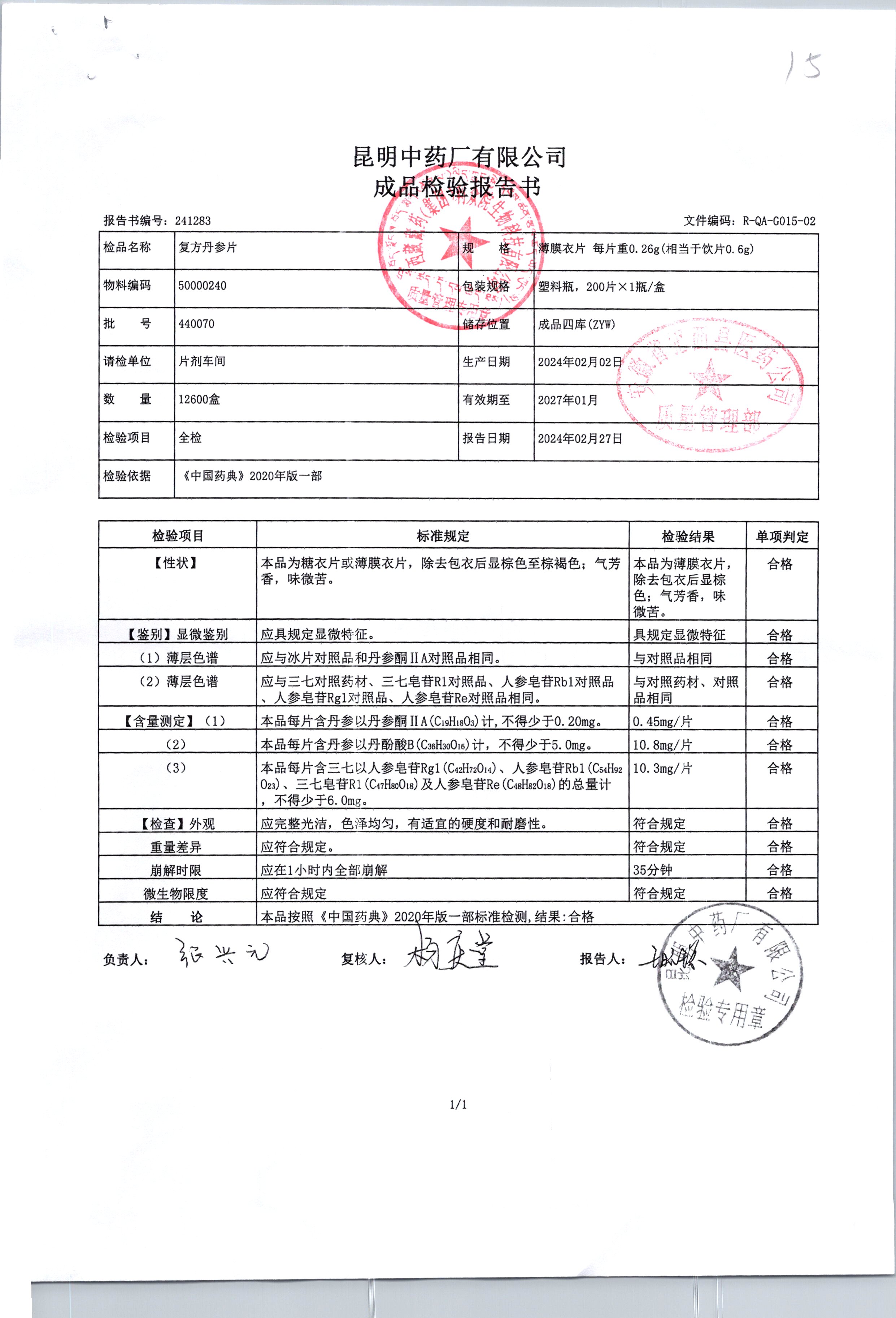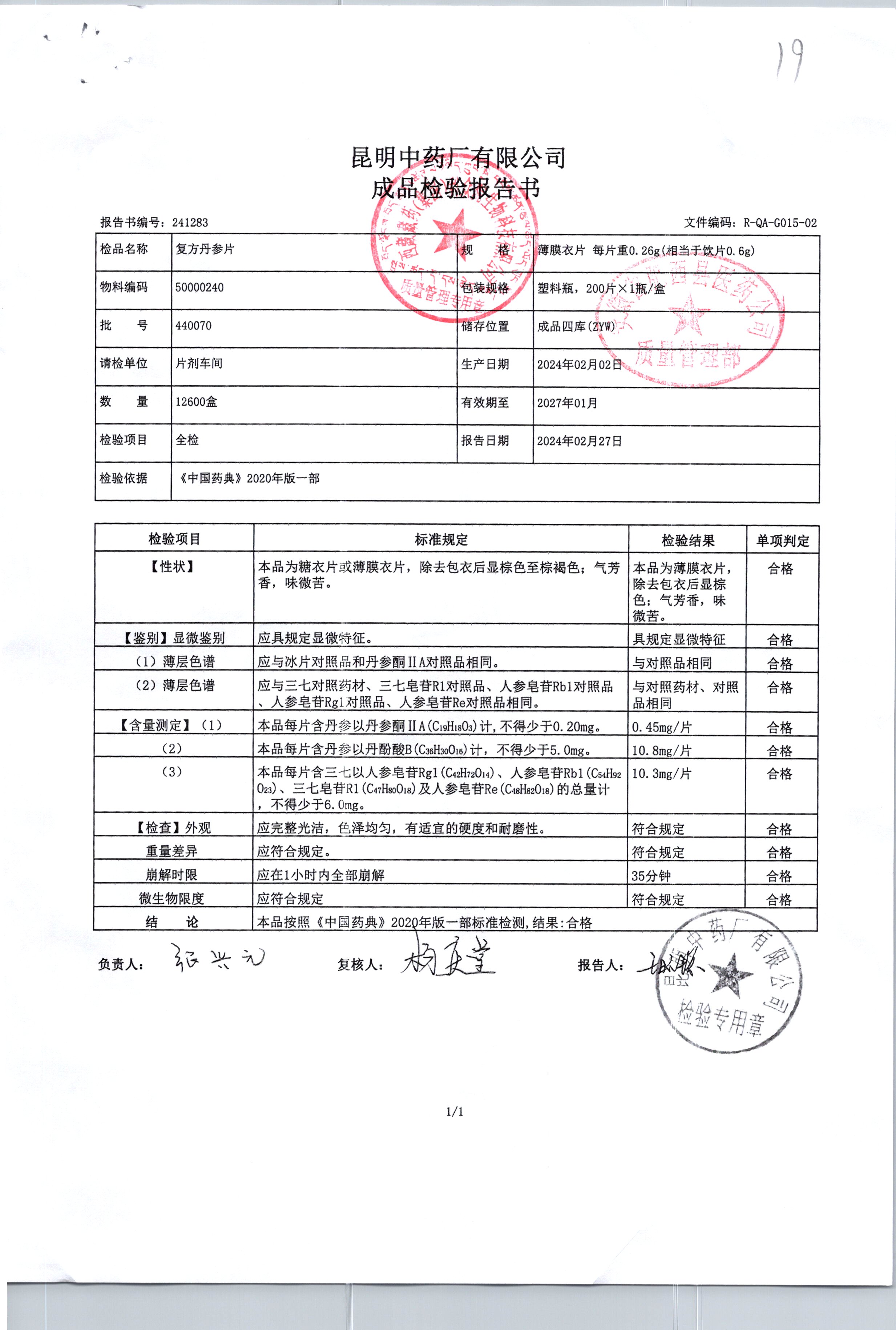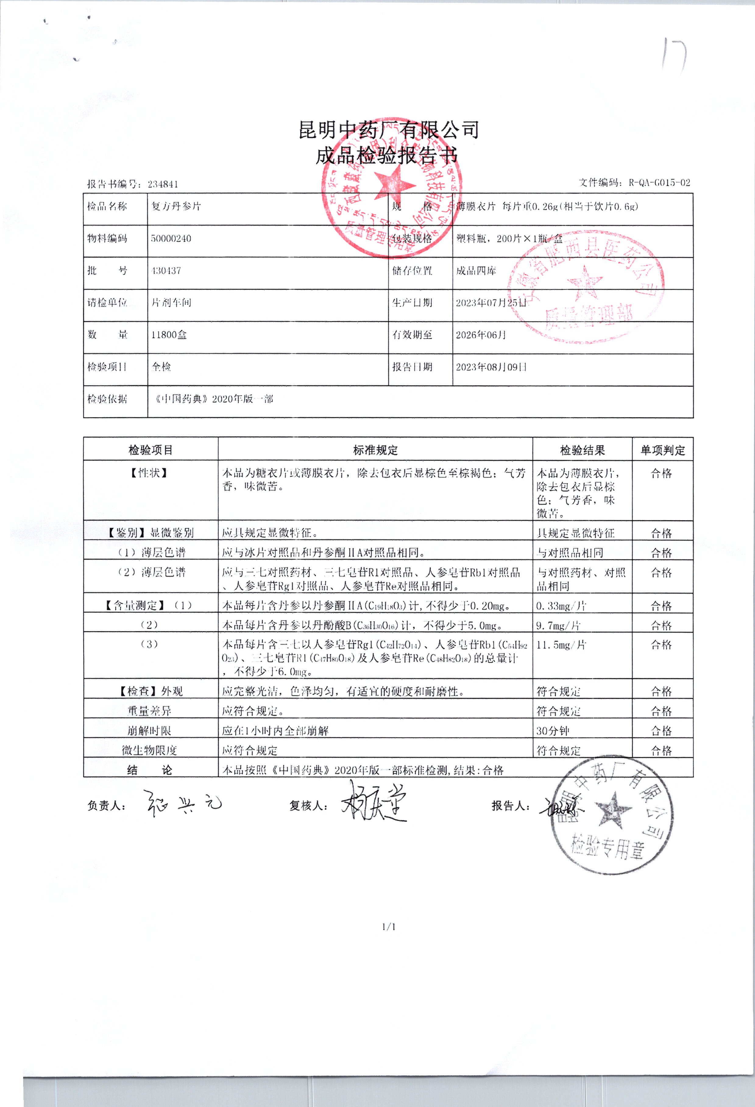 | 復(fù)方丹參片 | 0.26g | 430438 | 查看詳情 |