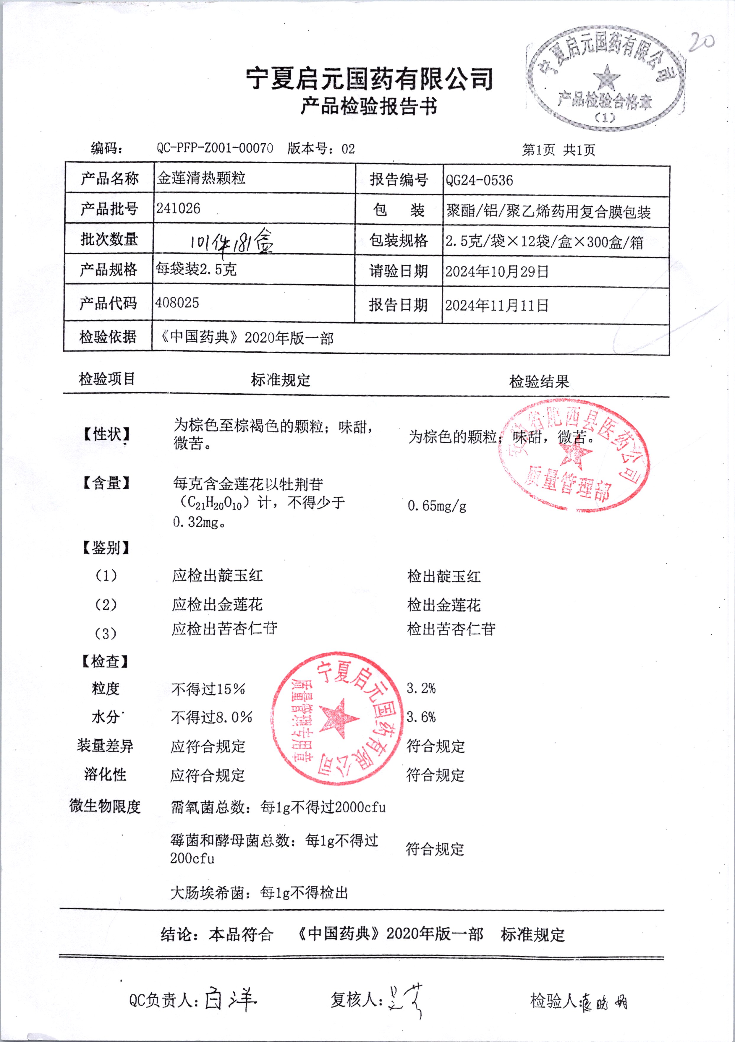 金蓮清熱顆粒 2.5g*12袋 241015 查看詳情