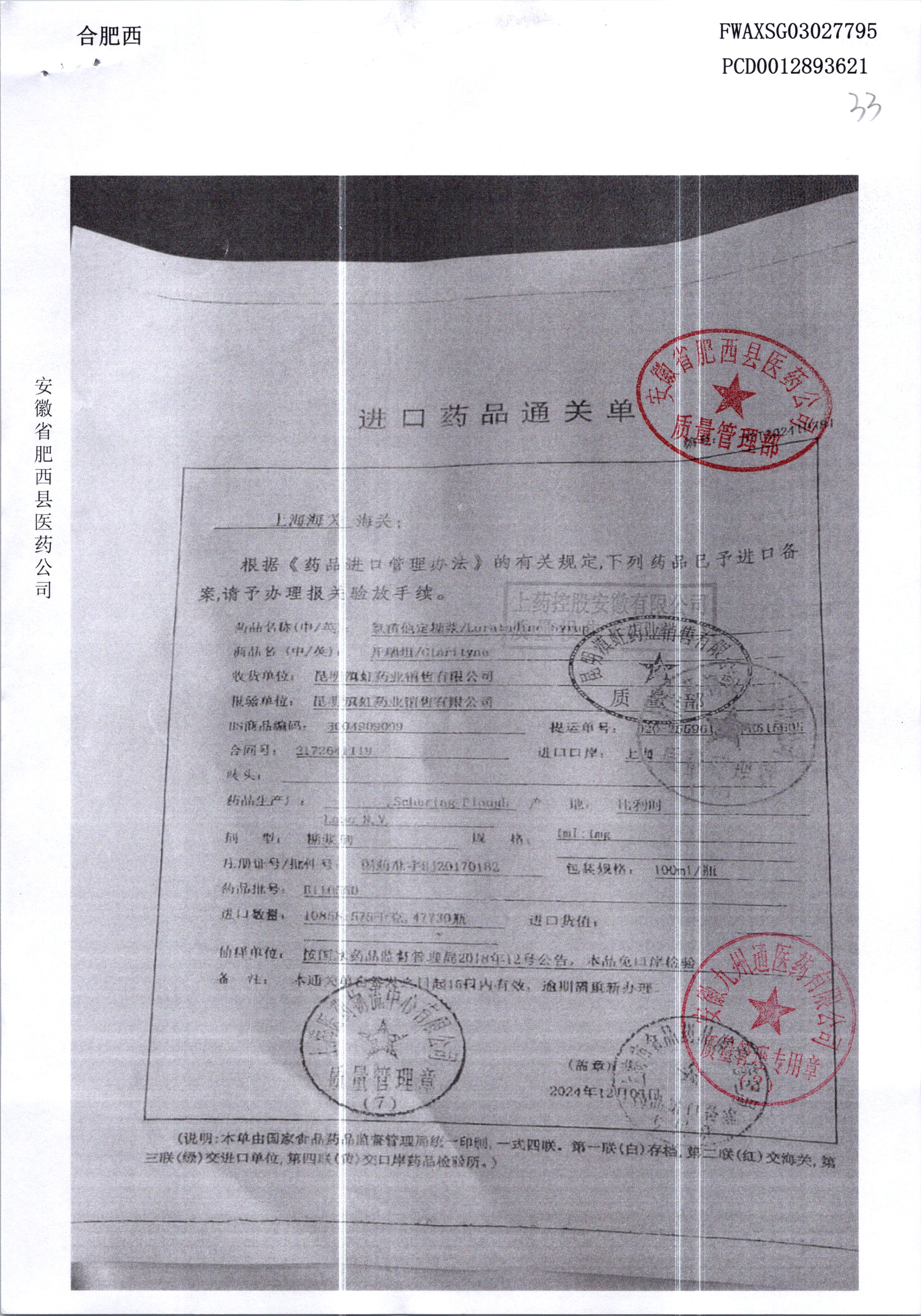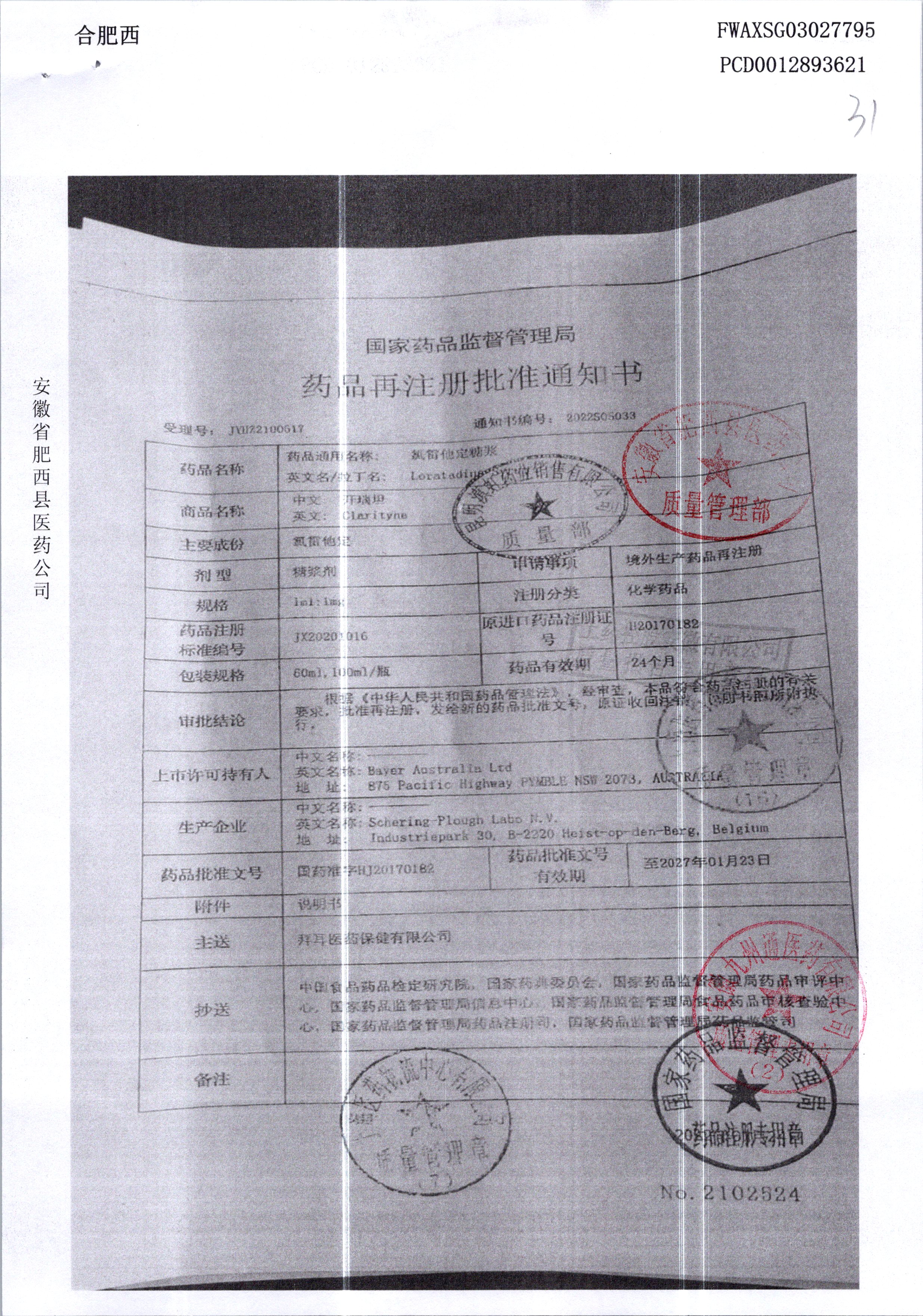 | 氯雷他定糖漿 | 1ml | B116550/3 | 查看詳情 |