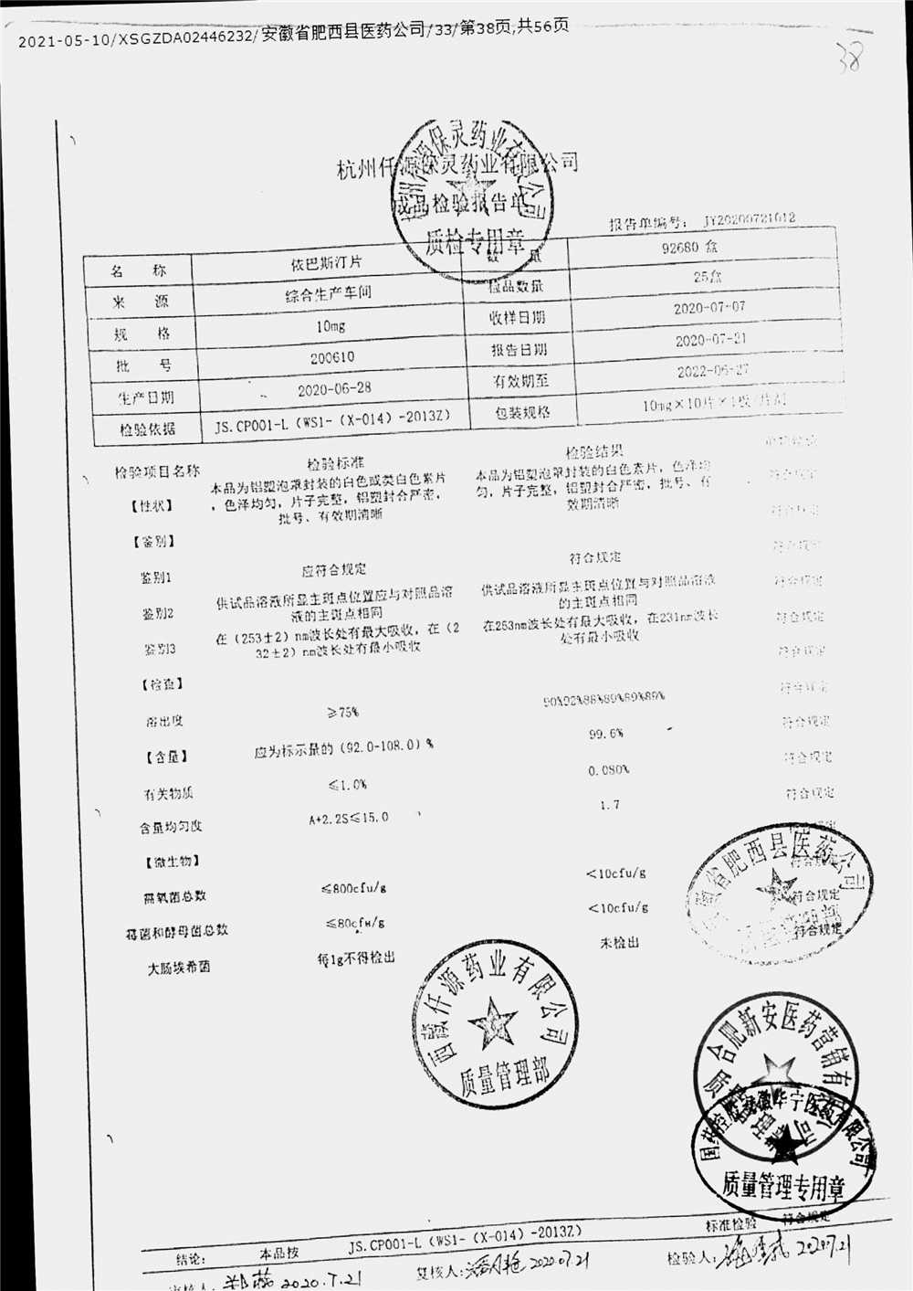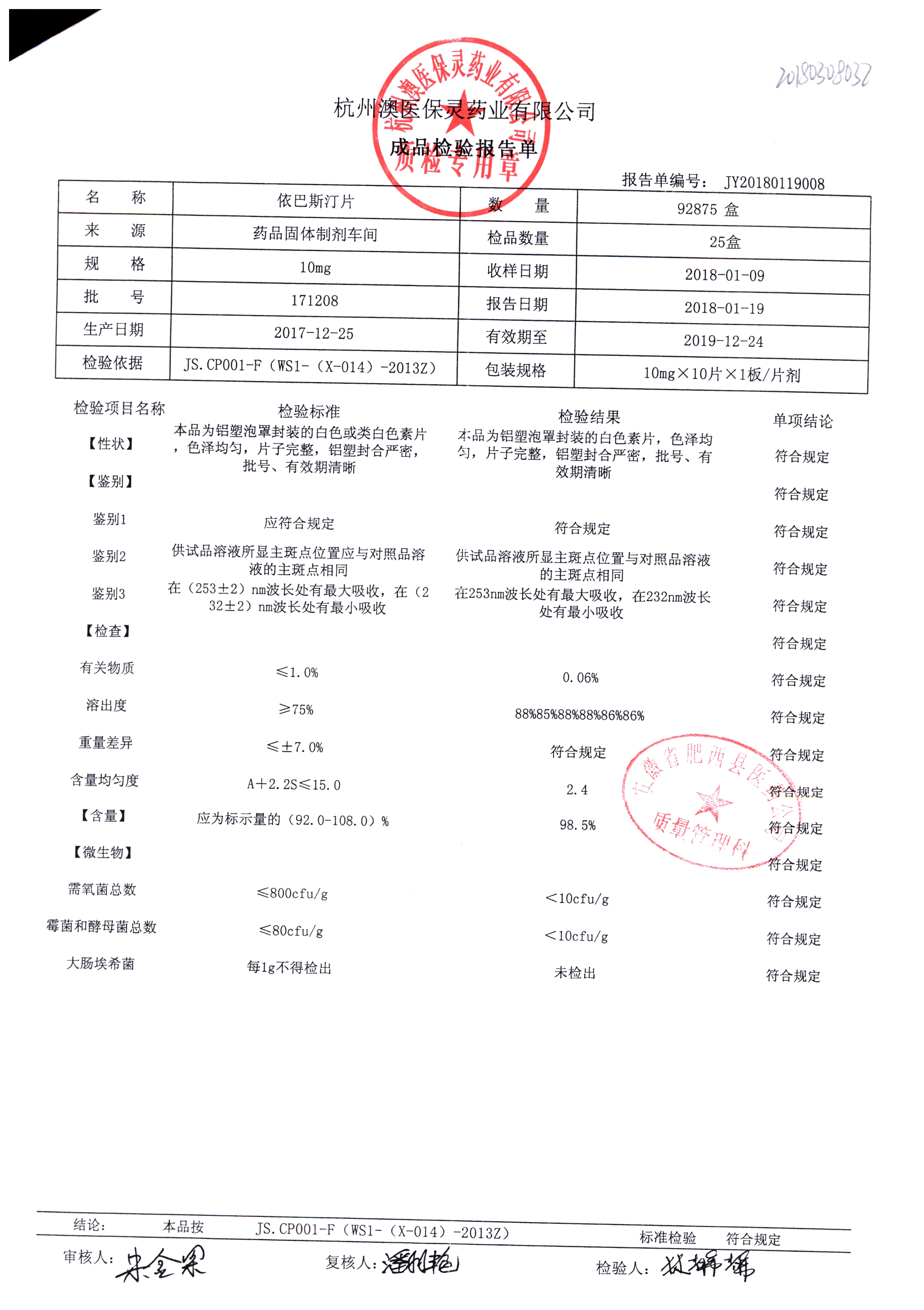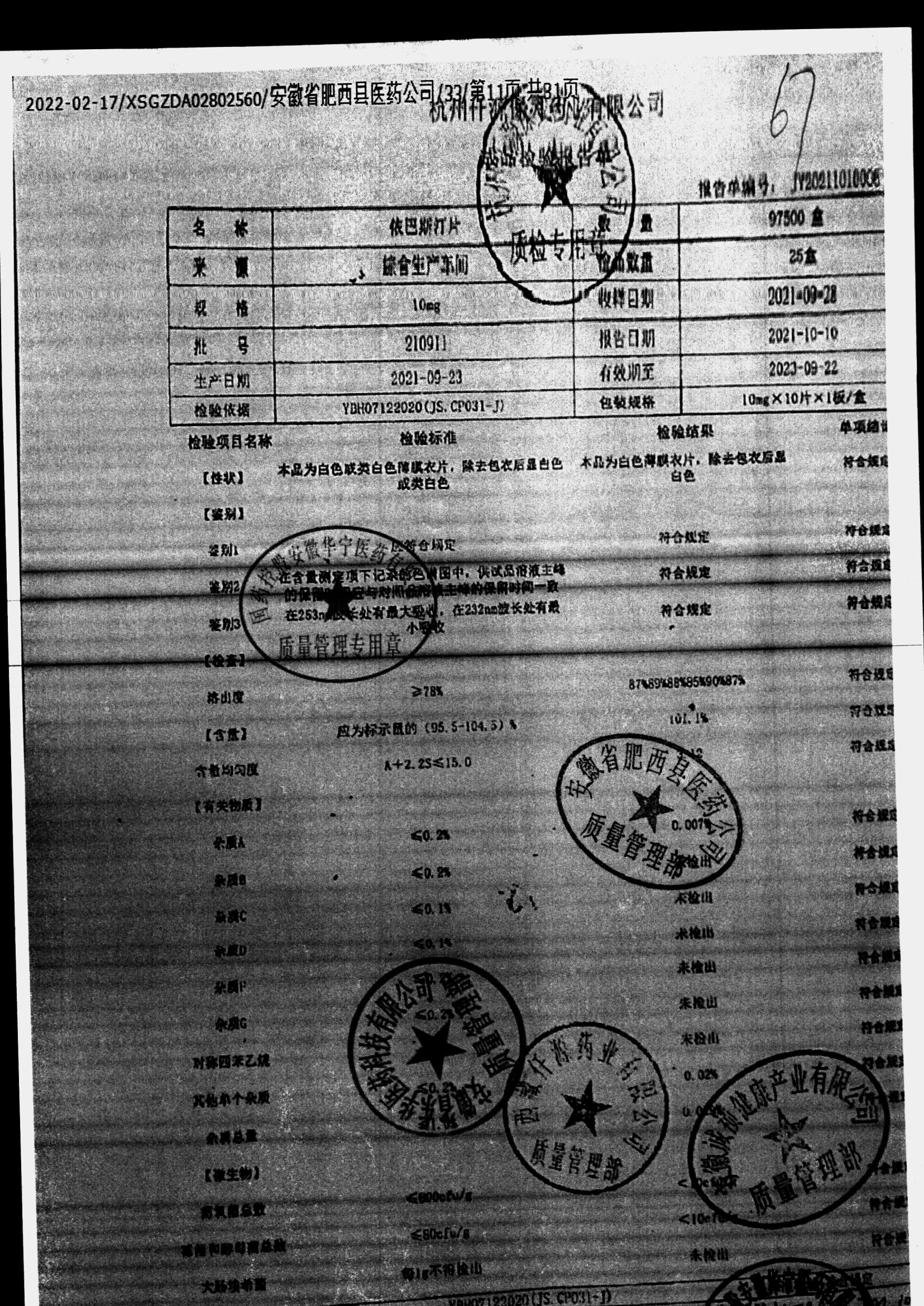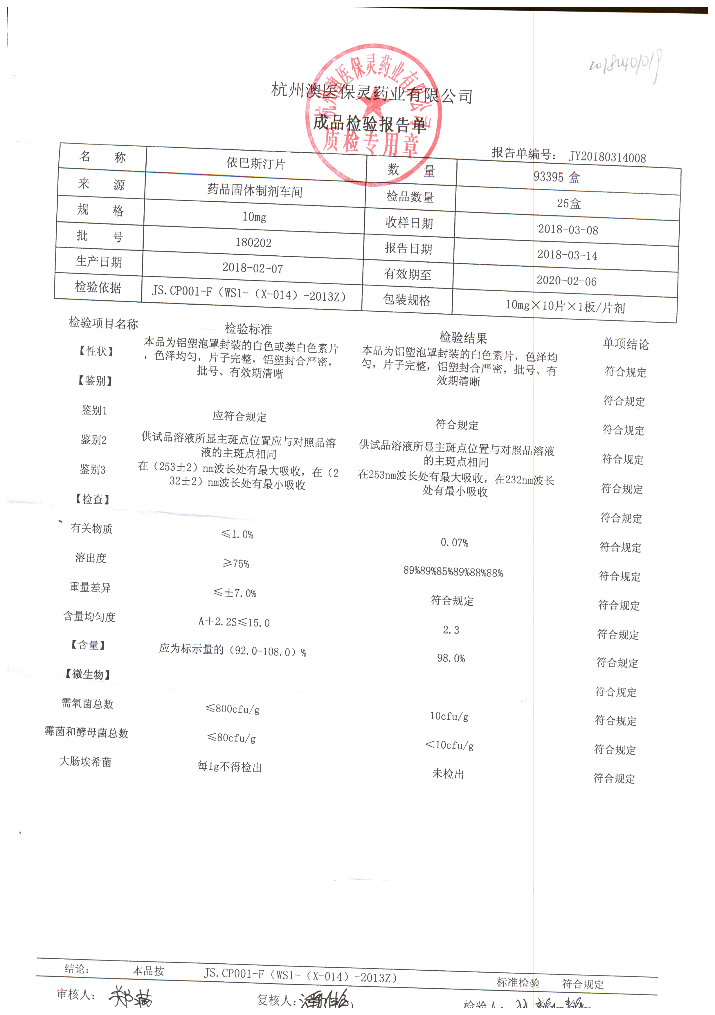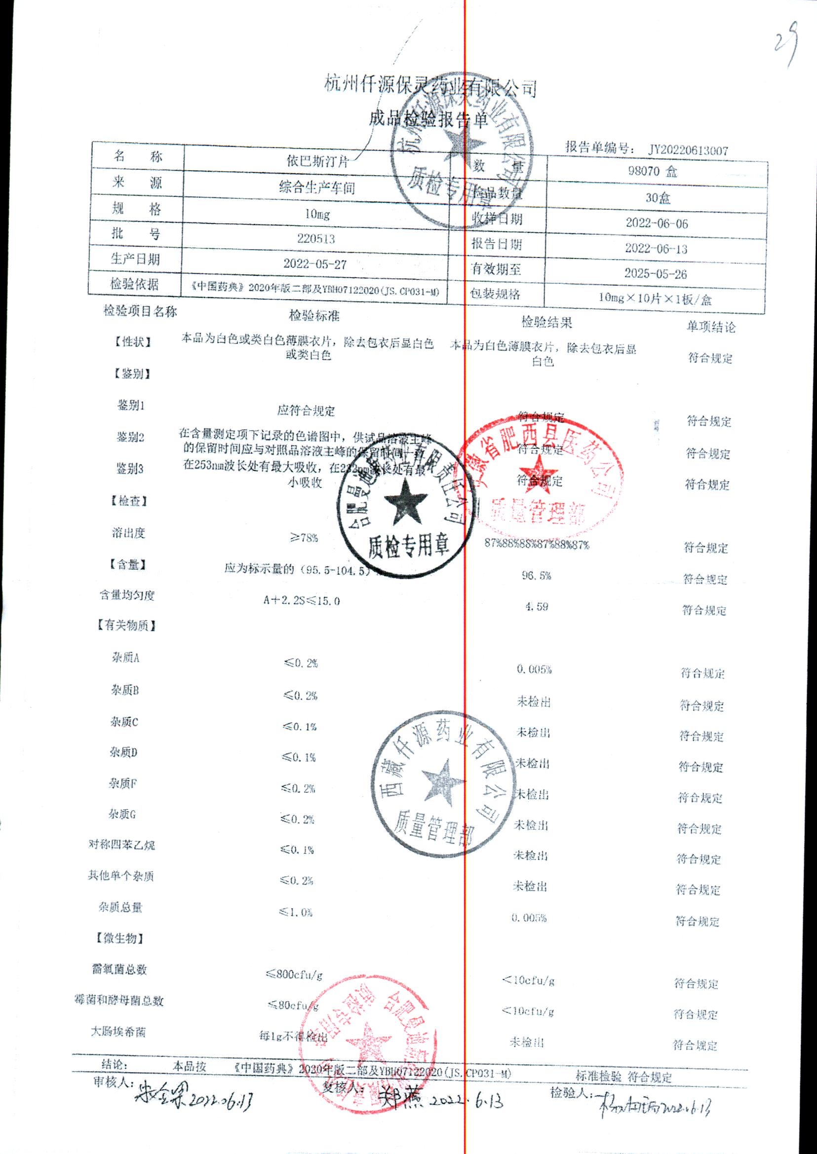 名稱 規(guī)格 批號 藥檢報告