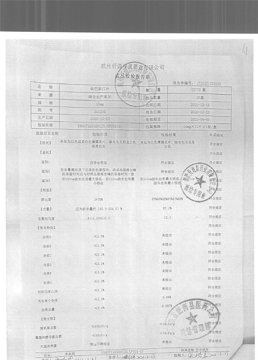依巴斯汀片 10mg*10s 201205 查看詳情