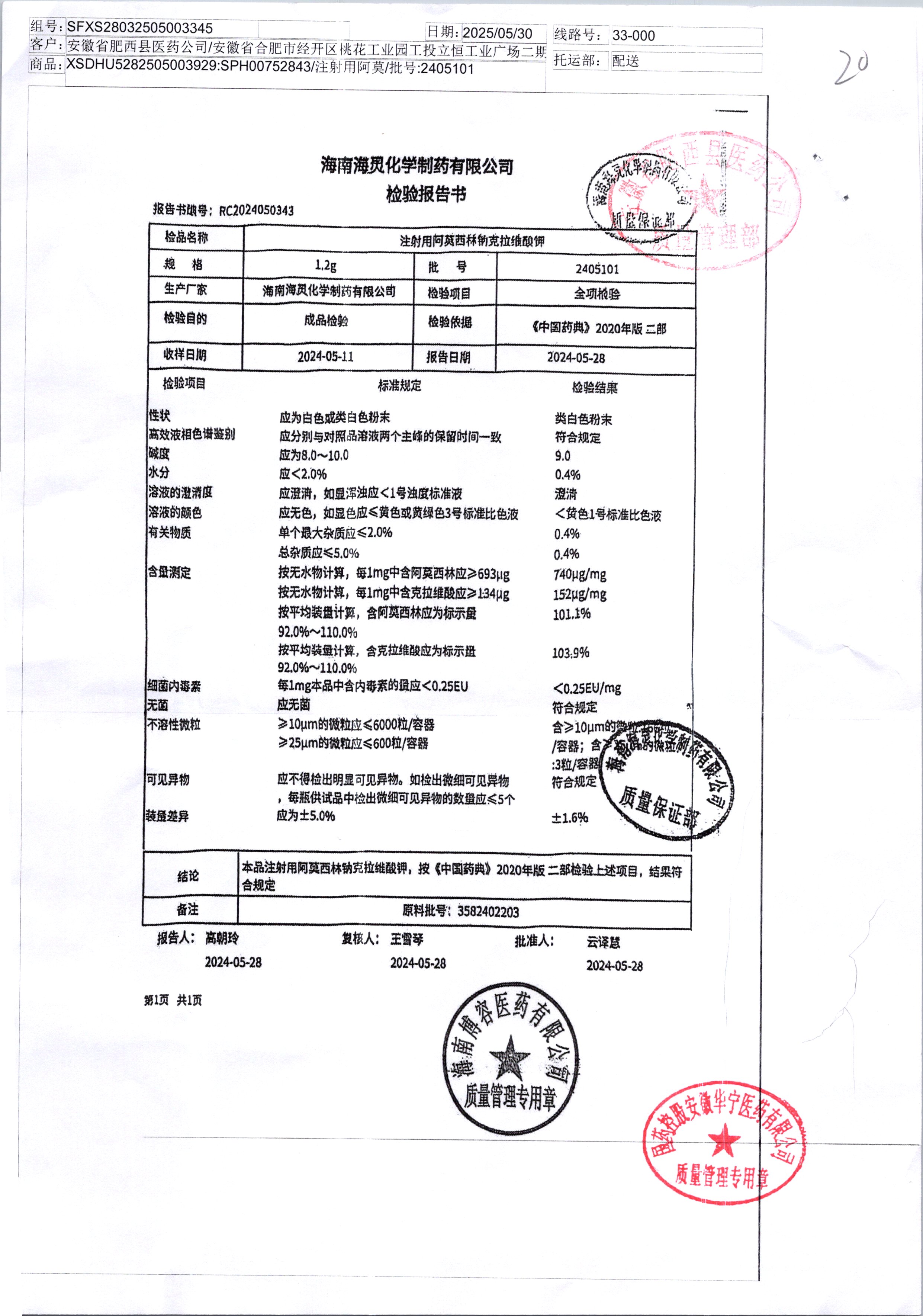 注射用阿莫西林鈉克拉維酸鉀 1.2g 2405101 查看詳情