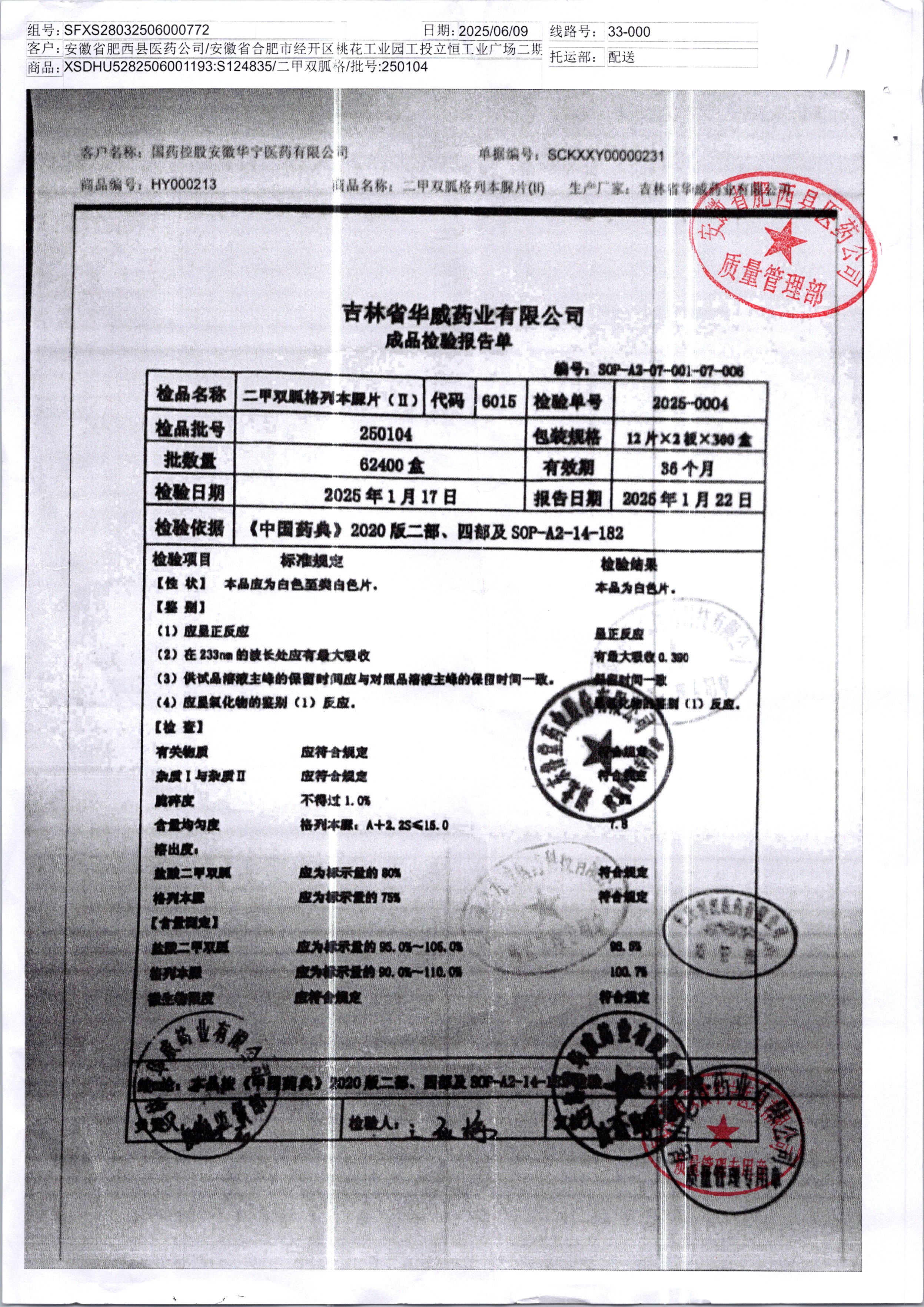 名稱 規(guī)格 批號(hào) 藥檢報(bào)告