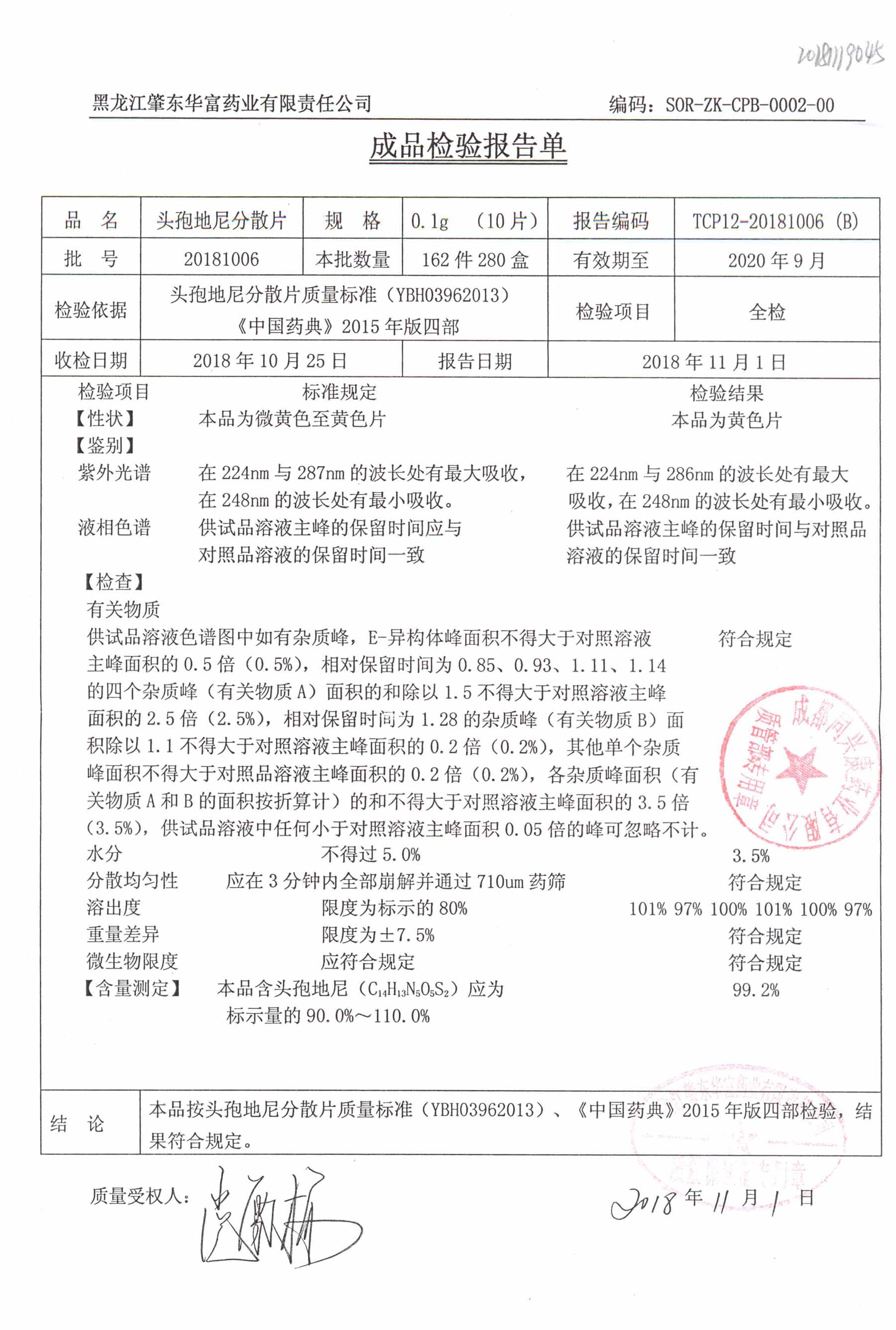 頭孢地尼分散片 | 0.1g*10s | 20181211 | 查看詳情 |