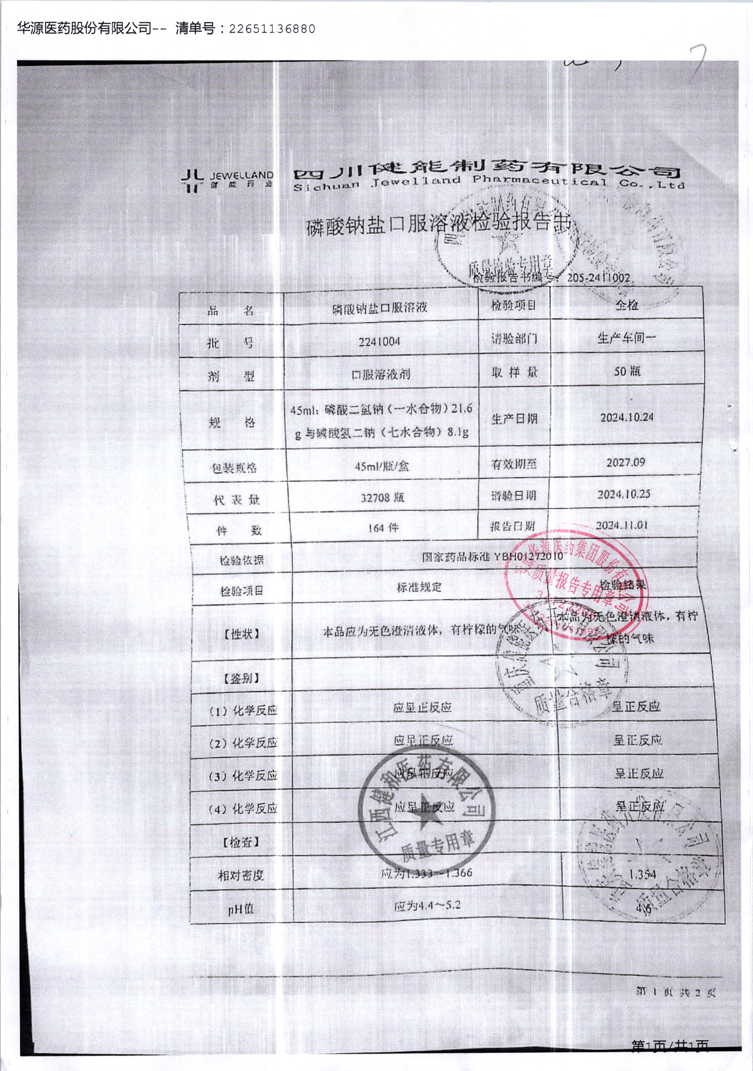 名稱 規(guī)格 批號 藥檢報告